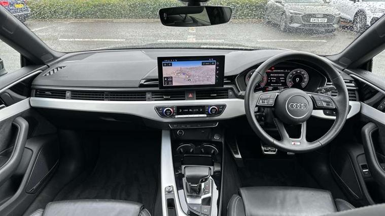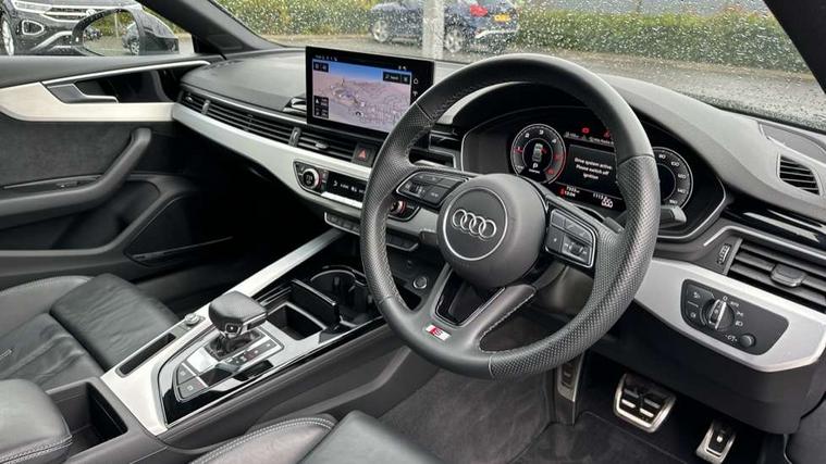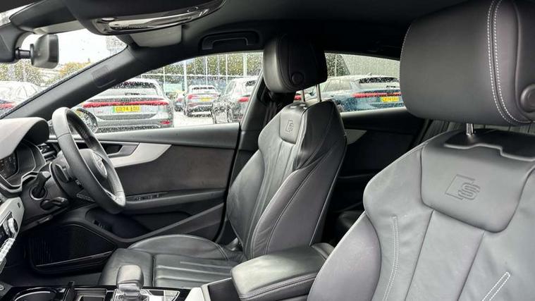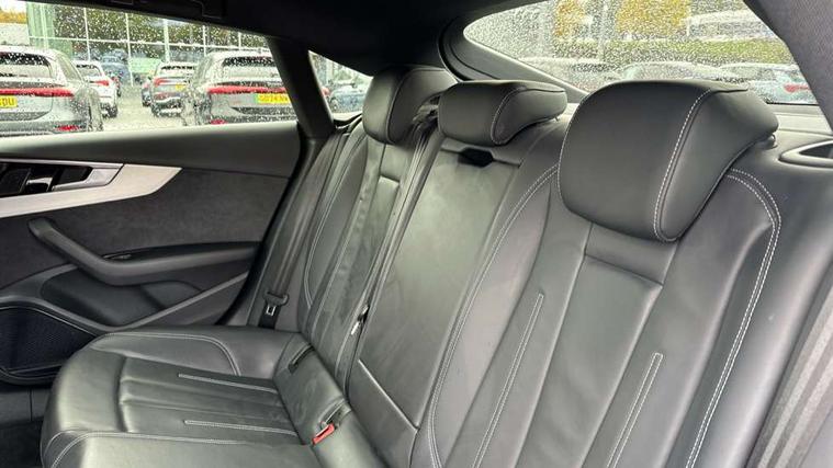 Audi connect safety and service (e-call), Audi drive select (Auto, Comfort, Dynamic, Efficiency and Individual), Audi parking system plus with front and rear sensors, Audi smartphone interface, Audi virtual cockpit - 12.3" full colour digital instrument cluster, vehicle/engine speed, Radio/media information+Driver assistance systems, Automatic start-stop system with coasting functionality and efficiency programme, Bluetooth interface, Camera based traffic sign recognition, Electro-mechanical power steering, Email, calendar and text messages displayed via MMI, Lane departure warning, MMI nav+ with MMI touch - 10.1" high resolution MMI display, touch sensitive, 3D map, route/country info, dynamic route guide, personal route assist, Power operated tailgate, Rear view camera, Service interval indicator, Voice control system, Diesel particulate filter, Sports suspension lowered by 23mm, 8 passive loudspeakers, CD player, DAB digital radio reception, Two additional USB ports for rear passenger in rear centre console, Two SDXC card slots, Auto dimming door mirrors, Auto dimming rear view mirror, Body colour bumpers, Body colour door handles, Body colour front spoiler lip, Body colour side sill trim, Body coloured door mirrors, Electric adjustable heated door mirrors, Electric folding door mirrors, Electric front windows, Front fog lights, Honeycomb structure radiator grille in grained matt black, Kerb-view function for passenger side, LED headlights and rear lights with LED daytime running lights, LED side indicator lights integrated into door mirrors, LED third brake light, Matt aluminium silver tailpipe trim, Privacy glass, Rain and light sensors, Rear side wing doors, Rear wiper, S line badges on front wings, S line front and rear bumpers with side skirts, S Line rear diffuser in matt anthracite black with trim strip in matt aluminium silver, Side air inlets in grained matt black with matt aluminium silver inlay, Variable front intermittent wipers, Windscreen with acoustic glazing, 3 seat bench in 2nd row, 3 spoke high multifunction leather sport steering wheel with paddle shfit and S badging perforated leather grips, 4 way electric lumbar support for driver and front passenger, 40/20/40 split folding 3 seater rear bench seat, Adjustable steering column, Black cloth headlining, Black perforated leather gearknob, Contrast stitching on seats, steering wheel and gear lever gaiter, Deluxe 3 zone electronic climate control, Front centre armrest, Front head restraints, Front/rear floor mats, Heated front seats, Illuminated door sill trim with S logo, ISOFIX child seat mounting and top tether, Luggage compartment mat, Manual seat adjustment, Rear centre armrest, Rear headrests, Single front passenger seat, Stainless steel pedals, Sunvisors with vanity mirrors, LED interior light pack - A5/RS5, 3x3 point rear seatbelts, 6 airbags - Driver, front passenger, curtain and side airbags, Attention and drowsiness assist, Electromechanical parking brake, Electronic Stabilisation Control (ESC) including ABS, ASR and EDL, Front passenger airbag deactivation, Height adjustable front seatbelts, Hill hold assist, Manual child lock in rear doors, Multi collision brake assist, Pop-up bonnet for pedestrian protection, Pre sense city, Seatbelt monitoring, Tyre pressure warning, Variable restraint system, Warning triangle and first aid kit, Anti theft alarm system, Anti theft wheel bolts, Immobiliser, Keyless Go, Remote central locking, Matt brushed aluminium inlays, Tool kit, Tyre repair kit,