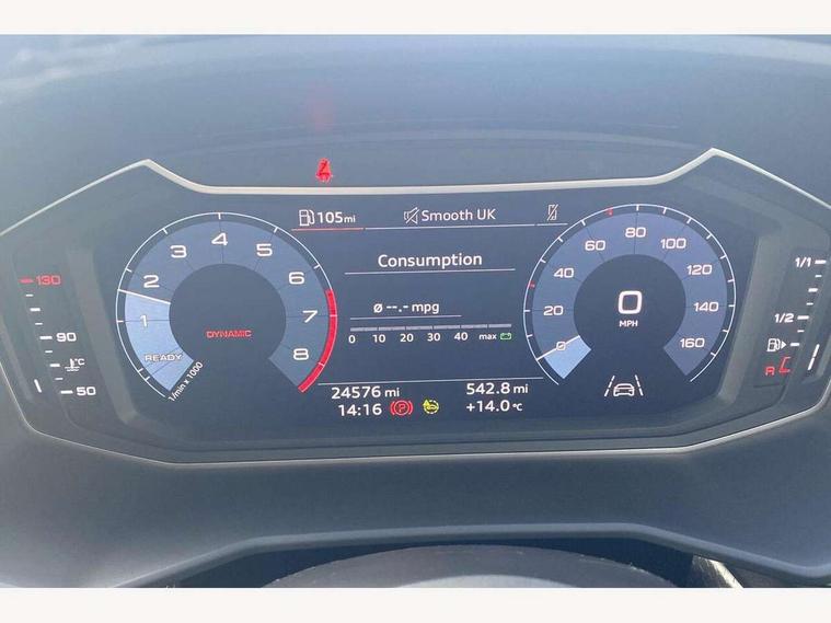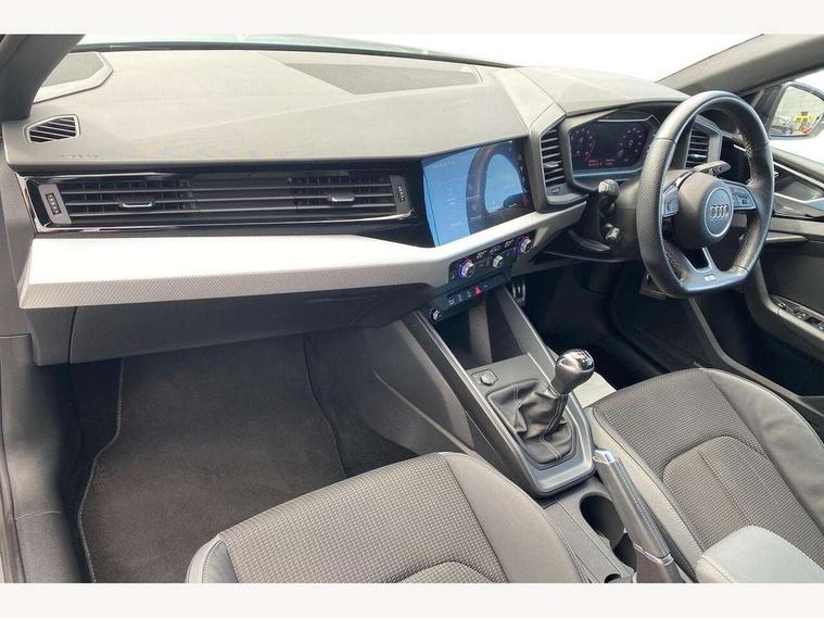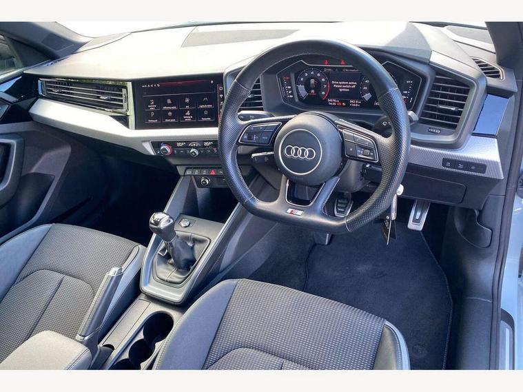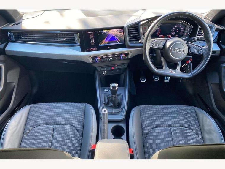 10.25" Digital instrument cluster display classis style instrument dials + speed, odometer, time, outside temperature, telephone menu + fuel level warning, Audi drive select - power steering assistance + engine, Audi smartphone interface with connect compatible smartphone via USB directly MMI display + Nav, music, third party apps controlled via MMI controller, Automatic start/stop system, Bluetooth interface, Cruise control, Driver's information system, Electromechanical power steering, Emergency e-call, Lane departure warning system, Rear parking sensor, Service interval indicator, Speed limiter, Voice control system, Washer fluid level indicator, Sports suspension, 2 x USB type C connection points, 6 passive loudspeakers, DAB Digital radio, MMI radio plus with 10.1" colour MMI display screen and MMI touch, Auto dimming rear view mirror, Black door mirrors, Black side skirts, Body coloured bumpers, Door sill trims with aluminium inlays and logo, Electric front and rear windows, Electrically adjustable, heated, folding door mirrors with integrated LED side indicator, Front wing badges, Heat insulating glass windscreen and side windows, Heated rear windscreen, High level LED brake light, LED headlights with LED rear lights + dynamic rear indicators + headlight adjustment and high beam, turning light + LED daytime running lights, Privacy glass, Rain and light sensors, Rear fog lights, Rear side wing doors, Rear wiper, Side front spoiler lips in grained matt black, 12V socket in centre console with two cup holders, 3 rear seats with headrests, 3 seat bench in 2nd row, 3 spoke flat bottomed multi-function plus leather steering wheel with S badging, grips in preforated leather and contrast stitching, 40:60 Split folding rear seat or folded fully, Black cloth headlining, Driver and passenger seat with manual height adjust with forward and backwards adjustment, Front and rear black floor mats with contrast stitching in fine silver, Front head restraints, Front passenger seat, Height and reach adjustable steering wheel, ISOFIX child seat mounting for front passenger and outer rear seats including top tether attachment point of outer rear seats, Leather gear knob with aluminium trim, Leatherette handbrake grip, Luggage compartment light with front and rear reading lights, Manual air conditioning, Manually adjustable lumbar support in front seats, Stainless steel pedals, Black styling pack - A1 Sportback Black Edition, LED interior lighting pack - A1, Luggage compartment pack - A1, 3x3 point rear seatbelts, Audi pre-sense front with pedestrain and cyclist recognition, Brake assist function, Driver and front passenger airbag with front side and head airbags, Electronic Stability Control including ABS, EBD, ASR and EDL, Front passenger airbag deactivation switch, Hill hold assist, Manual rear child locks, Seatbelt height adjustment for front seats, Seatbelt monitoring, Tyre pressure warning light, Warning triangle and first aid kit, Anti theft alarm, Anti theft wheel bolts and loose wheel warning, Immobiliser, Remote central locking with 2 foldaway keys, Aluminium trim for control switches, air vents and digital instrument cluster, Black dashboard, Silver grey inlays polygon structure in diamond paint finish, Structured grey accent areas including air vents, door handle recesses and centre console in quartz paint finish, 18" 7 spoke rotor design alloy wheels in gloss anthracite black, diamond cut finish,