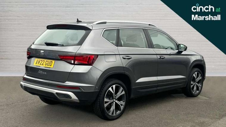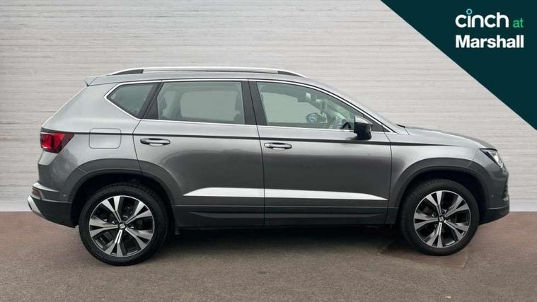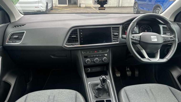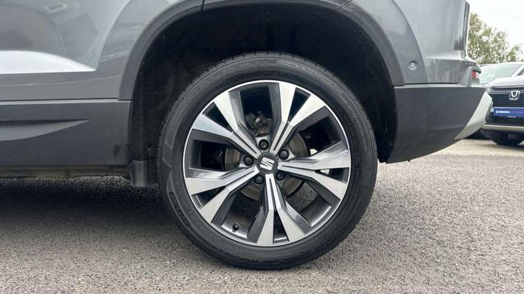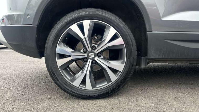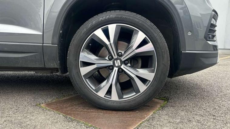 Colour multi-function on board computer display, Cruise control system with speed limiter, E-call, Outside temperature gauge, PAS, SEAT drive profile with driving experience button - Normal, Sport, Eco and Individual mode, steering and throttle response, Self parking functionality (includes front and rear parking sensors), Trip computer, Wireless full link smartphone integration, Wireless phone charger, Steering wheel mounted audio/phone controls, Black wheel arch surrounds, Body colour bumpers, Chrome front grille frame, Chrome roof rails, Chrome side window trim, Daytime running lights, Door mirrors with welcome light silhouette, Dynamic headlight range control with self adjusting whilst driving, Electric adjustable/heated/folding door mirrors, Front and rear electric windows, Full LED headlamps with lens and LED front fog lamps with cornering function, LED rear tail lights with dynamic indicators, Rear fog lights, Rear side wing doors, Rear wash/wipe, Simulated exhaust pipes, 12v socket in front, 3 seat bench in 2nd row, 60/40 split folding rear seat, Cloth upholstery with front comfort seats, Dual zone climate control, Front and rear head restraints, Front centre armrest, Front seat back storage pockets, Height adjustable driver and passenger seat with lumbar adjustment, ISOFIX points in outer rear seats with top tether anchorage points, Leather steering wheel and gear knob, Rear armrest and easy back seat release mechanism from boot, Single front passenger seat, Storage compartment under driver's seat, Interior lighting pack - Ateca, Navigation system pack with DAB - Ateca, 3x3 point rear seatbelts, ABS, Traction control system (TCS), Electronic stability control (ESC) and Electronic differential lock system (XDS), Airbags - Driver and front passenger airbag with deactivation, front side, two curtain and driver's knee airbags, Electric parking brake with auto hold function, Front and rear seatbelt reminder, Front assist with autonomous emergency braking, Hill hold control, Manual rear child locks, Tiredness recognition system, Traction control, Tyre pressure monitoring system, Alarm, Keyless entry, Locking wheel bolts, Chrome interior detailing, 18" Performance machined alloy wheels 36/2 in nuclear grey,