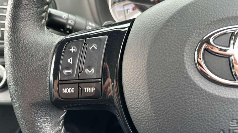Bluetooth system, Cruise control, External temperature gauge, Fuel indicator with low level warning, Lane departure warning system, Lights on warning, Multi-information display, Power Steering, Rear parking sensor, Rear view camera, Road sign assist - RSA, TFT display screen, Touch 2 Go navigation system, Trip computer, 6 speakers, Auxiliary input socket, DAB Digital radio, Steering wheel mounted audio/telephone controls, Touch 2 touchscreen Radio with iPod connectivity, USB connection, 2 speed front wipers + intermittent wipe, Auto high beam, Auto up and down function on drivers window, Body colour bumpers, Body colour door handles, Body coloured door mirrors, Chrome fog light surround, Daytime running lights, Door mirror integrated indicators, Drivers window one touch up/down, Electric adjustable heated door mirrors, Electric front windows, Follow me home headlights, Front fog lights, Green tinted glass, Heated rear windscreen, Projector headlights, Rain sensitive windscreen wipers, Rear wiper, Turning signal integrated indicators in door mirrors, 3 spoke leather steering wheel, 60/40 split folding rear seat, Boot light, Cloth upholstery, Driver seat height adjust, Driver/passenger vanity mirrors with covers, Front cupholders x 2, Front map reading lights, Front seats with lumbar support, Glovebox, Height adjustable front head restraints, Height adjustable rear seat head restraints (x3), Isofix system on outer rear seats, Leather gear knob, Manual air conditioning, Rear cupholder, Removable rear parcel shelf, Sliding front seats, Tilt/telescopic steering column, 3 point seatbelts on all rear seats, ABS+EBD+Brake assist, Active headrests, Collision mitigation braking system, Curtain airbags, Driver and passenger airbags, Drivers knee airbag, Emergency brake light system (EBS), Front passenger airbag on/off switch, Front seatbelt reminder, Front side airbags, Height adjustable front seatbelts with pre-tensioners and load limiters, Hill start assist control (HAC), Passenger airbag deactivate switch, Rear child proof door locks, Rear seat belt reminder, Road sign information display, Seatbelt warning lamp and buzzer, Toyota safety sense including Road sign assist, Pre collision system, auto high beam and lane departure alert), Tyre pressure monitoring system, Vehicle stability control VSC + traction control, Engine immobiliser, Remote central locking, Instrument panel in grey, Space saver spare wheel,