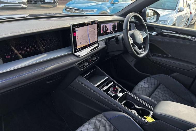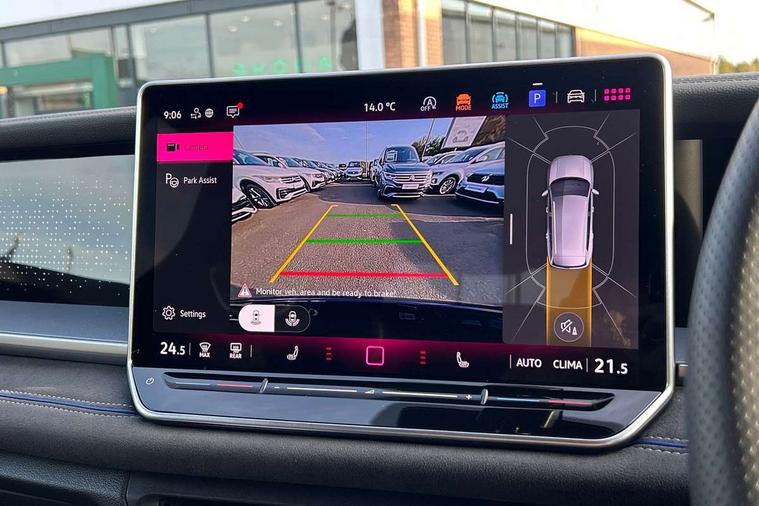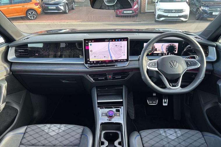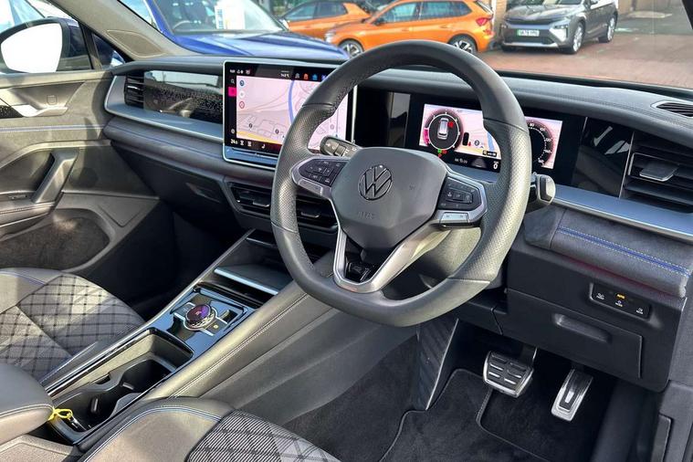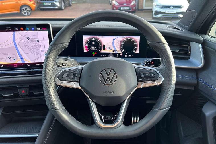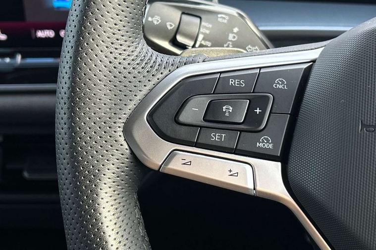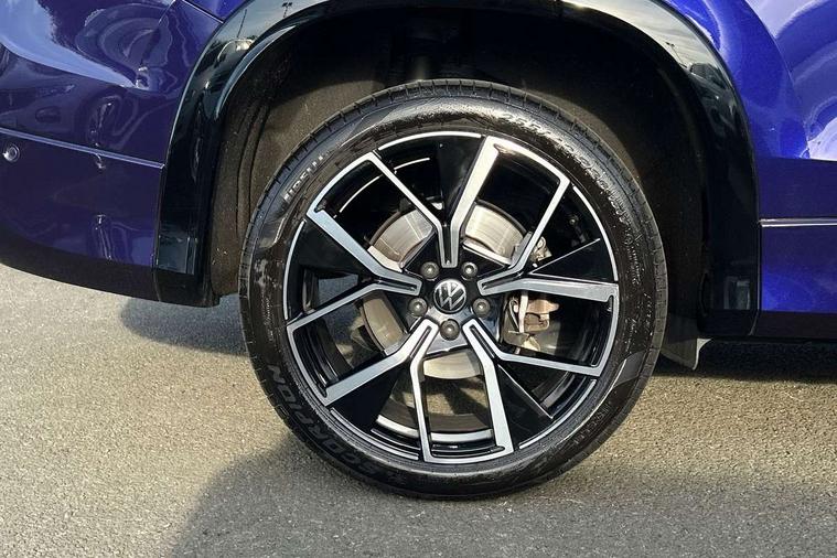 Adaptive cruise control (ACC), Digital Cockpit Pro - 10.25" high resolution dash display screen with customisable menus and information, Driver alert system, Driver attention monitoring system, Dynamic road sign display, E-Sim card for online connectivity, eCall emergency call system, Lane change system, Side assist, Rear traffic alert and Exit warning system, Multifunction front facing camera, Oncoming vehicle braking when turning including swerve support, Start/stop system with regenerative braking, Voice activation spoken voice commands for telephone and navigation system, Warning signal and warning light for front and rear seatbelts not fastened, Wireless App-Connect, Front wheel drive, Digital radio reception (DAB), Diversity antenna for FM reception, Air intake with Chrome trim, Auto dimming interior rear view mirror, Automatic headlight control system, Body colour door handles, Chrome moldings on the side windows, Coming/leaving home lighting function, Dynamic headlight range control with dynamic cornering light, Exterior mirrors convex on the left and aspherical on the right, Heat insulating glass in side and rear windows, Illuminated Volkswagen logo rear with animation, Laminated safety glass winshield, heat insulating, LED 3rd brake light, LED separate signature day time running light, Puddle lights, Rain sensor windscreen wipers, Rear fog light on one side, reversing light on both sides, Rear side wing doors, Rear wiper, Reverse activated passenger's door mirror, Surround lighting with welcome light, Volkswagen logo in front, illuminated lighting animation with wake up/goodbye scenario and illuminated door handles, 10 colour interior ambient lighting, 12V outlet in center console rear and in luggage compartment, 3 rear headrests, 3 rear seat bench in 2nd row, backrest split folding with centre armrest and 2 seats in 3rd row of seats, Black roof lining, Brushed stainless steel pedals, Carpet mats, front and rear, Centre console with illuminated storage compartment with sliding cover and two drinks holders, Chrome elements on the mirror switch and power window switches and door pulls, Door and side trim panel insert in Art velour, Flat luggage compartment floor, Front centre armrest, Front scuff plates in alumium, ISOFIX anchors for child seats on outer rear seats and front passenger seat compatible with i-Size, Mechanical rear seat release, Power adjustable lumbar support in front, Single front passenger seat, Sports comfort seats in front, Sun visors with illuminated vanity mirrors, 3 Point seat belts in front with pretensioners, 3 point seatbelts in outer rear with ECE label, Autonomous emergency braking front assist with pedestrian and cyclist monitoring, Driver and front passenger airbag with front passenger airbag deactivation, Electronic parking brake with auto hold, First aid kit with warning triangle and safety vest, Front and rear curtain airbags, Front and rear side airbags, Front centre airbag, Front disc brakes, Hill start assist, Rear disc brakes, Two tone horn, Decorative material set R-Line, Interior door handle in matte chrome,