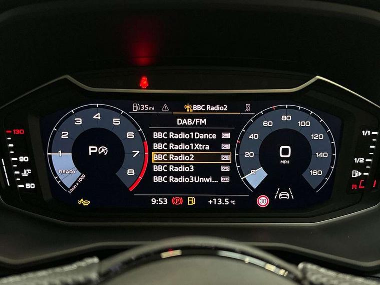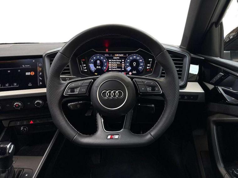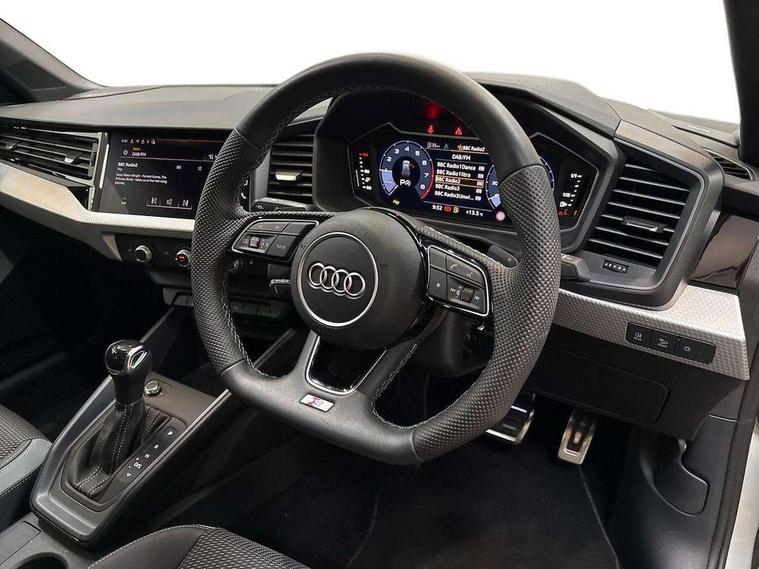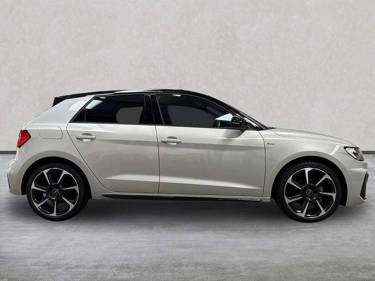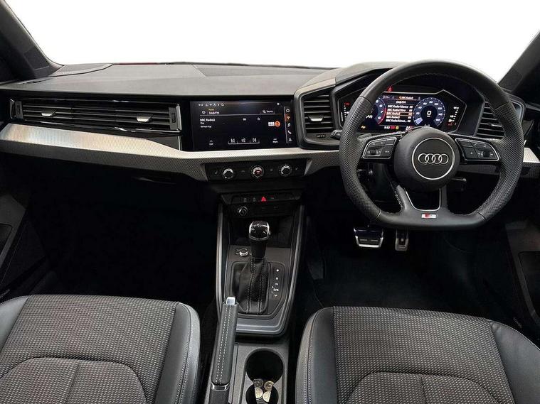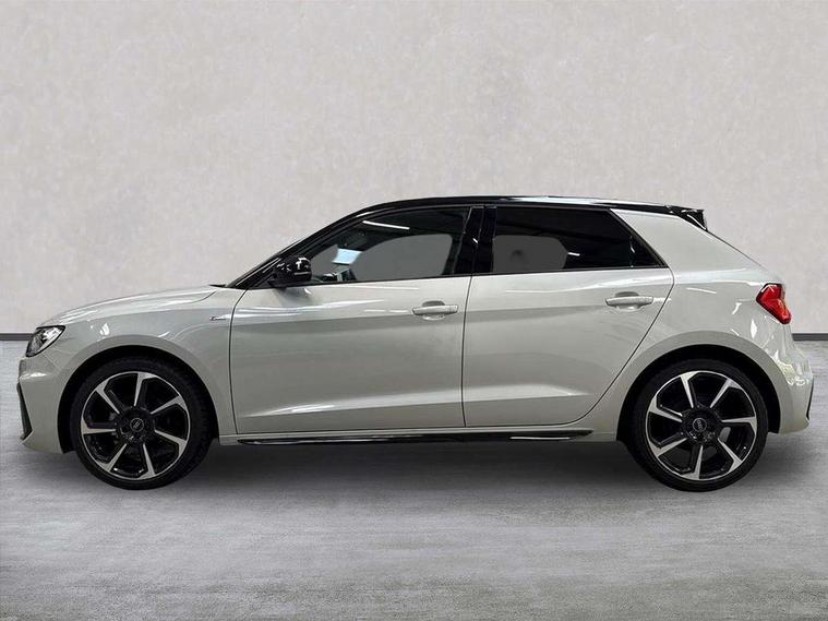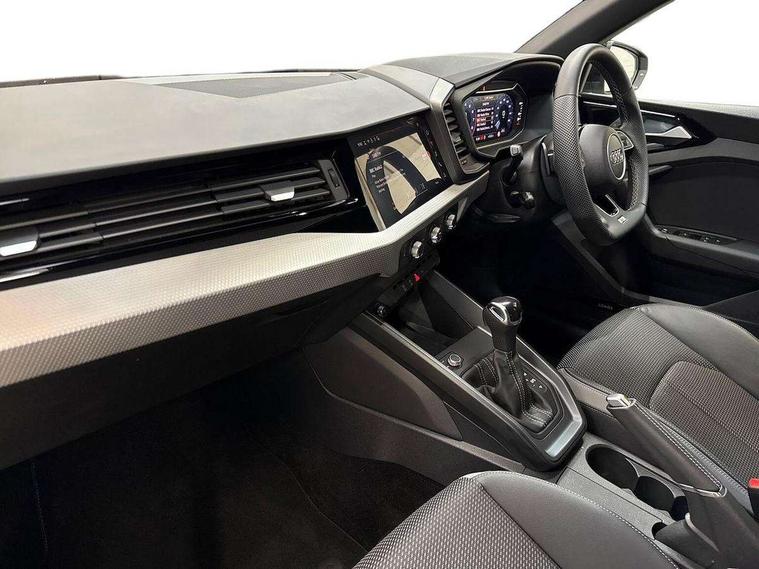10.25" Digital instrument cluster display classis style instrument dials + speed, odometer, time, outside temperature, telephone menu + fuel level warning, Advanced driver attention and drowsiness monitor, Audi connect emergency call and service, Audi remote connect and control, Audi smartphone interface, Bluetooth interface, Camera based traffic sign recognition, Cruise control, Driver's information system, Electromechanical power steering, Lane departure warning system, Rear parking sensor, Service interval indicator, Speed limiter, Start stop system with recuperation, Voice control system, Washer fluid level indicator, Sports suspension, 2 x USB type C connection points, 6 loudspeakers, DAB Digital radio, MMI radio plus with 10.1" colour MMI display screen and MMI touch, Auto dimming rear view mirror, Black side skirts, Body coloured bumpers, Door sill trims with aluminium inlays and logo, Electric front and rear windows, Electrically adjustable, heated, folding door mirrors with integrated LED side indicator, Front side air inlets in grained matt black and C frame in anthracite black, Front wing badges, Headlight cleaning system, Heat insulating glass windscreen and side windows, Heated rear windscreen, High level LED brake light, LED daytime running lights, LED headlights with range control LED rear lights + dynamic rear indicators, Privacy glass, Radiator grille and rear diffuser in matt anthracite black, Radiator protective grille frame in matt aluminium silver, Rain and light sensors, Rear fog lights, Rear side wing doors, Rear wiper, Side front spoiler lips in grained matt black, 12V socket in centre console with two cup holders, 3 rear seats with headrests, 3 seat bench in 2nd row, 3 spoke flat bottomed multi-function plus leather steering wheel with S badging, grips in preforated leather, contrast stitching and paddle shift, 40:60 Split folding rear seat or fully collapsed, Black cloth headlining, Front and rear velour black floor mats with contrast stitching in fine silver, Front head restraints, Front passenger seat, Height and reach adjustable steering wheel, Interior lighting includes roof module, front and rear reading lights and right luggage compartment lighting, ISOFIX child seat mounting for front passenger and outer rear seats including top tether attachment point of outer rear seats, Leather gear knob with aluminium trim, Leather handbrake grip, Manual air conditioning, Manual height adjustable for driver and front passenger seat, Manually adjustable lumbar support in front seats, Stainless steel pedals, Ambient lighting package - A1, Black styling pack - A1 Sportback Black Edition, Luggage compartment pack - A1, 3x3 point rear seatbelts, Audi pre-sense front with pedestrain and cyclist recognition, Brake assist function, Driver and front passenger airbag with front side and head airbags, Electronic Stability Control including ABS, EBD, ASR and EDL, Front passenger airbag deactivation switch, Hill hold assist, Manual rear child locks, Seatbelt height adjustment for front seats, Seatbelt monitoring, Tyre pressure loss indicator, Warning triangle and first aid kit, Anti theft alarm, Anti theft wheel bolts, Immobiliser, Remote control key with safelock, Aluminium trim for control switches, air vents and digital instrument cluster, Black dashboard, Silver grey inlays polygon structure in diamond paint finish, Structured grey accent surfaces insert of air vents, interior door handle recesses and centre console in quartz paint finish,