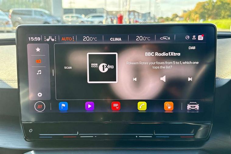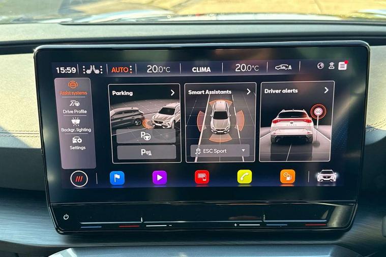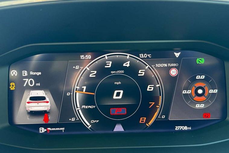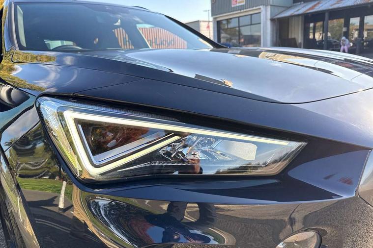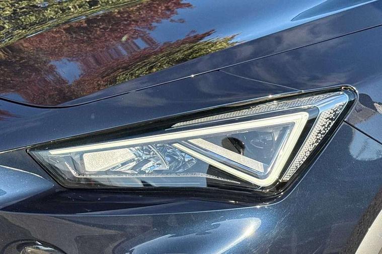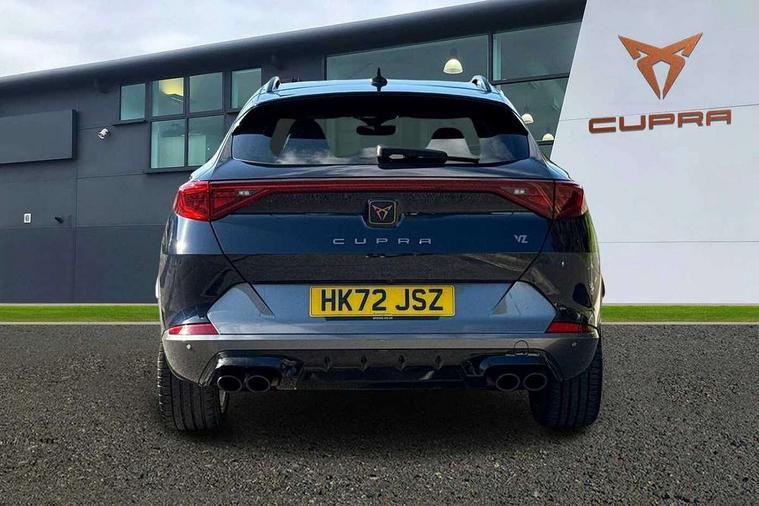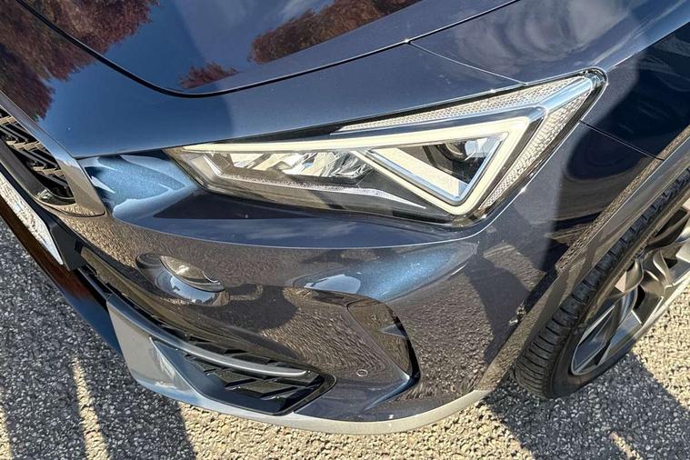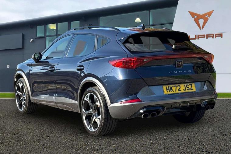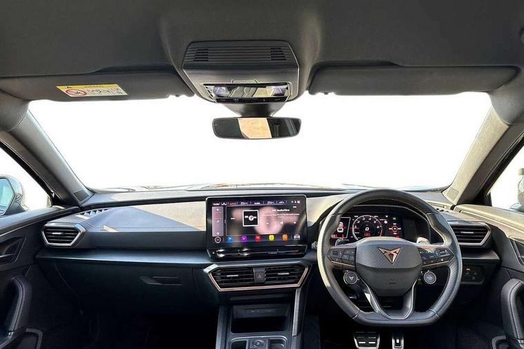 Digital cockpit and configurable dashboard, Driver alert system, Dynamic chassis control with driving profile selection (Comfort, Sport, CUPRA, Individual), Forward collision warning with automatic braking, Lane assist, Navigation system with 12'' Touchscreen Display, Park assist (inc front/rear parking sensors), Predictive adaptive cruise control with speed limiter, Rear view camera, RPM, trip computer, outside temp gauge, instrument light brightness, low fuel warning light, lights on reminder, gearshift indicator, Service interval indicator, Speed sensitive power steering, Start/stop system with regenerative braking, Virtual pedal and electric tailgate, Voice control system, Wireless apple carplay, Wireless phone charger, Electronic locking differential and dynamic traction support, Sports suspension with front shock absoption, 2 front and 2 rear USB type C sockets, Auxiliary input socket, DAB radio, Auto dimming rear view mirror, Body colour door handles, Body coloured bumpers, Dark grey wing mirror, Daytime running light with automatic headlight control and coming home feature, Dynamic headlight range control, Electric front/rear windows, Electrically adjustable heated and folding door mirrors with memory function, Front fog lamps with cornering function, Gloss black roof rails and window surrounds, LED Headlights, LED Taillights with dynamic indicator, Rain sensing wipers, Rear diffuser with twin exhaust pipe on each side, Rear side wing doors, Rear wash/wipe, Sports bumpers, Third brake light, Tinted rear windows, VZ logo rear badging, Welcome lights, 12v power supply in centre console, 12V socket, 12v socket in loadspace, 2 front and 2 rear reading lights, 230V socket, 3 seat bench in 2nd row, 60/40 split rear bench seat with armrest and mechanical seat release, Black headlining, Cupra sports pedals, Dust/pollen filter, Front and rear head restraints, Front centre armrest, Height/reach adjust steering wheel, Illuminated interior front door sills, Illuminated sunvisor with mirror, Isofix, Leather heated multi-function sports steering wheel with start stop, CUPRA mode button and gear shift paddles, Luggage tie-down hooks, Single front passenger seat, Three zone climate control with control panel in rear, Variable luggage/load compartment floor, Wraparound lighting, Genuine Nappa leather Pack - Cupra, Safety and driving pack (XL) - Formentor, 3 point seatbelts on all rear seats, ABS, Brake control system - ESC and brake booster, Child proof door locks, Driver and front passenger airbags with front passenger airbag de-activation, Electronic parking brake, Front and rear disc brakes, Front side curtain airbags, Hill hold control, Public e-call, Seat belt reminder for front and rear seats, Tyre pressure monitoring system, Anti theft alarm system, Keyless entry and start system (KESSY), Locking wheel bolts, Copper and aluminium interior detailing, 19" 'Exclusive' machined sport matte black and silver alloy wheels, Space saver spare wheel,