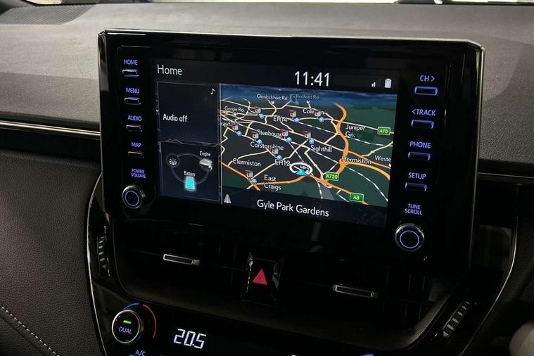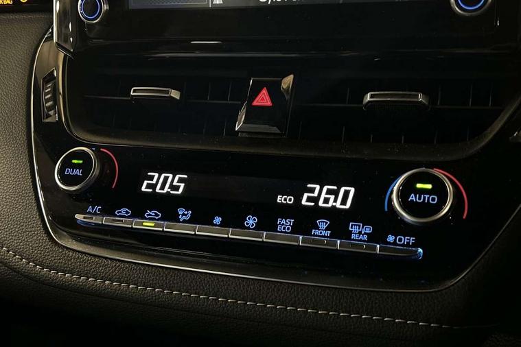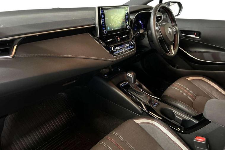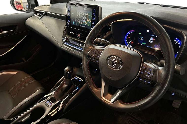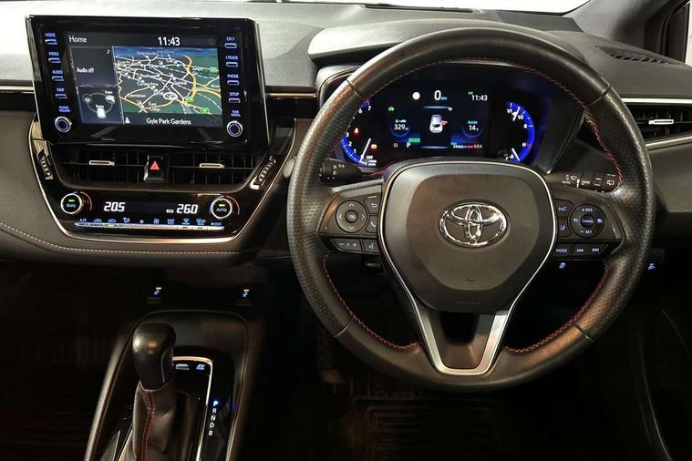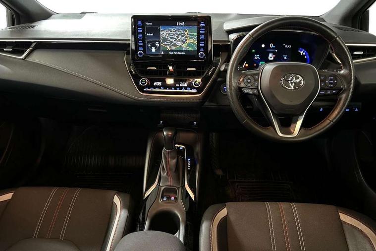3D Colour multi information display, Bluetooth telephone connectivity, E-call, Electrically assisted power steering, Head up Display, Intelligent park assist, Push button start, Reversing camera, Smartphone integration with Apple CarPlay and Android auto, Speed limiter, Voice activation, Vehicle Stability Control (VSC), 2 ring combimeters with 7" colour TFT screen, 6 speakers, 8" multimedia and back monitor, AM/FM radio, DAB Digital radio, Toyota touch 2 with go navigation system, USB and Aux in connectors + 12V front outlet, Anti-jam protection on power windows, Auto dimming inside rear view mirror, Auto up and down function on all power windows, Automatic folding mirrors, Automatic headlights, Body coloured bumpers, LED daytime running lights, LED front fog lights, LED Headlights, LED rear combi lights with LED lightguide, Power adjustable heated door mirrors, Power front windows, Power rear windows, Privacy glass, Rain sensing wipers, Rear window wiper, Reverse tilting door mirrors, Shark fin antenna, 3 rear headrests, 3 spoke leather steering wheel + gear knob, Alcantara/partial leather upholstery, Clean air filter, Dual zone automatic air conditioning with ECO mode switch, Front head restraints, Heated seats, ISOFIX seat fixing (2 fixings on rear outer seats), Pollen filter, Power lumbar support, Sports seats, Steering wheel switches, Tilt/telescopic steering column, Whiplash Injury Lessening (WIL) feature (active headrest) for seats, Parking pack - Corolla, Toyota safety sense 2 pack - Corolla, 3x3 point rear seatbelts, Adjustable front driver seat belt extender, Anti lock braking system + Electronic brake force distribution, Brake assist function, Electronic parking brake, Front passenger airbag on/off switch, Front seatbelt reminder, HAC-Hill-start Assist Control, Rear seat belt reminder, Seatbelt pretensioners and force limiters, Supplemental restraint system (SRS) 7 airbags - dual driver, dual side curtain, side impact and driver knee airbags, Traction control, Tyre pressure warning system, Alarm/immobiliser, Remote central locking + deadlocks, Tyre repair kit,
