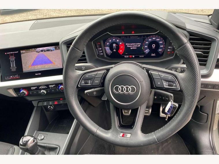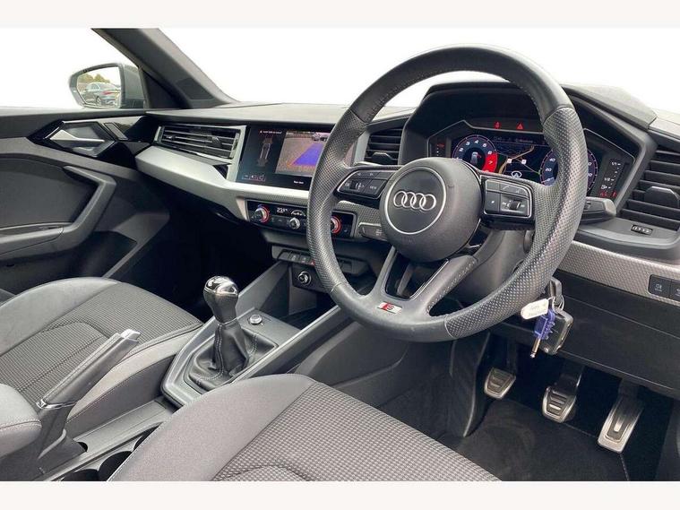 10.25" Digital instrument cluster display classis style instrument dials + speed, odometer, time, outside temperature, telephone menu + fuel level warning, Audi connect safety emergency and service including E-call, Audi smartphone interface with connect compatible smartphone via USB directly MMI display + Nav, music, third party apps controlled via MMI controller, Automatic start/stop system, Bluetooth interface, Cruise control, Driver's information system, Electromechanical power steering, Lane departure warning system, Rear parking sensor, Service interval indicator, Speed limiter, Voice control system, Washer fluid level indicator, Sports suspension, 1 x SDXC card reader, 1 x USB type C and 1 USB type A charging points, DAB Digital radio, MMI radio plus with 8.8" colour MMI display screen and MMI touch, Auto dimming rear view mirror, Body coloured door mirrors, Door sills with aluminium inlays and S Line logo, Electric front and rear windows, Electrically adjustable, heated, folding door mirrors with integrated LED side indicator, Front side air inlets in grained matt black and C frame in titanium black, Heat insulating glass windscreen and side windows, Heated rear windscreen, LED headlights with LED rear lights + dynamic rear indicators + headlight adjustment and high beam, turning light + LED daytime running lights, Radiator grille and rear diffuser in matt titanium black, Radiator protective grille frame in matt aluminium silver, Rain and light sensors, Rear fog lights, Rear wiper, S line badges on front wings, Side front spoiler lips in grained matt black, 12V socket in centre console with two cup holders, 3 rear seats with headrests, 40:60 Split folding rear seat or folded fully, Black cloth headlining, Driver and passenger seat with manual height adjust with forward and backwards adjustment, Front and rear black floor mats with contrast stitching in fine silver, Front head restraints, Height and reach adjustable steering wheel, ISOFIX child seat mounting for front passenger and outer rear seats including top tether attachment point of outer rear seats, Leather gear knob with aluminium trim, Luggage compartment light with front and rear reading lights, Manually adjustable lumbar support in front seats, Stainless steel pedals, LED interior lighting pack - A1, Luggage compartment pack - A1, S line exterior styling pack - A1 Sportback, 3x3 point rear seatbelts, Audi pre-sense front with pedestrain and cyclist recognition, Brake assist function, Driver and front passenger airbag with front side and head airbags, Electronic Stability Control including ABS, EBD, ASR and EDL, Front and rear seatbelt reminder, Front passenger airbag deactivation switch, Hill hold assist, Seatbelt height adjustment for front seats, Seatbelt monitoring, Tyre pressure warning light, Warning triangle and first aid kit, Anti theft alarm, Anti theft wheel bolts and loose wheel warning, Immobiliser, Remote central locking with 2 foldaway keys, Aluminium trim for control switches, air vents and digital instrument cluster, Silver grey inlays polygon structure in diamond paint finish, Structured grey accent areas including air vents, door handle recesses and centre console in quartz paint finish,