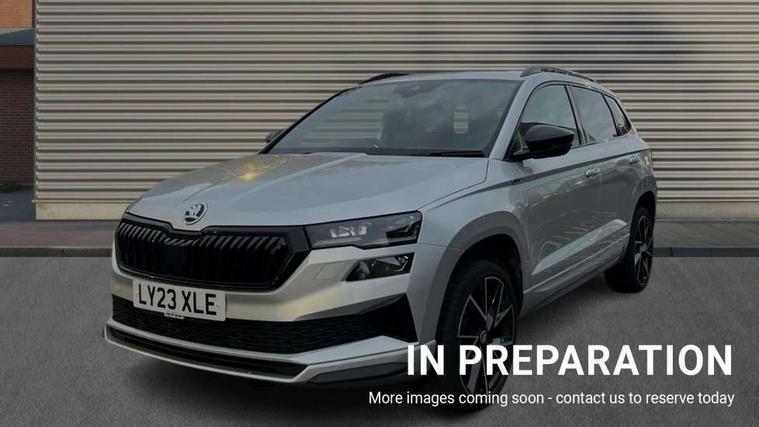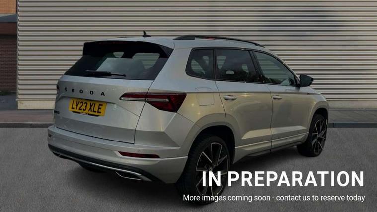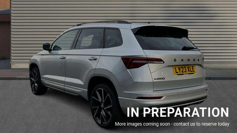 8" Digital display, Care connect, Driver fatigue sensor, Emergency services call system, Outside temperature gauge, Service interval indicator, SmartLink wireless for Apple and wired for Android, Start/stop system with regenerative braking, USB C Port x 2 in front centre console, Virtual cockpit, Virtual pedal with electrically operated boot door, 8 Speakers, DAB radio with Bluetooth, USB connection, Wireless charging without wireless aerial connection, Acoustic glass, Aero front windscreen wipers with intermittent function, Auto dimming rear view mirror with light and rain sensors, Black door mirrors, Black electric window control buttons, Black radiator grille, Black roof rails, Body colour door handles, Electric front and rear windows with child proof lock, Front door steps with SportLine logo, Heated rear windscreen, LED daytime running lights, LED rear lights with high functionality welcome effect and dynamic indicators, Light assistant (coming/leaving home/tunnel light), Panoramic sliding sunroof, Plastic scuff plates, Privacy glass, Protective door side sills in body colour, Rear diffuser, Rear side wing doors, Rear spoiler, Rear window wiper with washer system and intermittent control, Safety reflectors on front doors, Skoda lettering on tailgate in black, Sportline badge on front fender, Sportline decorative inserts with badging, Sports front and rear bumpers, 1.5 litre bottle holders in driver and front passenger door panels, 12V socket in boot, 12v socket in front centre armrest with storage compartment and rear air vents, 3 rear height adjustable headrests, 3 seat bench in 2nd row, 3 spoke leather sports multifunction steering wheel and silver stitching, 4 foldable roof handles with rear coat hooks, Black floor carpet, Black roof headlining, Chrome inner door handles, Double sided boot floor, Foldable hooks in the boot, Front head restraints, Height adjustable front three point seats belts with tensioners, Height/reach adjust steering wheel, Ice scraper, Illuminated glovebox, Illuminated luggage compartment, Isofix child seat preparation outer rear, Manual lumbar support for front seats, Pen holder, Pollen filter, Rear boot cover, Rear reading lights, Rear seats fixed folding and divided 60:40, Rubbish bin door, Safety vest holder, Single front passenger seat, Storage box in upper central dashboard closed, Sunvisors with illuminated vanity mirrors, Textile floor mats, Ticket holder, Titan black interior ceiling, Welcome animation with sportline logo, Boot pack - Karoq, Light Pack - Karoq, Parking pack - Karoq, Automatic door unlocking in case of crash, Automatic fuel cut off in case of crash, Child locks on rear doors, Driver airbag, Electronic parking brake with auto hold function, Emergency rear braking signal, ESC including ABS, MSR, ASR, EDS, HBA, DSR, RBS, MKB and traction control, Front side airbags, Hill hold control, Knee airbags, Passenger airbag with switch-off function, Pedestrian monitor, Seatbelt reminder signalisation and pretensioner for all seats, Three point seatbelts rear, Two tone horn, Tyre pressure display, Tyre pressure monitor, Alarm with interior monitoring, back up horn and tilt sensor with safe function, Electronic engine immobiliser, Keyless entry and start/stop, Remote central locking with 2 remote folding keys, Black air vent surround, Black centre console, Satin black dashboard, Satin black door trim, 19" Sagitarius anthracite alloy wheels with matt black aero inserts, Anti-theft wheel bolts protection, Matt black aero hub caps, Storage on wheel cover, Tool kit,