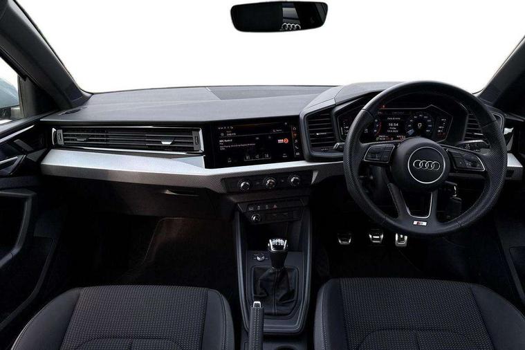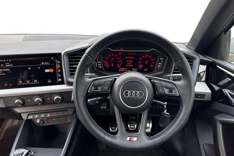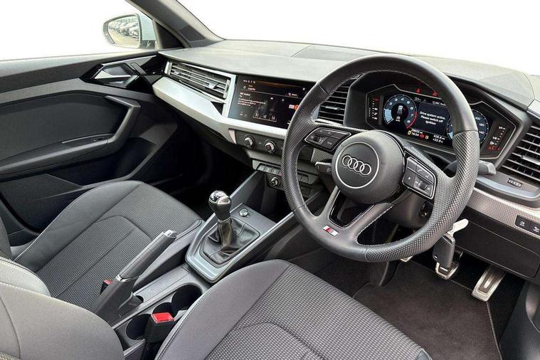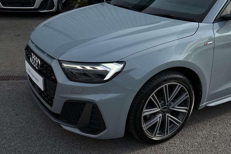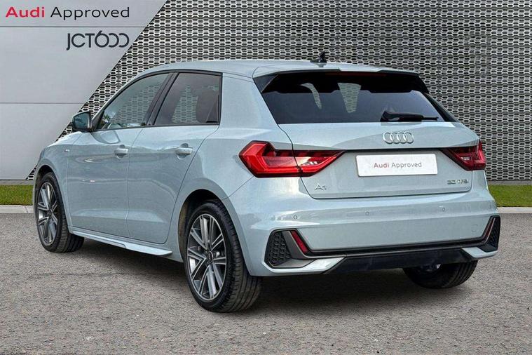 Audi drive select - power steering assistance + engine, Audi smartphone interface, Automatic start/stop system, Cruise control, Driver's information system, Electromechanical power steering, Emergency e-call, Lane departure warning system, Service interval indicator, Speed limiter, Voice control system, Washer fluid level indicator, Sports suspension, 2 x USB type C connection points, DAB Digital radio, Auto dimming rear view mirror, Body coloured door mirrors, Door sills with aluminium inlays and S Line logo, Electric front and rear windows, Electrically adjustable, heated, folding door mirrors with integrated LED side indicator, Front side air inlets in grained matt black and C frame in anthracite black, Heat insulating glass windscreen and side windows, Heated rear windscreen, High level LED brake light, LED headlights with LED rear lights + dynamic rear indicators + headlight adjustment and high beam, turning light + LED daytime running lights, Privacy glass, Radiator grille and rear diffuser in matt anthracite black, Radiator protective grille frame in matt aluminium silver, Rain and light sensors, Rear fog lights, Rear side wing doors, Rear wiper, S line badges on front wings, Side front spoiler lips in grained matt black, 12V socket in centre console with two cup holders, 3 rear seats with headrests, 3 seat bench in 2nd row, 3 spoke leather multi-function plus steering wheel features S badging and grips in perforated leather with contrast stitching, 40:60 Split folding rear seat or folded fully, Black cloth headlining, Driver and passenger seat with manual height adjust with forward and backwards adjustment, Front and rear black floor mats with contrast stitching in fine silver, Front head restraints, Front passenger seat, Height and reach adjustable steering wheel, ISOFIX child seat mounting for front passenger and outer rear seats including top tether attachment point of outer rear seats, Leather gear knob with aluminium trim, Leather handbrake grip, Luggage compartment light with front and rear reading lights, Manually adjustable lumbar support in front seats, Stainless steel pedals, LED interior lighting pack - A1, Luggage compartment pack - A1, S line exterior styling pack - A1 Sportback, Technology pro pack - A1, 3x3 point rear seatbelts, Audi pre-sense front with pedestrain and cyclist recognition, Brake assist function, Driver and front passenger airbag with front side and head airbags, Electronic Stability Control including ABS, EBD, ASR and EDL, Front passenger airbag deactivation switch, Hill hold assist, Manual rear child locks, Seatbelt height adjustment for front seats, Seatbelt monitoring, Tyre pressure warning light, Warning triangle and first aid kit, Anti theft alarm, Anti theft wheel bolts and loose wheel warning, Immobiliser, Aluminium trim for control switches, air vents and digital instrument cluster, Black dashboard, Silver grey inlays polygon structure in diamond paint finish, Structured grey accent areas including air vents, door handle recesses and centre console in quartz paint finish,