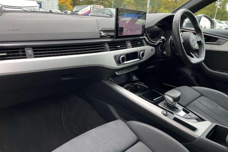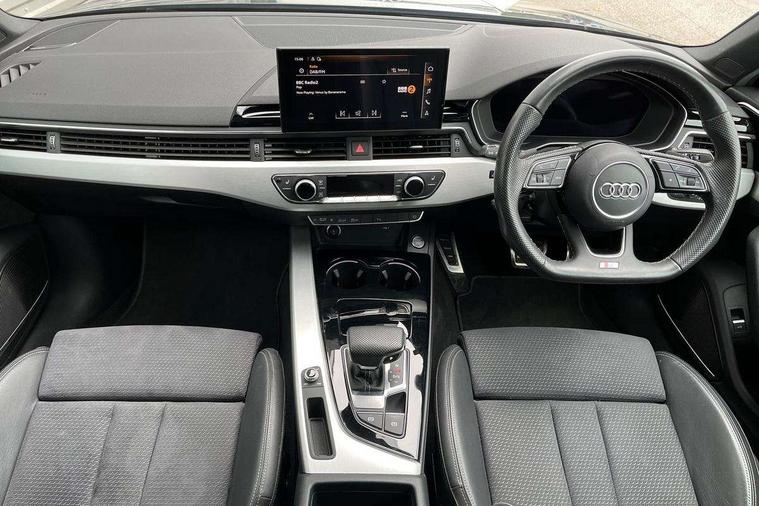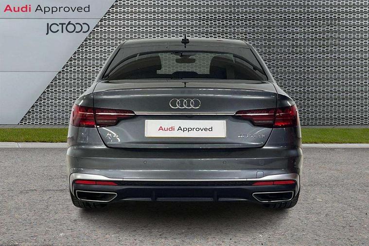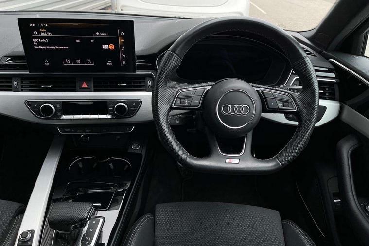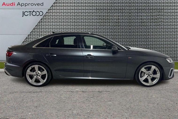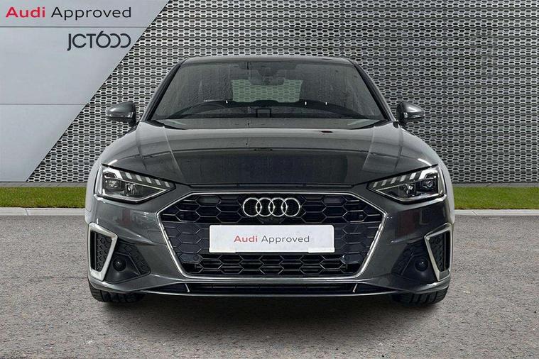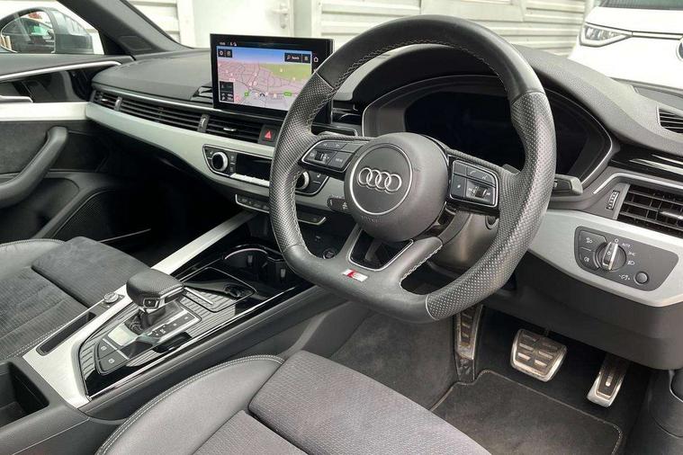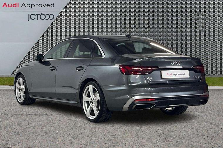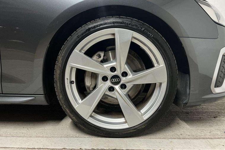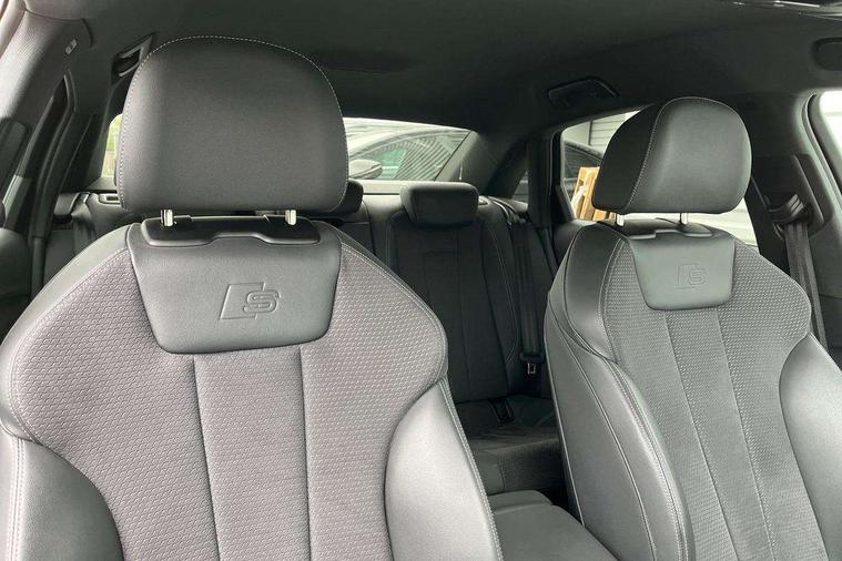 Audi connect safety and service (e-call), Audi connect with Amazon Alexa Integration, Audi drive select, Audi smartphone interface, Audi virtual cockpit, Automatic start-stop system with coasting functionality and efficiency programme, Bluetooth interface, Electric boot lid release, Electromechanical power steering, Email, calendar and text messages displayed via MMI, MMI Navigation plus with MMI touch includes 10.1" high resolution colour MMI display, 3D map, Voice control system, 54 litre fuel tank, Sports suspension lowered by 23mm, 2 USB charging ports, 8 passive loudspeakers, DAB digital radio reception, Auto dimming rear view mirror, Body colour door handles, Body colour front spoiler lip, Body colour side sill trim, Body coloured door mirrors, Electrically folding auto dimming/adjustable/heated door mirrors with LED side indicators and kerb view function for passenger side, Grained matt black side air inlets with matt aluminium silver inlay, High beam assistant, Honeycomb structure radiator grille in grained matt black, LED headlights with LED rear lights + dynamic rear indicators + headlight adjustment and high beam, turning light + LED daytime running lights, LED third brake light, Matt aluminium silver tailpipe trim, Privacy glass, Rain and light sensors, Rear boot, Rear side wing doors, S Line badges on the front wings, S line front and rear bumpers with side skirts, S Line rear diffuser in matt titanium black with trim strip in matt aluminium silver, Variable intermittent front wash/wipe, Windscreen with acoustic glazing, 4 way electric lumbar support for driver and front passenger, 40/20/40 split folding 3 rear seat bench in 3 parts with rear centre armrest, Black cloth headlining, Black perforated leather gearknob, Contrast stitching on seats, steering wheel and gear lever gaiter, Deluxe 3 zone electronic climate control, Door sill trims with aluminium inlay, Front and rear head restraints, Front centre armrest, Heated front seats, Illuminated door sill trims with S logo, ISOFIX child seat mounting and top tether, Manual seat adjustment, Single front passenger seat, Stainless steel pedals and foot rest, Tool kit, High gloss package - A4, LED Interior light pack - A4/S4, 3 rear seatbelts, 6 airbags - Driver, front passenger, curtain and side windows, Electronic Stabilisation Control (ESC) including ABS, ASR and EDL, Hill hold assist, Multi collision brake assist, Pop-up bonnet for pedestrian protection, Pre sense city, Rear door child safety locks, Seatbelt monitoring, Warning triangle and first aid kit, Anti theft alarm, Anti theft wheel bolts, Central locking, Keyless Go, Matt brushed aluminium inlays, Tyre repair kit,