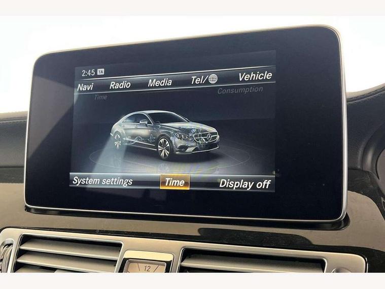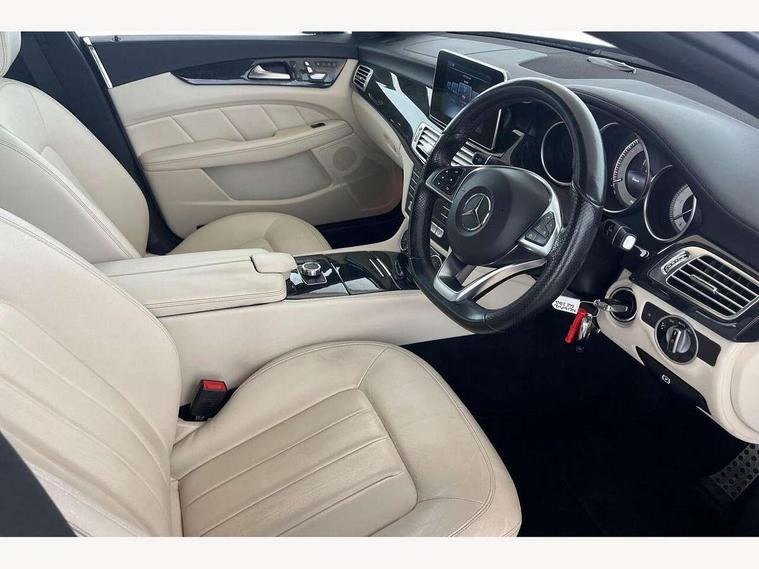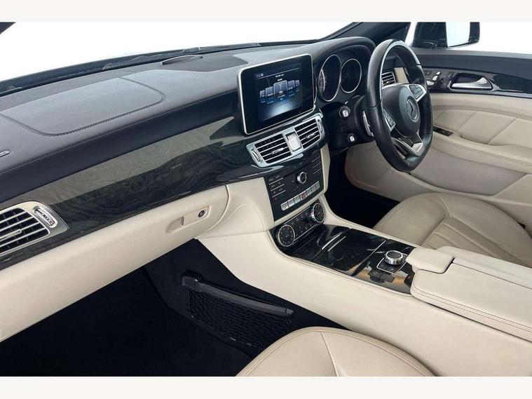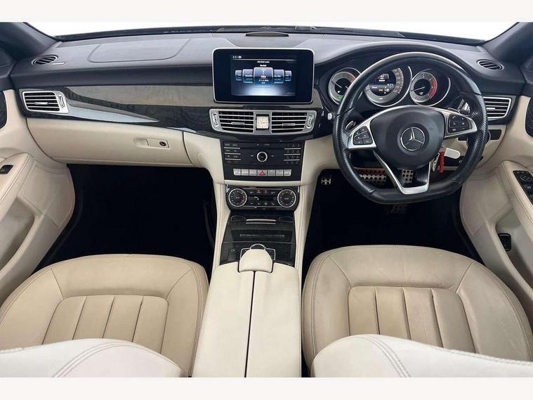 Active park assist with parktronic system, Attention assist, Bluetooth interface for hands free telephone, Collision prevention assist plus, COMAND online HDD Nav with media interface, radio/CD/DVD/MP3, 8" screen, linguatronic, 10GB music register, memory card slot, smartphone integration, Multi function trip computer, Outside temperature gauge, Remote boot release, Service indicator (ASSYST PLUS), Smartphone integration with Apple CarPlay and Android auto, Speed sensitive power steering, Diesel particulate filter, DAB Digital radio, SD card slot, USB/aux input socket, Adaptive brake lights, AMG bodystyling, Auto dimming door mirrors, Auto dimming rear view mirror, Automatic headlights with high beam assist, Body coloured bumpers, Chrome door handles, Electric folding door mirrors, Electric front/rear windows with one touch/auto up/down, Electric glass sunroof, Electric heated + adjustable door mirrors, Headlight washers, Heated windscreen wash system, Intelligent LED headlight system with active cornering lights, LED daytime running lights, LED rear lights, Radiator grille with integral star and 1 louvre in diamond design, Rain sensor windscreen wipers, Tinted glass, Visible twin exhaust tailpipe in bumper, 1/3 to 2/3 split folding rear seats, 2 rear head restraints, 3 spoke flat bottom AMG steering wheel in nappa leather, Adjustable lumbar support, Ambient lighting, AMG floormats, AMG sports seats, Auto Mercedes-Benz child seat recognition sensor, Courtesy light switch-on with door unlocking, Dual zone climate control, Easy-pack folding rear seat backrests, Front and rear door pockets, Front centre armrest with storage compartment, Front cupholders, Front height/angle adjust neck pro active head restraints, Front seat back map pockets, Heated front seats, Height/reach adjust steering wheel, Illuminated glovebox, Interior rear light/integral reading lights, Isofix rear child seat fastenings, Leather gear knob, Lockable glovebox, Multi function steering wheel, Rear armrest with storage + cupholders, Sports pedals with stainless steel surfaces and rubber studs, Steering wheel gearshift paddles, Storage compartment under load area floor, Sunvisors with illuminated vanity mirrors, Memory pack - CLS, ABS with Brake Assist, Adaptive brake system, Brake calipers with Mercedes-Benz lettering + perforated brake discs, Child proof door locks, Drivers knee airbag, Dual stage driver/passenger airbags, ESP with ASR, Front and rear curtain airbags, Front side airbags, Hill start assist, Pre-Safe anticipatory safety system, Rear seatbelt warning indicator, Tyre pressure monitoring system, Warning triangle and first aid kit, Alarm system/interior protection/immobiliser, Locking wheel bolts, Remote central locking, 19" AMG multi spoke alloy wheels titanium grey, Tyre repair kit,