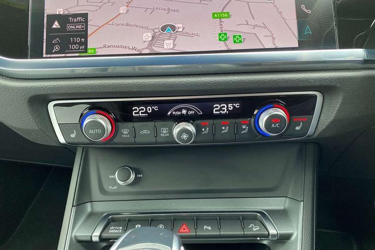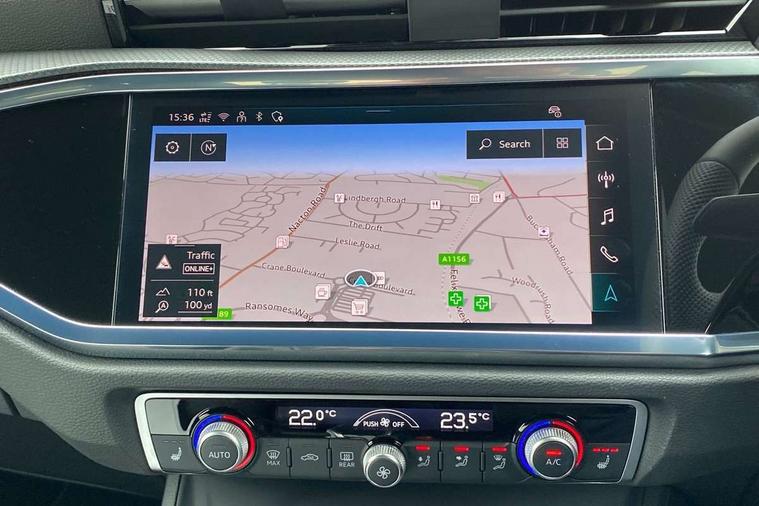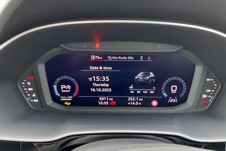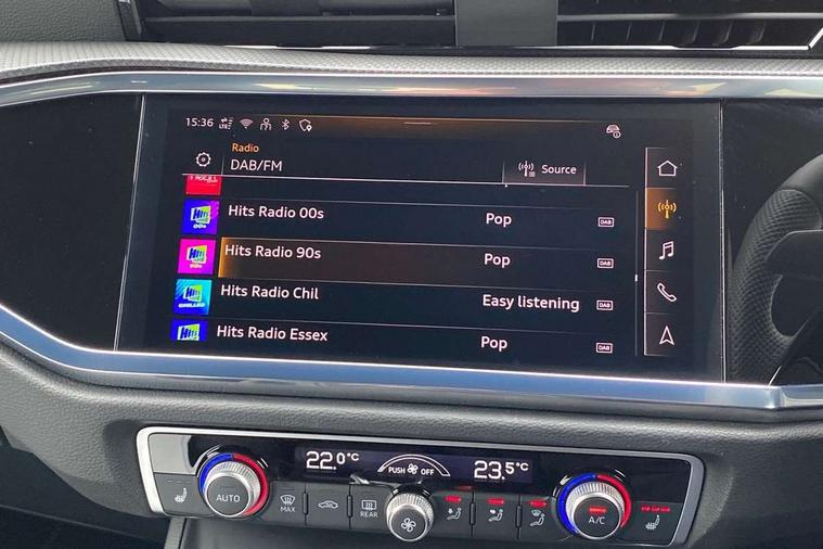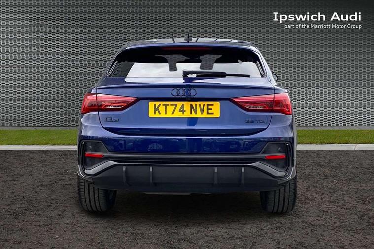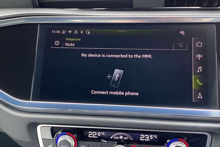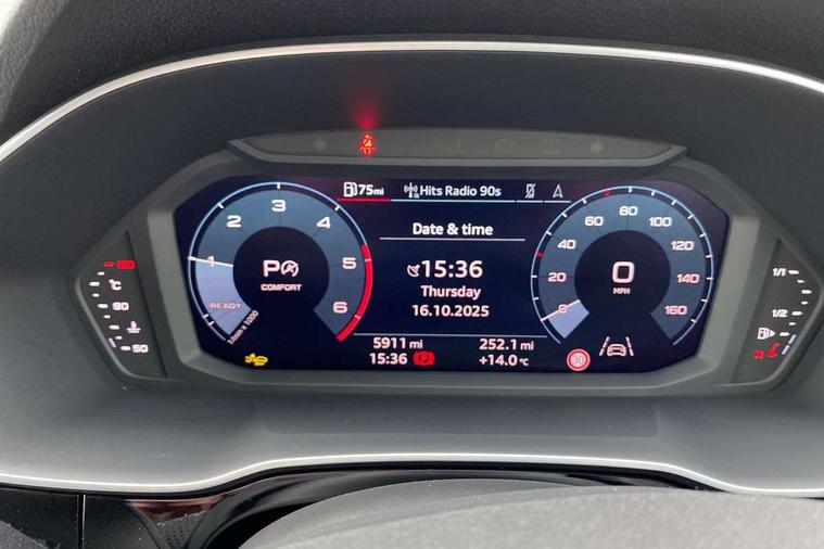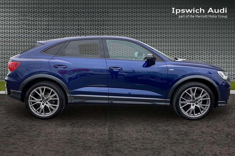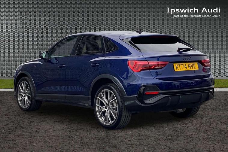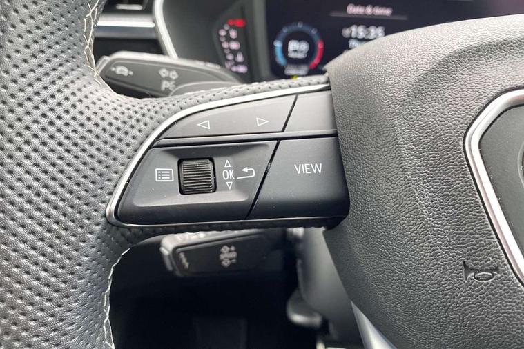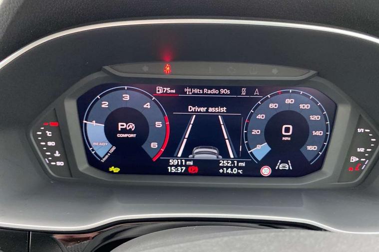 Audi connect safety and service, Audi drive select, Audi lane departure warning, Audi Virtual Cockpit - 10.25" display, Bluetooth interface, Camera based traffic sign recognition, Distraction and Fatigue warning, Legal emergency call, MMI Navigation Plus with high resolution 10.1 inch touchscreen colour display, Power operated tailgate, Progressive steering, Service interval indicator, Smartphone interface includes wireless Apple carplay/Android Auto, Start stop system with recuperation, Voice control system with natural language interaction, Diesel particulate filter, Sports suspension, 2 USB-C ports with charge and data functions, 6 passive loudspeakers, DAB digital radio module, Acoustic windscreen, Audi Beam uses LEDs to project the Audi logo onto the ground as you exit your Q3, Auto dimming door mirrors, Auto dimming frameless rear view mirror, Diffuser grille in grained matt black, Diffuser trim in selenite silver, Electrically folding, adjustable and heated door mirrors with integrated LED side indicators and kerb view function for passenger side, Front and rear electric windows, Front fog lights, Front underbody protection in manhattan grey paint finish, High gloss black finish B and C pillars, LED Dynamic rear indicators, LED headlights with LED daytime running lights, LED rear lights, LED third brake light, Privacy glass dark tinted rear and rear-side windows (from B-pillar backwards), Rain and light sensors, Rear side wing doors, Rear underbody protection in matt black, Rear wiper, S line front and rear bumpers and side skirts in contrasting Manhattan grey paint finish, Variable front intermittent wipers, 12V socket in rear centre console, 3 seat bench in 2nd row, 40:20:40 folding with manual adjustment for 60:40 forwards/backwards position and backrest angle, Adjustable rear seat bench/backrest with centre armrest and cupholder, Black cloth headlining, Dual zone electronic climate control, Electric lumbar support, Front and rear black floor mats with contrast stitching, Front and rear headrests, Front centre armrest, Height and reach adjustable steering wheel, Illuminated door sill trims with S logo, ISOFIX child seat mounting for front passenger with airbag deactivation and outer rear seat including top tether attachment point for outer rear seats, Luggage compartment sill protection in stainless steel, Manual front seats with height adjustment, Perforated leather gearknob, Single front passenger seat, Stainless steel pedals, Twin leather upholstery with front sport seats + S embossing, Black styling pack - Q3, Non smoking pack - Q3, 3x3 point rear seatbelts, 6 airbags - Driver, front passenger, curtain and side windows, Audi pre-sense front with pedestrain and cyclist recognition, Electrically operated child locks on rear doors, Electromechanical parking brake, Electronic stabilisation control including ABS, ASR and EDL, Front seatbelt reminder, Hill descent control, Hill hold assist, Pre sense basic, Seatbelt monitoring, Tyre pressure warning, Warning triangle and first aid kit, Anti theft alarm, Anti theft wheel bolts, Immobiliser, Remote central locking, Aluminium look interior elements, Detail dashboard around MMI touch colour display in glass look, black with surround in aluminium look, Leatherette door armrest, Piano black inlay,