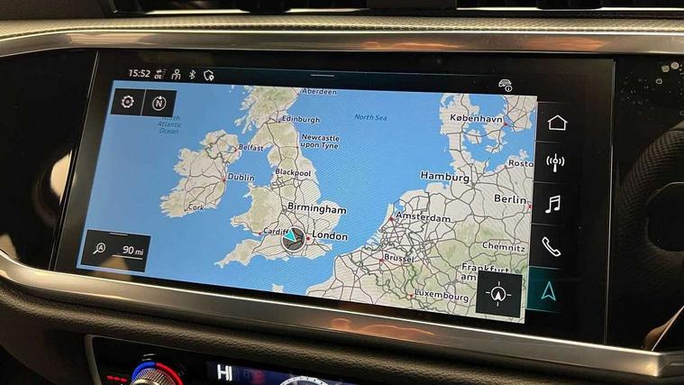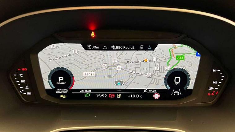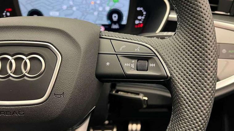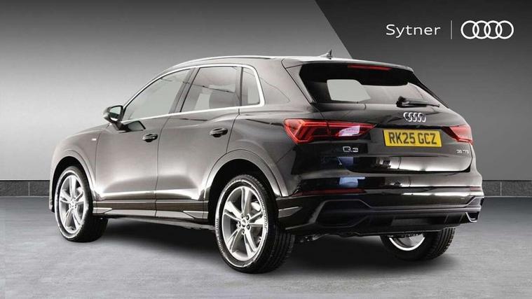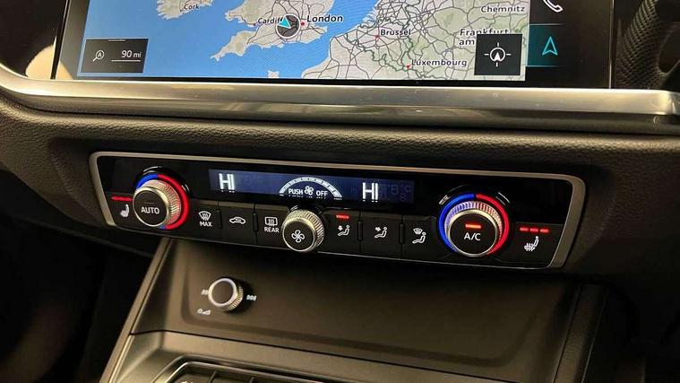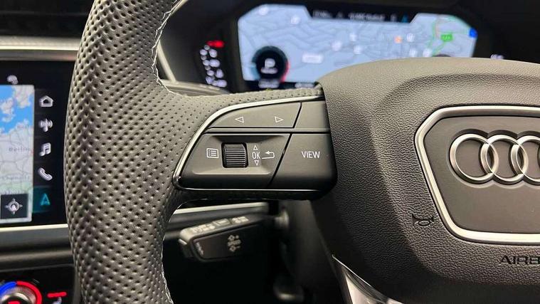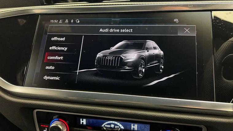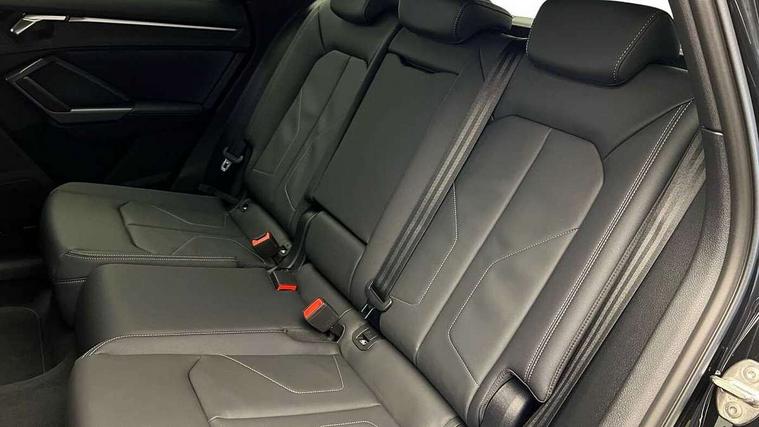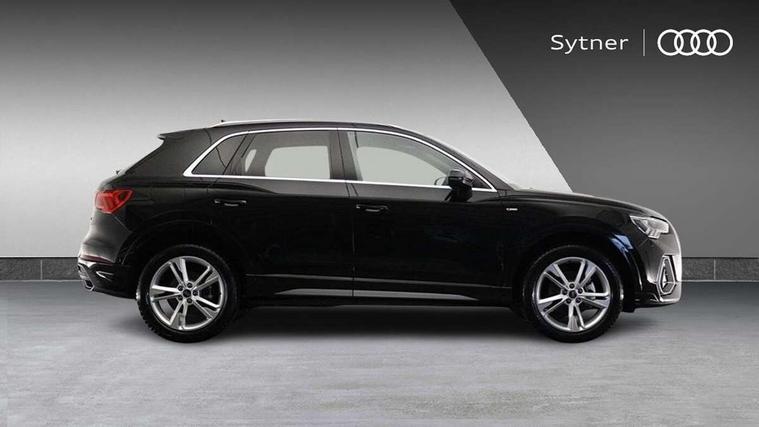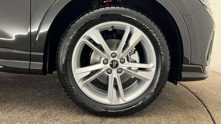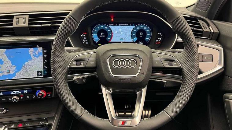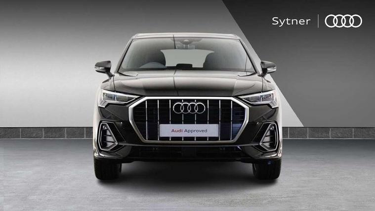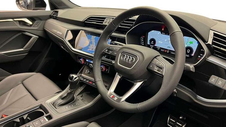 Amazon alexa Integration, Audi connect safety and service, Audi drive select, Audi lane departure warning, Audi Virtual Cockpit - 10.25" display, Bluetooth interface, Camera based traffic sign recognition, Distraction and Fatigue warning, Legal emergency call, MMI Navigation Plus with high resolution 10.1 inch touchscreen colour display, Power operated tailgate, Progressive steering, Service interval indicator, Smartphone interface includes wireless Apple carplay/Android Auto, Start stop system with recuperation, Voice control system with natural language interaction, Sports suspension, 2 USB-C ports with charge and data functions, 6 passive loudspeakers, DAB digital radio module, Acoustic windscreen, Aluminium roof rails, Aluminium window trim, Anthracite black radiator grille, Auto dimming door mirrors, Auto dimming frameless rear view mirror, Body colour front spoiler blade, Electrically folding, adjustable and heated door mirrors with integrated LED side indicators and kerb view function for passenger side, Front and rear electric windows, Front fog lights, Front side air inlets in matt platinum grey, Grille vertical bars in aluminium silver/Matt, High gloss black finish B and C pillars, LED Dynamic rear indicators, LED headlights with LED daytime running lights, LED rear lights, LED third brake light, Privacy glass dark tinted rear and rear-side windows (from B-pillar backwards), Rain and light sensors, Rear diffuser grille in grained matt black, Rear diffuser strip in matt anthracite black, Rear side wing doors, Rear wiper, S line badges on front wings, S line front and rear bumpers and side skirts in contrasting Manhattan grey paint finish, Side skirt insert in matt Platinium grey, Variable front intermittent wipers, 12V socket in rear centre console, 3 seat bench in 2nd row, 3 spoke leather multifunction steering wheel features S badging and grips in perforated leather with contrast stitching, 40:20:40 folding with manual adjustment for 60:40 forwards/backwards position and backrest angle, Adjustable rear seat bench/backrest with centre armrest and cupholder, Black cloth headlining, Dual zone electronic climate control, Electric lumbar support, Front and rear black floor mats with contrast stitching in rock grey, Front and rear headrests, Front centre armrest, Height and reach adjustable steering wheel, Illuminated door sill trims with S logo, ISOFIX child seat mounting for front passenger with airbag deactivation and outer rear seat including top tether attachment point for outer rear seats, Manual front seats with height adjustment, Perforated leather gearknob, Single front passenger seat, Stainless steel luggage compartment sill finisher, Stainless steel pedals, Twin leather upholstery with front sport seats + S embossing, Non smoking pack - Q3, 3x3 point rear seatbelts, 6 airbags - Driver, front passenger, curtain and side windows, Audi pre-sense front with pedestrain and cyclist recognition, Electrically operated child locks on rear doors, Electromechanical parking brake, Electronic stabilisation control including ABS, ASR and EDL, Front seatbelt reminder, Hill descent control, Hill hold assist, Pre sense basic, Seatbelt monitoring, Tyre pressure warning, Warning triangle and first aid kit, Anti theft wheel bolts, Immobiliser, Remote central locking, Thatcham approved category 1 anti theft alarm, Aluminium look interior elements, Dark matt brushed aluminium inlay, Detail dashboard around MMI touch colour display in glass look, black with surround in aluminium look, Leatherette door armrest,