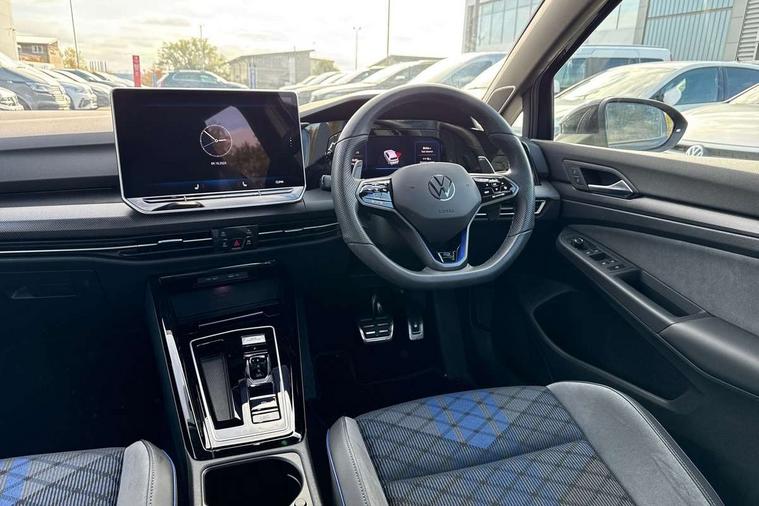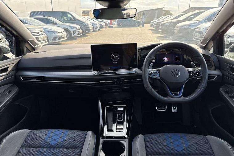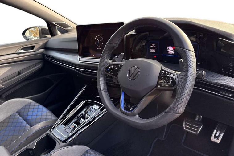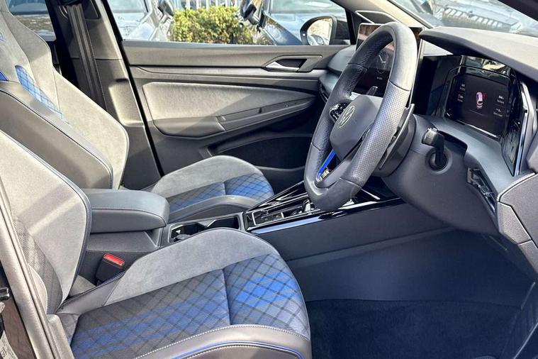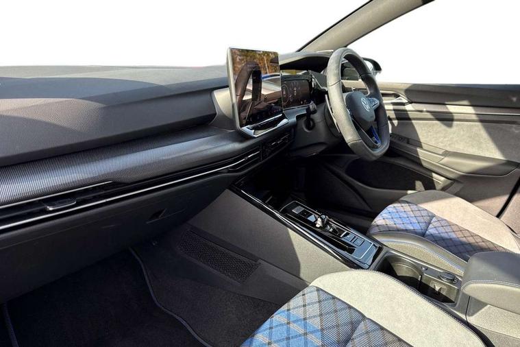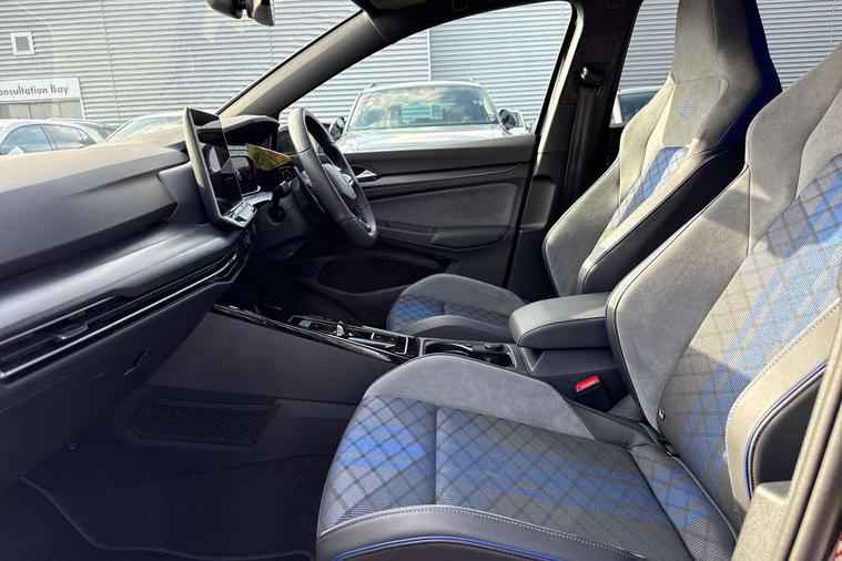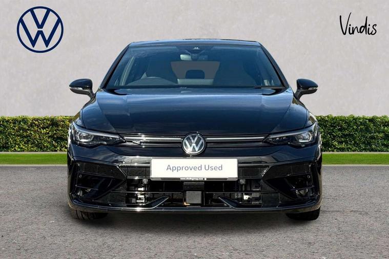 Activated carbon canister, Adaptive cruise control (ACC), Advanced driver attention and drowsiness monitor, Dynamic road sign display, E-Sim card for online connectivity, eCall emergency call system, Electronic maximum speed limit increased to 270 km/h, includes driving Modes 'drift' and 'special', larger roof spolier and GPS laptimer + G-Meter, Multi-color Digital cockpit pro, selection of different info profile possible, Multifunction front facing camera for distance control, Navigation system, Oncoming vehicle braking when turning including swerve support, Preparation for light assist system, Progressive steering, Side assist blind spot lane change system, rear traffic alert and exit warning system, Speed limiter, Speedo, rev counter, electronic odometer, trip, service interval display, exterior temperature and fuel gauge, Traffic jam assist, Voice enhancer and voice control, Warning signal and warning light for front and rear seatbelts not fastened, We connect plus preparation, We connect preparation, Wireless app connect, All wheel drive - 4Motion, Petrol Particulate Filter, Sports suspension, Start-stop system with battery regeneration (recuperation - energy recovery during braking), XDS electronic differential lock for improved traction and handling, 2 USB C ports in front, 2 USB charging sockets on the centre console in the rear charging capacity upto 45W, Comfort telephony + wireless charging, without wireless aerial connection, Digital radio reception (DAB), Diversity antenna for FM reception, Gaming platform via car app, Infotainment system with 12.9" display, Mobile phone interface with inductive charging feature, 3rd brake light, Auto dimming rear view mirror, Auto headlights, Automatic headlamp activation with Coming home and Leaving home feature, Black badge on B-pillar, Black mirror caps, Black strips on radiator grille and headlights, Body colour door handles, Darkened headlights, Darkened R Logos and VW logos in front, rear and on fender, Exhaust system with black tailpipe, Exterior ambient lighting with illuminated lighting animation and wake up/goodbye scenario, Exterior mirrors convex on the left and aspherical on the right, Front and rear electric windows, Front fog lamps and cornering light, Heat insulating windshield made of laminated glass, LED daytime running lights, LED matrix headlights with ambient light V2, advanced high beam, dynamic range contol with cornering, LED rear lamp with indicator, poor weather, R name plate, Rain sensor, Rear fog light on one side and reversing lights on both sides, Rear side wing doors, Rear tinted glass 65% light absorbing from B pillar backwards, Rear windscreen washer and wiper with interval delay, Remote electrically foldable door mirrors, puddle lights and reverse activated passenger's door mirror, Welcome light with surround lighting, 12V socket in front centre console, 12V socket in luggage compartment, 3 rear head restraints, 3 seat bench in 2nd row, 30 colour ambient lighting, illuminated center console storage compartment in front, Air care climatronic 3 Zone automatic climate control with rear air conditioning control panel, Aluminium gearshift handle, Brushed stainless steel pedals, Carpet mats, front and rear, Front centre armrest, Integrated front head restraints, ISOFIX anchors for child seats on outer rear bench seats and on front passanger seat compatible for i-Size, Luggage compartment lighting, Rear cupholder and loadthough, Single front passenger seat, Soul black instrument panel, Split folding backrest with centre armrest and unsplit rear seat bench, Storm grey roof lining, Sun visors with illuminated vanity mirrors, Driver assistance pack - Golf DSG Estate/Hatchback, R styling pack - Golf, Technology park and comfort pro package - Golf Hatchback, 3 point height adj front seatbelts + pretensioners, 3 rear three point seatbelts, ABS, Autonomous emergency braking front assist with pedestrian and cyclist monitoring, Child locks on rear doors, Disc brakes in rear incl. brake calipers in black with darkened R-logo, Driver and front passenger airbag with front passenger airbag deactivation, Electronic parking brake with auto hold, ESC (Electronic Stability Control), Extended pedestrian protection measures, Hill start assist, Two tone horn, Tyre pressure loss indicator, Volkswagen roadside assistance, Anti theft wheel bolts, Preparation for alcohol interlock, Wheel hub cover with darkened R-logo,