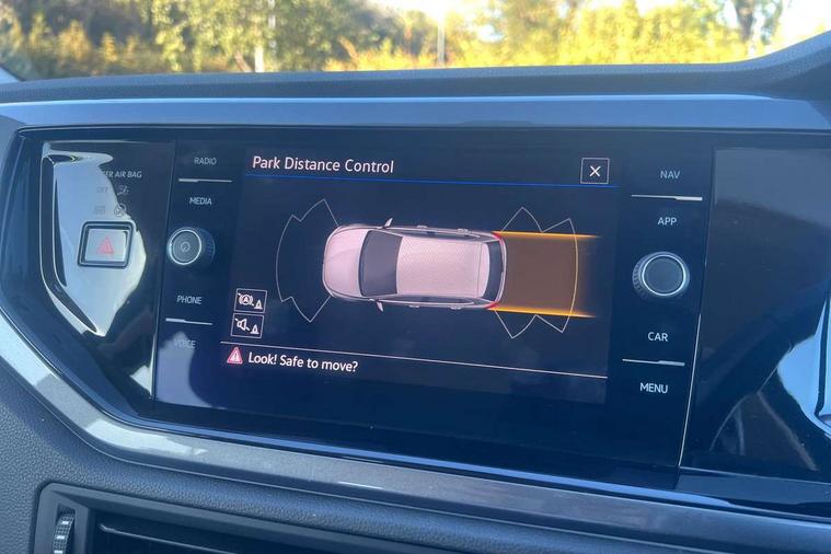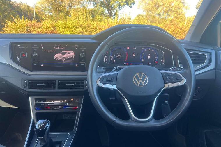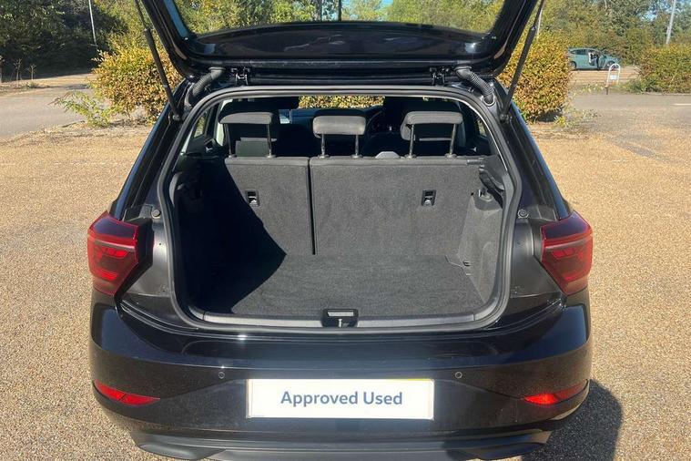 Adaptive cruise control without follow-to-stop and speed limiter, Bluetooth mobile phone interface, Digital Cockpit Pro with 10.25" Display, Driver alert system, Dynamic road sign display, Emergency call service, Power assisted speed sensitive steering, Preparation for We connect and We connect plus, Speedo and rev counter, electronic odometer, trip, service interval display and fuel gauge, Standard rear axle, Travel Assist - Lane keeping system and traffic jam assist, Travel assist including emergency assist, Trip computer, Warning signal and warning light for front and rear seatbelts not fastened, Washer fluid level indicator, Wireless app connect, Front wheel drive, Rear shock absorpion, Start-stop system with battery regeneration (recuperation - energy recovery during braking), DAB Digital radio, Diversity antenna for FM reception, Front and rear 6 speakers, Automatic dimming interior rear view mirror, Automatic headlights, Body colour door handles, Body coloured bumpers and radiator grille with chrome trims, Electric front windows, Heat insulating darkened glass in side and rear windows, Heat insulating glass windscreen, LED separate daytime running lights with coming/leaving home function, Power folding adjustable/heated exterior mirrors and front passenger exterior mirror lowering function, Rain sensor, Rear electric windows, Rear fog light, Rear side wing doors, Rear windscreen washer and wiper with interval delay, Third brake light, 12V power socket in centre console, 2 USB-C ports in the front, 2 USB-C charging sockets on the center console in the rear, 3 rear head restraints, 60/40 split folding rear seat and rear seat bench not split, Air care climatronic air conditoning system with active combination filter and 2-zone temperature control, Ambient lighting, Ceramique headliner, Chrome plated radiator grille inserts, air vent surrounds and light switch surrounds, Door and side trim panel, Driver and front passenger seat height adjustment, Driver/passenger sunvisors with illuminated vanity mirrors, Front + rear carpet mats, Front centre armrest, Front footwell illumination, Front seat backrest storage pockets, Front sports comfort seats, Handbrake lever handle in leather, Isofix child seat preparation easy-fit (for two outer rear seats, and front passenger seat) compatible with I-size, Leather trimmed gear knob, LED interior light with switch off delay and dimmer, 2 reading lights front and rear, Luggage compartment cover, Luggage compartment floor, Luggage compartment lighting, Lumbar adjustment for front seats, Multifunction steering wheel, Single front passenger seat, Standard pedal cluster, IQ LED matrix headlights pack - Polo, Light and vision pack - Polo, 3 point height adj front seatbelts + pretensioners, 3x3 point rear seatbelts, ABS, Driver and front passenger airbag with front passenger airbag deactivation, Drivers and front passengers safety optimised head restraints, ESC (Electronic stability control) + EDL (Electronic Differntial lock) and ASR (Traction control), Extended and predictive pedestrian/ cyclist protection, Front curtain and side airbags with center airbag, Front disc brakes, Hill hold control, Manual child lock in rear doors, Rear drum brakes, Single tone horn, Tyre pressure loss indicator, Alarm with interior protection, Anti-theft alarm system with interior monitoring, backup horn, and towing protection, Anti-theft wheel bolts, Electronic engine immobiliser, Chrome applications on rotary light, mirror adjustment, window regulator switches, outlet with frame in black, Deep iron gloss decorative inserts in dash and front door panels, Low rolling resistance tyres,