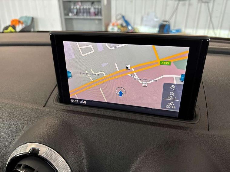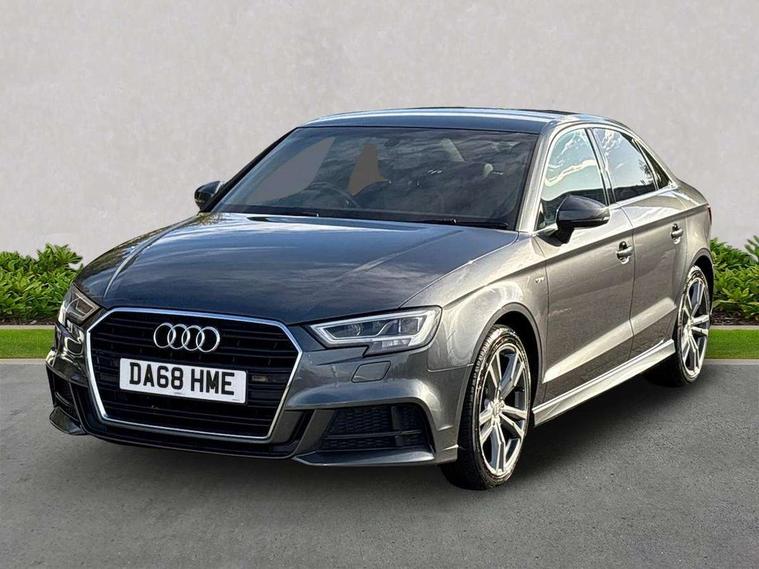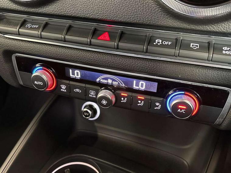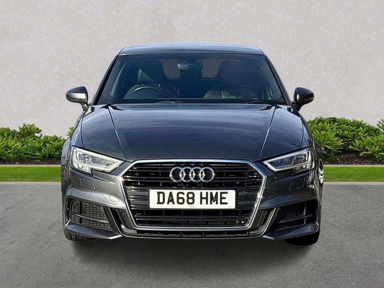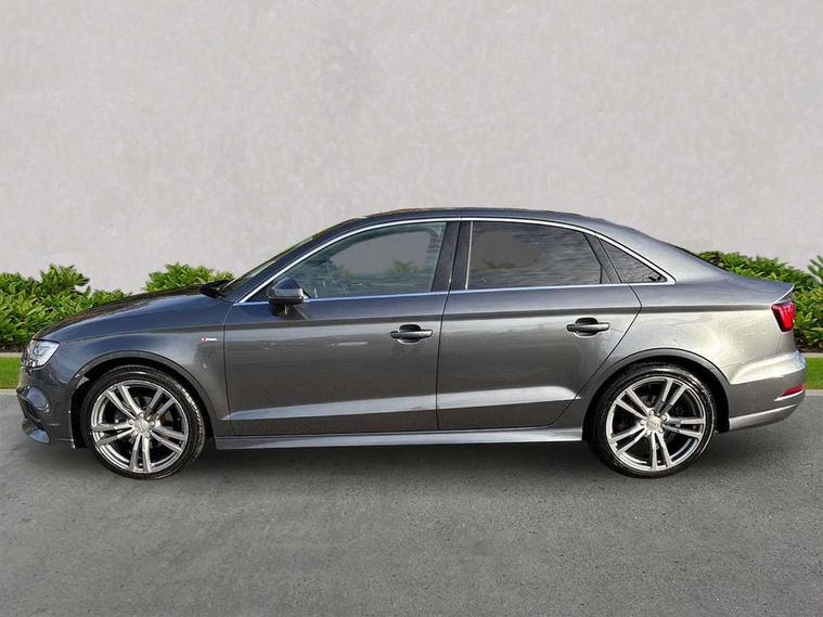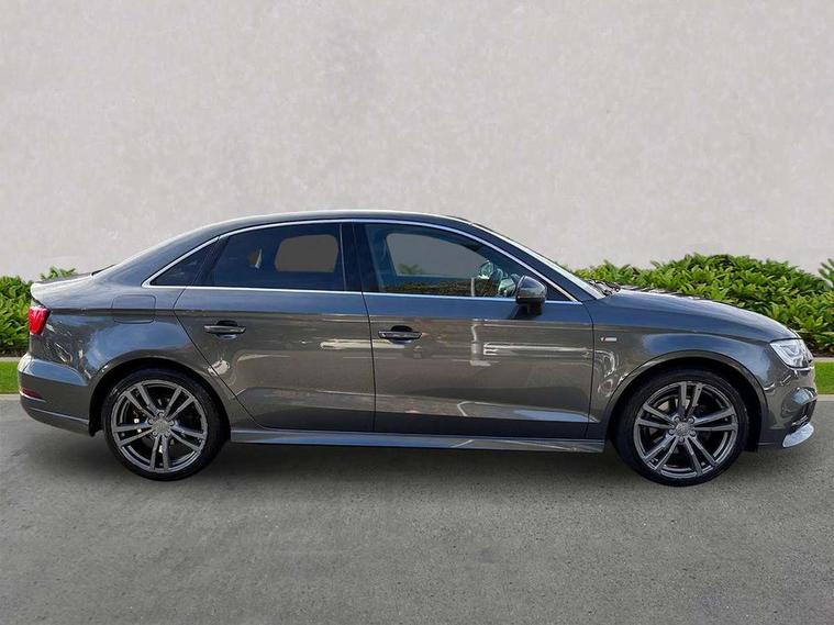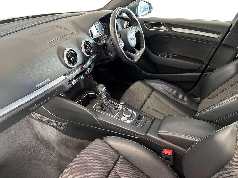 Audi connect, Audi drive select, Audi smartphone interface, Automatic start/stop system, Bluetooth interface, Colour driver's information system display, Electro-mechanical PAS, SD card based MMI navigation, Service indicator, Voice control system, 2 USB interfaces and Aux-In jack, CD player, DAB Digital radio, MMI radio plus with 7" colour MMI screen and MMI controller, Two SDXC card slots, Aluminium side window trim, Auto dimming rear view mirror, Automatic lights and wipers, Body colour bumpers, Body colour door mirrors, Dual branch chrome-plated exhaust tailpipe, Electrically adjustable and heated door mirrors with integrated LED side indicators, Front and rear electric windows, Heated rear window, Heated windscreen washer jets, S Line badges on the front wings, S Line body styling, S Line body styling with high gloss dark chrome radiator grille and rear diffuser in platinum grey, S Line body with front and rear bumpers and side skirts, S Line roof edge spoiler, 3 adjustable rear headrests, 3 spoke flat bottomed high multi-function leather sport steering wheel with gearshift paddles, 4 lashing points to secure luggage, Adjustable front centre armrest, Black cloth headlining, Driver/passenger sunvisors, Dual zone electronic climate control, Front and rear interior lights with delay, Front sport seats with S embossed logo, Front/rear floor mats, Height/depth adjustable steering column, Illuminated door sill trims with S logo, Illuminated glovebox, Illuminated luggage compartment, ISOFIX child seat mounting and Top Tether with front passenger airbag deactivation, Stainless steel pedals, Storage compartments in doors side trims, centre console and under front drivers seat, Tool kit, LED interior light pack - A3/RS3, Non smoking pack - A3, Storage and luggage pack - A3/RS3, 3 point seatbelts on all seats, ABS/EBD, Airbags - front driver/passenger, front & rear side, curtain, drivers knee, ASR, EDL, Electromechanical parking brake, ESC - Electronic Stability Control + traction control, Hill hold assist, Predictive pedestrian protection, Seatbelt warning, Tyre pressure warning, Warning triangle and first aid kit, Anti theft alarm, Anti-theft wheel bolts, Immobiliser, Remote control central locking, Aluminium air vent surrounds, Aluminium trim elements, Matt brushed aluminium inlays, Tyre repair kit,