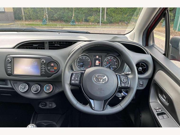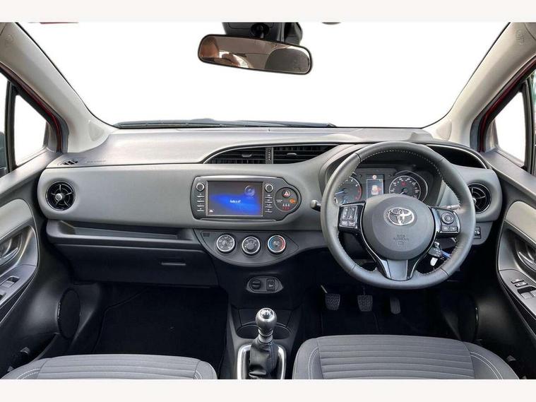 4.2" coloured LED TFT multi information display, Analogue speedometer, Analogue tachometer, Auto speed limiter, Bluetooth connectivity, Cruise control, External temperature gauge, Fuel indicator with low level warning, Key reminder warning, Lights on warning, Multi information display switches on steering wheel, Power Steering, Reversing camera, Trip computer, 6 speakers, Auxiliary input socket, Steering wheel mounted audio/telephone switches, Toyota Touch 2 with DAB, USB connection, Auto up and down function on drivers window, Automatic wipers, Black lower front grille, Body colour bumpers, Body colour door handles, Body coloured door mirrors, Daytime running lights, Electric adjustable heated door mirrors, Electric front windows, Follow me home headlights, Front fog lights, Headlight cut-off reminder, LED High mounted stop lamp, Manual dimming rear view mirror, Projector headlights, Rain sensitive windscreen wipers, Rear combination lights bulb type, Rear window defogger, Rear wiper, Turning signal integrated indicators in door mirrors, 12v power outlet - front, 3 adjustable rear headrests, 3 spoke leather steering wheel, 60/40 split folding rear seat, Active headrests, Boot light, Data Communication Module (DCM) connected services, Driver and front passenger personal light, Driver and front passenger Whiplash Injury Lessening seats, Driver/passenger vanity mirrors with covers, Front and rear cup holders, Front map reading lights, Front seats with lumbar support, Glovebox, Height adjustable driver's seat, Height adjustable front head restraints, Illuminated entry system, Isofix seat fixing, Leather gearshift, Manual air conditioning, Map pockets on the backs of the front seats, Pollen filter, Removable rear parcel shelf, Sliding front seats, Soft touch inner door garnish, Spirit fabric upholstery, Tilt/telescopic steering column, 3 point seatbelts on all rear seats, ABS+EBD+Brake assist, Collision mitigation braking system, Emergency brake light system (EBS), Front passenger airbag on/off switch, Front seatbelt reminder, Height adjustable front seatbelts with pre-tensioners and load limiters, Hill start assist control (HAC), Rear child proof door locks, Rear seat belt reminder, Road sign information display, Seatbelt warning lamp and buzzer, Supplemental restraint system (SRS) airbags - 7 airbags including driver, front passenger, curtain, side and knee airbags, Toyota safety sense including Road sign assist, Pre collision system, auto high beam and lane departure alert), Tyre pressure warning system, Vehicle stability control VSC + traction control, Engine immobiliser, Power and remote door locking, Soft touch instrument panel, Space saver spare wheel,