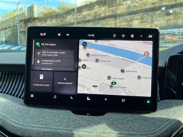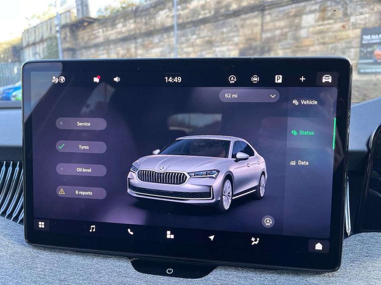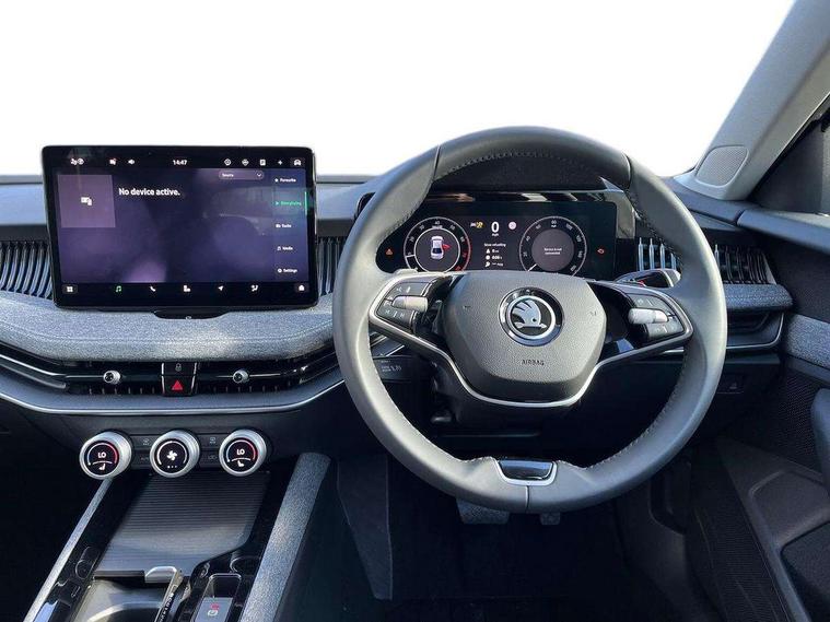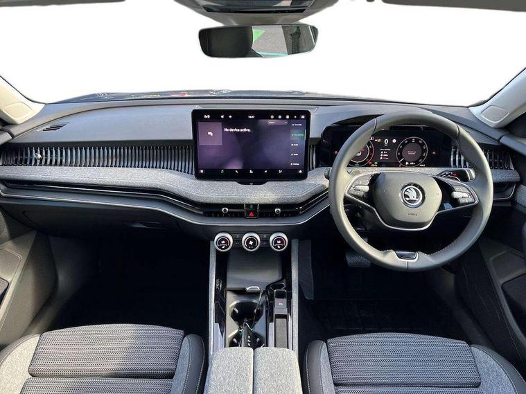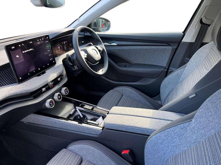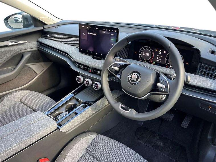 13" touchscreen display with satellite navigation, 4x USB-C ports (2x in front centre console and 2x in rear) (45W), Adaptive cruise control with speed assist, lane assist plus and traffic tram assist, Blind spot detection with door exit warning, Bluetooth system, CareConnect and Emergency Call, ChatGPT functionality, Driver fatigue sensor, Front assist with extended predictive pedestrian protection, Front cross traffic assist, PAS, Quick start all heating software functionality, Rear view camera with washer, Stop/start engine system, Traffic sign recognition, Turn assist with evasive assistance, Virtual Cockpit - 10.25" digital display, Voice control system, Wireless charging for one smartphone (15W) with cooling function, Wireless smartlink apple carplay, SmartLink+ android auto, 8 Speakers, DAB Digital radio, Display cleaner, FM radio connection, Web radio connection, Acoustic side windows and interior noise suppression, Backdrop lighting, Body colour door handles, Body coloured door mirrors, Chrome window surround, Electrically adjustable, heated, folding and driver side auto-dimming door mirrors with integrated indicators and logo projection, Frameless auto-dimming rear view mirror with USB-C, Front windscreen with heat-insulating glass, Ice scraper in fuel tank cap, LED 3rd brake light, Light assist with High beam control, Light assistant (coming/leaving home/tunnel light), Privacy glass, Rear fog light (x1), Rear side wing doors, Tow bar preparation, Unique dark chrome design logo on alloy wheels, Unique dark chrome grille surround with dark chrome rib elements, Windscreen wipers with rain sensor, 12V socket 1x centre console 1x boot, 12V socket and 2x cargo elements in boot, 2 spoke multifunction steering wheel with DSG paddles, 3 seat bench in 2nd row, 60:40 Split folding rear seats, Bottle holders in the front doors 1.5 litre bottle and rear 1.5 litre bottle, Cup holder in front with easy open mat, Front and rear footwell illumination, Front armrest with storage box, Front comfort seats, Heated front seats, Height adjustable driver and front passenger seats with 2-way electric tilt, 4-way pneumatic lumbar support, and extendable thigh support, Height adjustable front and rear head restraints, Height adjustable front passenger seat, Illuminated glovebox, Interior lights with control switches, Isofix child seat fittings in outer rear and front passenger seats, LED front and rear reading lights, Massage function for front seats, Single front passenger seat, Skoda lettering on steering wheel, Storage pockets on back of front seats, Sun visors with illuminated vanity mirrors, Ticket holder on A Pillar, Tri zone climate control, Umbrella in driver's door, 3 rear seatbelts, 8 Airbags - Front driver and passenger, front side driver and passenger, centre, curtain front and rear, drivers knee, Crew protect assist, Driver and passenger seatbelts with warning light, Electronic parking brake, ESC including ABS, EBV, MSR, ASR, EDS, HBA, DSR, RBS, CBC, multi-collision brake (MKB) and Auto hold, Hill hold assist, Power operated child lock in rear doors, Alarm with interior monitoring tilt sensor and back up horn, Backrest remote release from trunk, Electronic engine immobiliser, Keyless start/stop, Remote central locking with SAFE system, Third key, Decorative front door sills,