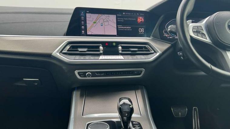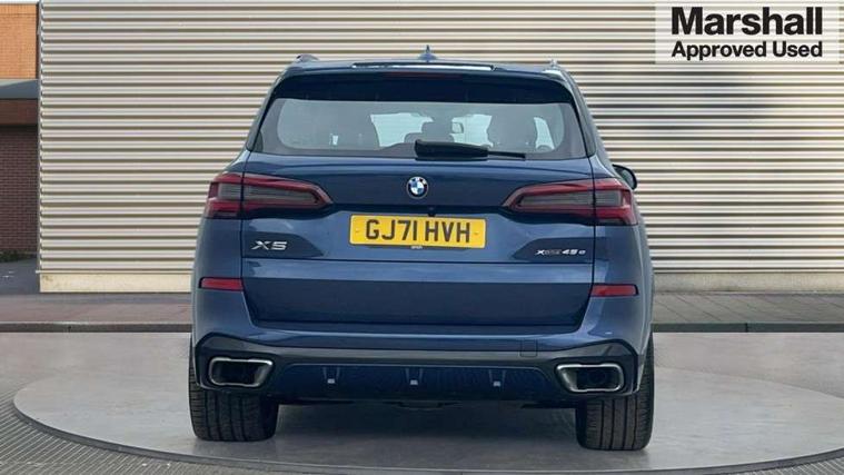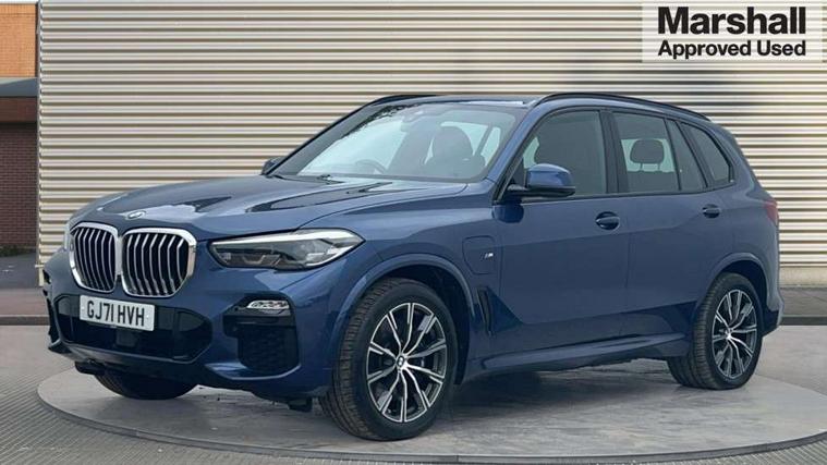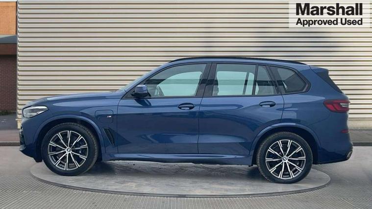 20GB hard disc drive (HDD) memory, Active guard plus, Attentiveness assist, Automatic tailgate with top hinged section open and manual bottom hinged section, BMW ConnectedDrive online services, BMW digital live cockpit professional - 12.3" digital instrument panel and 12.3" CID, with touch/voice command, BMW legal emergency call, BMW Teleservices, Brake force display, Brake pad wear indicator warning light, Cruise control with brake assist, eDrive button to select between AUTO eDrive, MAX eDrive and SAVE Battery settings, Front/rear park distance control, Galvanised plastic keyfob, Infinity symbol with line graphic on reset of average consumption, Lights on warning, Oil sensor for level and grade, On board computer inc. average speed, fuel consumption, liquid crystal Info display, journey computer, outside temperature display, personal profile, Service interval indicator, Speed limit info display, Speed limiting function, 5 metre AC Fast charge cable, Adaptive 2-axle air suspension, Double VANOS, Double wishbone front axle, Drive performance control with ECO PRO comfort + sport mode, eDrive exterior sound, Eight speed steptronic sport automatic transmission and gearshift paddles on the steering wheel, High precision injection, Petrol Particulate Filter, Safety battery terminal clamp, Standard Charging cable (Mode 2) for home socket, Twin scroll turbocharger with Valvetronic, DAB Tuner enables digital radio reception, Favourite buttons, USB connection, USB type A 1.5A in cupholder, USB Type C 3A in centre armrest, Active Air Stream kidney grille with high-gloss chrome, Adaptive air flap control bar in high-gloss black, Automatically dimming rear view mirror, BMW Individual high gloss black shadow line roof rails, Body colour bumpers, Body colour door handles, Dynamic brake lights with LED technology, Exhaust tailpipes - single, left and right with Chrome finisher, Follow me home headlight function, Front and rear electric windows with open and close fingertip control, anti trap facility and comfort closing, Heated windscreen washer jets, High beam assistant, High gloss black outer and central air intakes on front bumper with pearlescent chrome finish, High gloss black Side elements, LED daytime running lights, LED rear lights, Left charging flap on the front side, M aerodynamic body styling, M designation on left and right front side panels, Pearlescent chrome front grille bars, Rain sensor with automatic headlight activation and windscreen wiper control, Satin aluminium side window graphic, Third brake light in rear spoiler, Variable intermittent rear wash/wipe, Welcome light carpet, X5 on left tailgate, xDrive designation on right tailgate, 12V - Power sockets with 2x centre console and 1x luggage compartment, 40:20:40 split folding rear seats, Ambient interior lighting with 6 pre-designed selectable lights including dynamic function, Centre and rear interior light, Child seat ISOFIX attachment with rear outer seats includes top tether, Compartment in front of cupholder, Electric front seat adjustment with driver and front passenger memory function, Electrical steering column with adjustable height and length with activation and control on the steering column, Foldable rear centre armrest with 2 cupholders and storage compartment, Front and rear cupholders x 2, Front and rear door pockets, Front and rear door sill inlays with illuminated BMW M designation, Front and rear side armrest integrated into door trim, Front footwell lights, Front reading lights, Light inside glove compartment, Lockable glove compartment, Luggage compartment floor panel with integral storage tray, Luggage compartment lighting, M leather steering wheel, M specific key, M specific pedals, M specific steering wheel, M specific velour floor mats, Make-up mirror lights, Multifunction controls for leather steering wheel, Multifunctional hooks, Rear head restraints, Seat back with flap pocket, Securing rings in luggage compartment, Storage bins on all doors, Storage tray and compartment with cover in centre console, Sunvisors with illuminated vanity mirrors, Toolkit located in luggage compartment, Connected Package Professional - X5 xDrive45e, Expanded exterior mirror pack - X5/X5 M, Non-smokers pack - X5, Acoustic protection for pedestrians, Airbags - driver/front passenger, rear and side, first and second row seats head airbags, front passenger seat airbag deactivation + knee airbag, Anti-lock braking system (ABS), Automatic Stability Control (ASC), Brake drying, Brake energy regeneration, Brake fade compensation, Braking pre-tensioning, Cornering brake control (CBC), Crash sensor activating central locking release, hazard warning lights, fuel cut off, interior lighting + activation of safety battery terminal clamp, Deformation zones - front and rear with door reinforcements and bumpers up to 2.5 mph, DSC - Dynamic Stability Control, Dynamic brake control, Dynamic Traction Control - DTC, Electromechanical parking brake with automatic drive away release and auto hold function, Electronic brake force distribution, Front and rear seatbelts with seatbelt stopper, seatbelt tensioner for front and outer rear seats and belt force limiter, Front head restraints with anti-whiplash, Height adjustable front seatbelts, Hill start assistant, Integrated brake system, M Sport braking system in blue high gloss + blue painted brake calipers with M designation, Mechanical child proof lock on rear doors, Passive protection for pedestrians, Seat occupancy detection for driver and passenger side, Side impact protection, Three 3 point inertia reel seatbelts, Two tone horn, Tyre pressure monitoring system, Ventilated front and rear disc brakes, Warning triangle and first aid kit, Closing system with central locking, Driver and front passenger door centre lock switch, Locking wheel bolts, Thatcham 1 alarm system with remote control and engine immobiliser, Start/stop toggle diamond shaped trim finisher in pearl chrome,