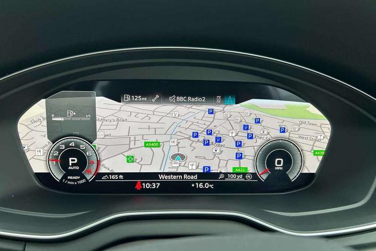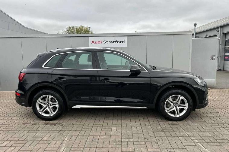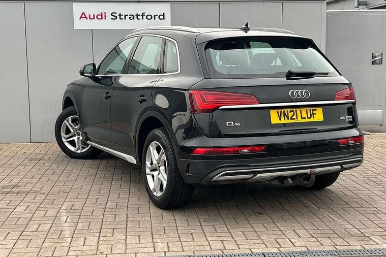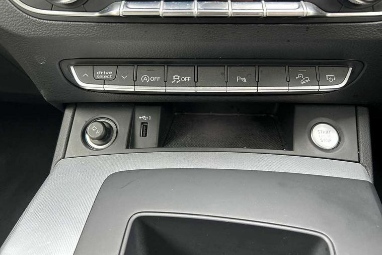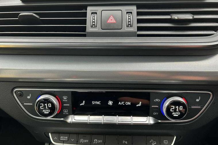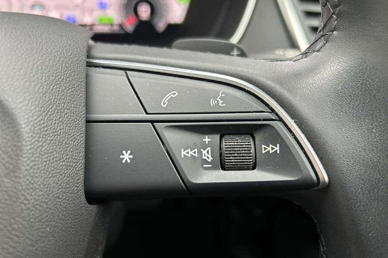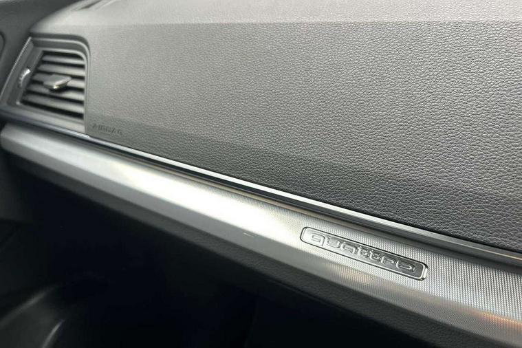 Audi connect safety and service (e-call), Audi connect with Amazon Alexa Integration, Audi drive select, Audi virtual cockpit plus with 12.3" screen and three different layout designs, Audi wireless smartphone interface, Automatic start-stop system with coasting functionality and efficiency programme, Bluetooth interface, Cruise control + speed limiter, Electro - mechanical power assisted steering, MMI navigation plus with 10.1" touch screen, Power tailgate, Reversing camera, Service interval indicator, Voice control system with Audi hotword activation "Hey Audi", Dynamic suspension, Quattro on demand, 2 x USB charging port with aux input socket, DAB Digital radio, Acoustic windscreen, Air inlets in matt titanium black with blades in matt aluminium silver, Aluminium roof rails, Auto dimming rear view mirror, Automatic headlights and windscreen wipers, Body colour bumpers, Body colour door mirrors, Chrome plated exhaust trims, Door sills in Selenite silver, Electric adjustable/heated/folding door mirrors, Front and rear electric windows, LED headlights and LED tail lights, Lower bumpers painted in contrast Manhattan grey, Matt selenite silver underbody protection, Matt twilight grey radiator grille with chrome vertical struts, Rear chrome trim strip below lights, Rear diffuser strip in selenite silver, Rear spoiler, Rear wiper, Roof bars, 3 rear headrests, 3 spoke multifunction leather steering wheel with shift paddles, 40:20:40 split folding rear seat with rear centre armrest, Comfort front centre armrest, Deluxe 3 zone electronic climate control, Door sills trims with aluminium inlays, Front/rear floor mats, Heated front seats, Height adjustable front head restraints, Height/reach adjustable steering column, ISOFIX child seat mounting and top tether, Luggage compartment cover, Manual seat adjustment with 4-way electric lumbar support, Removable luggage compartment floor, Silver cloth headlining, Sunvisors with vanity mirrors, Twin leather upholstery + front sports seats, High gloss pack - Q5, LED interior light pack - Q5, 3 point seatbelts on all seats, 6 airbags - Driver, front passenger, curtain and side airbags, Electrically operated child locks on rear doors, Electromechanical parking brake, Electronic stabilisation control including ABS, ASR and EDL, Front passenger airbag deactivation, Hill descent control, Hill hold assist, Multi collision brake assist, Pop-up bonnet for pedestrian protection, Pre sense city, Seat belt force limiter, Seatbelt monitoring, Tyre pressure warning, Warning triangle and first aid kit, Anti theft alarm, Anti-theft wheel bolts, Keyless Go access/ignition system, Aluminium rhombus inlay,