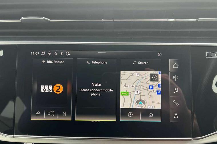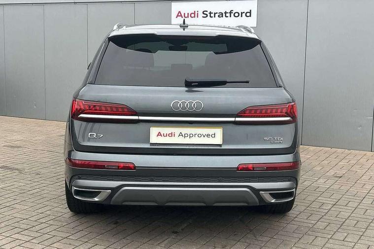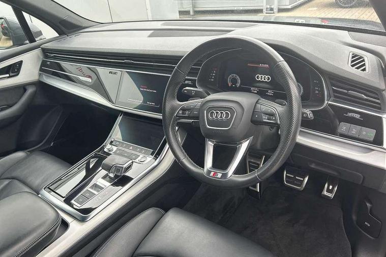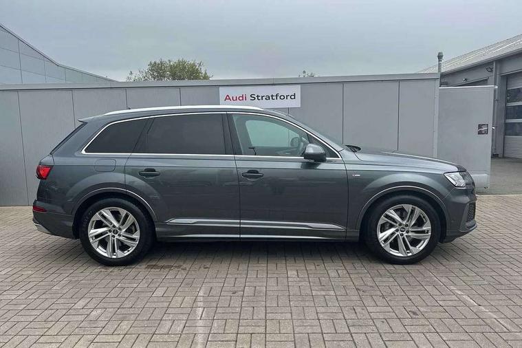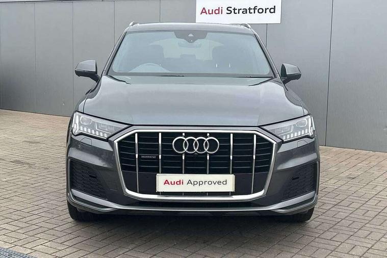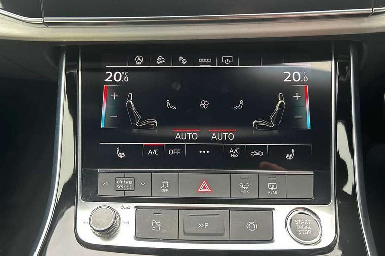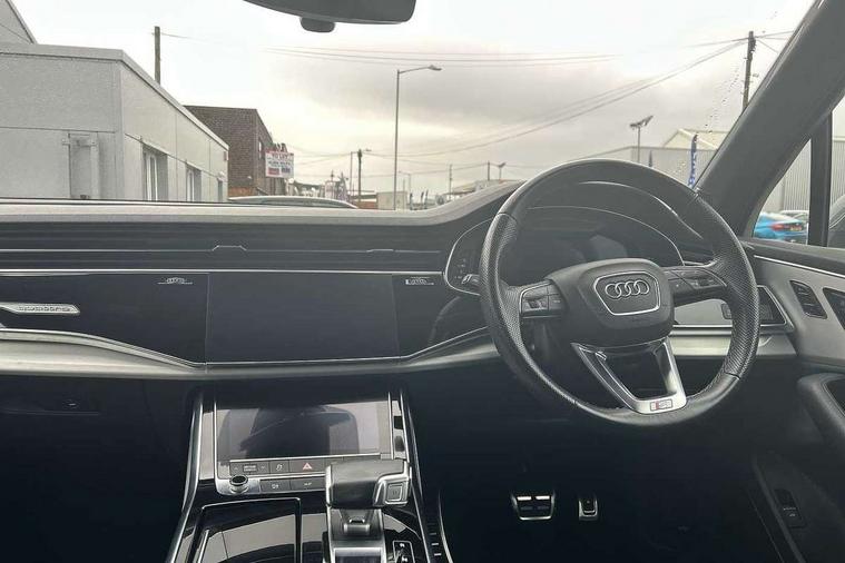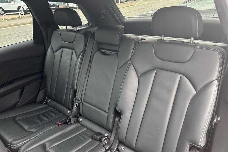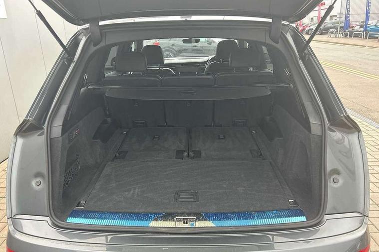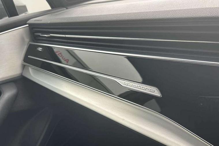 Audi connect safety and service (e-call), Audi connect with Amazon Alexa Integration, Audi drive select (Auto, Comfort, Dynamic, Efficiency, Individual, Off-road and All road), Bluetooth interface, Camera based traffic sign recognition, Electromechanical steering, MMI navigation plus with MMI touch screens includes 10.1" and 8.6" screens with haptic feedback, Natural voice recognition, Parking system plus with 360 degree display (front, rear and side sensors) - acoustic and visual park assist system, Power operated tailgate, Rear view camera, Smartphone interface includes wireless Apple carplay/Android Auto, Start/stop system, 48V Mild hybrid technology, Adaptive air suspension, Quattro all wheel drive with self locking centre differential, Audi music interface - front 2 USB-C ports with charger and data functions, Audi sound system with 6 channel amplifier, 180 watt amplifying capacity and 10 loudspeakers including subwoofer, DAB digital radio module, 3rd brake light, Aluminium roof rails, Aluminium window trim, Auto dimming frameless rear view mirror, Body coloured door mirrors, Electrically adj heated/folding + automatically dimming exterior mirrors with memory + automatic kerb side function for passenger side exterior mirror, Heat insulating glass in windshield, Integrated LED indications in door mirrors, LED daytime running lights, LED headlights and high beam assist, LED rear tail lights, Privacy glass - dark tinted rear and rear side windows from B-pillar backwards, Rear side wing doors, Rear wiper, S Line badge on wings, S line bumpers in full body colour paint finish, S line roof spoiler, S line styling side ventilation grilles and side skirts, 2 seat bench in 3rd row, 2 zone automatic climate control, 3 seat bench in 2nd row, 7 seat layout with ISOFIX points for the front passenger seat and rear passenger seat, Black cloth headlining, Comfort front centre armrest, Electric adjustable front seat with 4 way lumbar support, driver memory functionality, Folding rear seats, Front head restraints, Front/rear floor mats, Heated front seats, Illuminated door sill trims with S logo, LED interior ambient lighting, Luggage compartment cover, Luggage compartment sill protection in stainless steel, Rear head restraints, Single front passenger seat, Stainless steel pedals, Sunvisors with illuminated vanity mirrors, 3 point seatbelts on all rear seats, Audi pre sense front, Child locks on rear doors, Driver and front passenger, front side and curtain airbags, Electromechanical parking brake, Electronic Stabilisation Control (ESC) including ABS, ASR and EDL, Extended pedestrian protection measures, Hill hold assist, Seatbelt monitoring, Tyre pressure loss indicator, Warning triangle and first aid kit, Anti theft alarm, Anti-theft wheel bolts and wheel loosening detection, Keyless Go, Remote central locking, Darkened matt brushed aluminium inlays, Tool kit, Tyre repair kit,