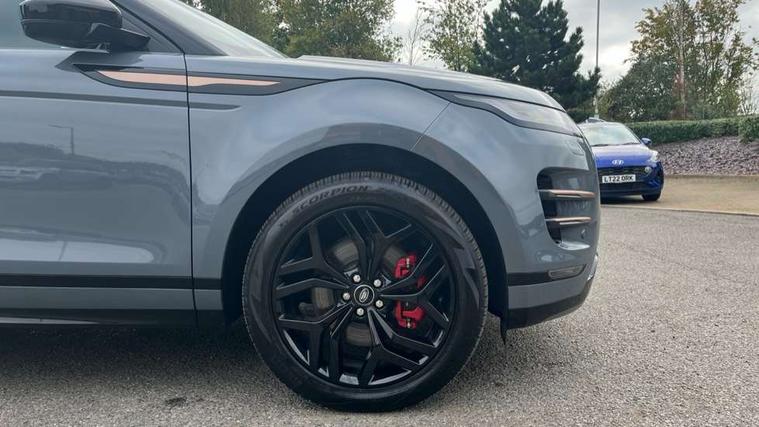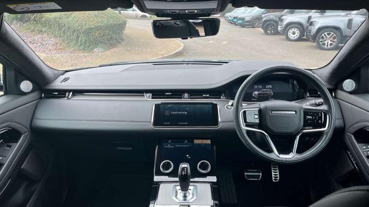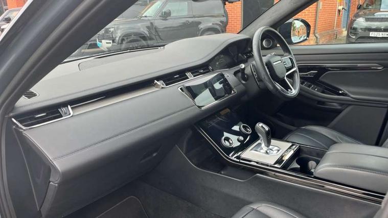 10" deployable touchscreen with lower touchscreen, Adaptive cruise control, Android Auto, Apple car play, Blind spot assist, Bluetooth connectivity, Brake pad wear indicator warning light, Clear exit monitor, Driver condition monitor, eCall emergency system, Electronic power assisted steering (EPAS), Front and rear parking aid, InControl remote, Land Rover InControl apps, Lane keep assist, Pivi pro connected includes upgraded infotainment, connected navigation pro, Nuance speech licence, Powered gesture tailgate/boot lid, Push button starter, Rear collision monitor, Rear traffic monitor, Traffic sign recognition with adaptive speed limiter, Voice control system, 7 kW onboard charger, All terrain progress control, Configurable dynamics, Electric rear axle drive, Home charging cable, Large fuel tank, Passive suspension, Public charging cable, Terrain Response 2 Auto, Digital Audio Broadcast radio-DAB, Meridian surround sound system with 650W subwoofer and 14 speakers, Steering wheel mounted controls, Auto headlights, Autobiography badge, Automatic headlight levelling, ClearSight interior rear view mirror, Electric windows with one touch open/close and anti trap, Evoque and R-Dynamic badge, Flush deployable exterior door handles, Heated rear window with timer, Heated washer jets, Heated windscreen, Matrix LED headlights with signature DRL, intelligent high beam assist, signature Hi-Line tail lights and animated directional indicators, Power fold, auto-dimming, heated door mirrors with approach lights and auto dimming driver side, R-Dynamic branding illuminated metal tread plates in loadspace and row 1 with brand name script and non illuminated metal in row 2, Rain sensing windscreen wipers, Rear fog lights, Rear side wing doors, Rear wiper, Tailgate spoiler, Third brake light, 14 way electric heated/cooled front and rear seats with driver memory, 2 way man headrest, electric 4 way lumbar support, bolsters + headrest adj, 40:20:40 split folding rear seats with centre headrest and armrest, Ambient interior lighting, Bright metal pedals, Electrically adjustable steering column with memory function and easy entry/exit, Full extended leather upgrade, Heated steering wheel, Isofix system on outer rear seats, Overhead lighting console, Overhead stowage for sunglasses, Passive front head restraints, Perforated full leather steering wheel, Premium cabin lighting, Premium carpet mats, Rear air vents, Rear centre headrest, Rear head restraints, Satin chrome gearshift paddles, Single passenger seat, Sunvisors with illuminated vanity mirrors, Twin sliding front centre armrest, 3 rear 3 point seatbelts, Anti-lock braking system (ABS), Customer configurable autolock, DSC - Dynamic Stability Control, Electronic brake force distribution, Electronic parking brake, Electronic traction control, Emergency braking, Front and rear seatbelt reminder, Hill descent control, Hill launch assist, Low traction launch, Power operated child locks, Red brake calipers, Roll stability control, Six airbags - Driver and passenger airbags/driver knee airbag/front side airbag and curtain airbags, Torque vectoring brake, Tyre pressure monitoring system, Alarm, Immobiliser, Intrusion sensor, Keyless entry, Locking wheel nuts,