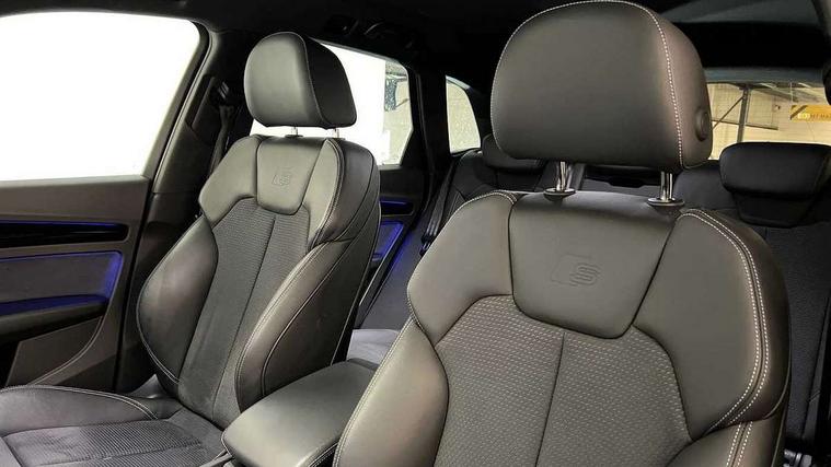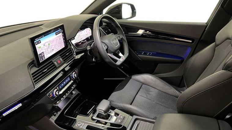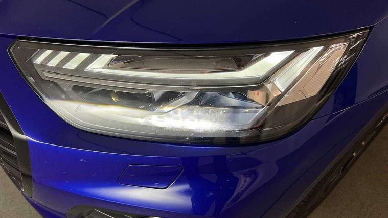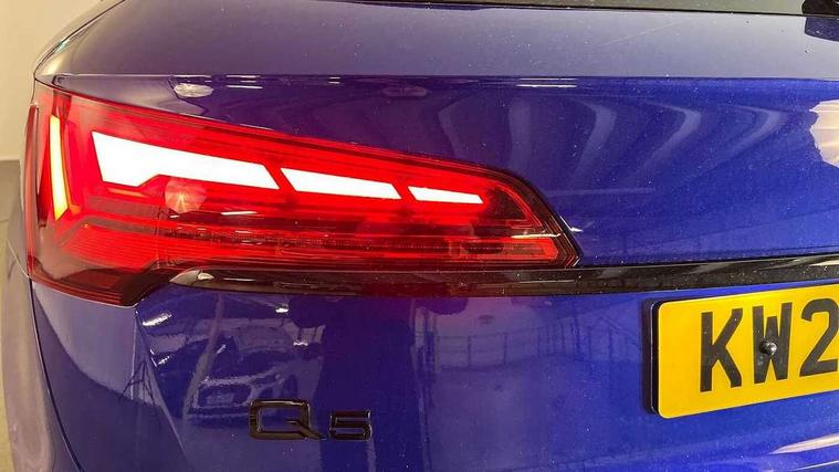 Acoustic front and rear parking sensor, Audi connect safety and service (e-call), Audi drive select, Audi virtual cockpit plus with 12.3" screen and three different layout designs, Audi wireless smartphone interface, Automatic start-stop system with coasting functionality and efficiency programme, Bluetooth interface, Camera based traffic sign recognition, Electro - mechanical power assisted steering, Lane departure warning, MMI navigation plus with 10.1" touch screen, Power tailgate, Reversing camera, Service interval indicator, Voice control system with Audi hotword activation "Hey Audi", Quattro on demand, S line sports suspension, 8 loudspeakers, DAB Digital radio, Acoustic windscreen, Auto dimming door mirrors, Auto dimming frameless rear view mirror, Automatic headlight adjustment, Automatic headlights and windscreen wipers, Black roof rails, Black styling with black rings, Body colour bumpers, Body colour rear diffuser with matt aluminium silver surrounds, Body colour underbody protection, Chrome plated exhaust trims, Daytime running lights, Door sills in Selenite silver, Electric adjustable/heated/folding door mirrors, Front air inlet surrounds in aluminium, Front and rear electric windows, Front radiator grille in honeycomb design, LED 3rd brake light, LED headlights and LED tail lights, Loading edge protection in stainless steel, Lower bumpers painted in contrast Manhattan grey, Rear chrome trim strip below lights, Rear privacy glass and rear side windows, Rear side wing doors, Rear wiper, Roof bars, S Line badges on the front wing panels, S Line front and rear bumpers, S Line rear spoiler, S Line side skirts, 2 x USB charging port with aux input socket, 3 rear headrests, Black cloth headlining, Comfort front centre armrest, Contrast stitching on seats, steering wheel and gear lever gaiter, Deluxe 3 zone electronic climate control, Front head restraints, Front sport seats with S embossed logo, Front/rear floor mats, Gear lever in black leather, Heated front seats, Height/reach adjustable steering column, Illuminated door sill trims with S logo, Luggage compartment cover, Manual seat adjustment with 4-way electric lumbar support, Single front passenger seat, Stainless steel pedals, Sunvisors with vanity mirrors, Tool kit, Top surface of the rear centre armrest in artificial leather, High gloss pack - Q5, LED interior light pack - Q5, 3 point seatbelts on all seats, 6 airbags - Driver, front passenger, curtain and side airbags, Attention and drowsiness assist, Electrically operated child locks on rear doors, Electromechanical parking brake, Electronic stabilisation control including ABS, ASR and EDL, First aid kit with warning triangle and vests, Front passenger airbag deactivation, Hill descent control, Hill hold assist, ISOFIX child seat mounting for front passenger seat and ISOFIX child seat mounting with Top Tether for outer rear seats, Multi collision brake assist, Pop-up bonnet for pedestrian protection, Pre sense city, Seatbelt monitoring, Tyre pressure warning, Anti theft alarm, Anti-theft wheel bolts, Remote central locking, Remote control key with SAFELOCK and keyless go, Air vents inserts and centre console in gloss black, Tyre repair kit,