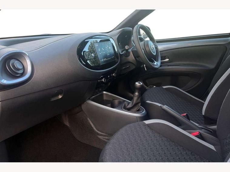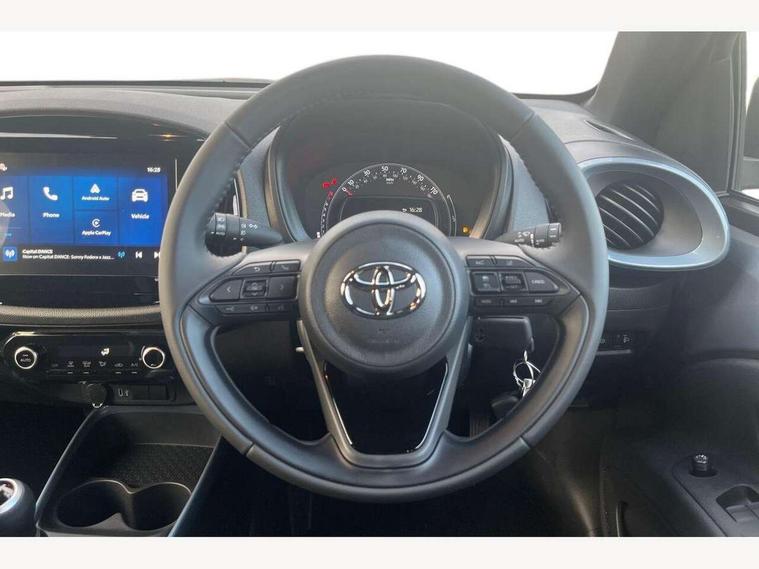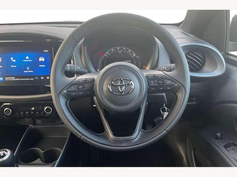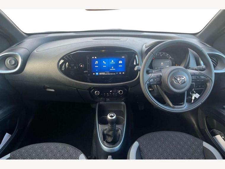 4.2" TFT colour screen, Adjustable speed limiter, Analogue speedometer, Bluetooth connectivity, Digital tachograph, Driver attention alert system, eCall emergency call system, Electric power steering, Intersection turn assist, Key reminder warning, Noise reduction kit, Pre collision system with emergency steering assist, Reversing camera with static guide lines, Smart phone integration with Apple car play/Android Auto, Speed limit display, Start and stop, Vehicle Stability Control (VSC), 4 speakers, 9" HD multimedia display touch screen with Toyota smart connect, DAB digital audio broadcast, USB connector, Auto headlights, Auto wipers, Automatic headlights cut-off, Bicycle towing hook, Black contrast roof, Black side protection mouldings, Black wheel arch mouldings, Body colour door handles, Body coloured front bumper, Boot door scuff plate, Eclipse black rear bumper, Electric heated door mirrors, Follow me home headlights, Front fog lights, Front power windows, Gloss black door mirrors, Gloss black upper front grille, Headlight cut-off reminder, LED daytime running lights, LED front light guide, LED High mounted stop lamp, Manual day/night rear view mirror, Manual headlight levelling, Pagoda roof, Power adjustable door mirrors, Power back door, Privacy glass, Projector halogen headlights, Rain sensor, Rear combination lights LED bulb type, Rear side wing doors, Rear windscreen defogger, Rear windscreen wiper, Short antenna, Variable intermittent windscreen wipers, 12v power outlet - front, 2 seat bench in 2nd row, 3 spoke leather steering wheel, 50/50 split folding rear seat, Adhesive roof headlining, Adjustable speed limiter switch on steering wheel, Audio and telephone switches on steering wheel, Auto air conditioning, Black insert on steering wheel, Black roof lining, Boot light, Centre room light, Chrome interior door handles, Chrome surround on air conditioning buttons, Clean air filter, Console box storage in body color, Fabric upholstery, Floor mats, Front and rear cup holders, Front head rest deco art, Front head restraints, Height adjustable driver seat, Intelligent adaptive cruise control switch on steering wheel, ISOFIX child restraint system on rear seats, Lane departure alert switch on steering wheel, Leather gearshift knob, Manual tilt steering wheel, Manually reclining and sliding driver seat, Manually reclining and sliding front passenger seat, Multimedia switches on steering wheel, Pollen filter, Rear door pockets, Rear head restraints, Satin silver insert on gear shift knob, Single compartment glovebox with lights, Single front passenger seat, Soft tonneau cover, Sun visors with mirror on driver and passenger side, Voice recognition switch on steering wheel, Toyota safety sense pack - Aygo X, Anti lock braking system + Electronic brake force distribution, Child safety door lock, Emergency brake light signal (EBS), Hill start assist control (HAC), Passenger airbag on/off switch, Seat belt reminder for front and rear seats, Supplement restraints system (SRS) - 6 airbags, Traction control, Tyre pressure warning system, Immobiliser, Remote power door locks, Black wheel centre caps, Tyre repair kit,