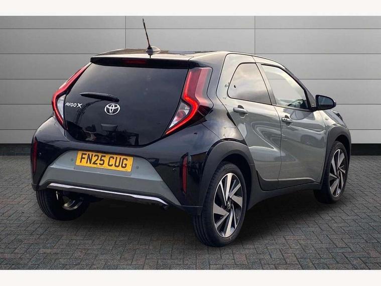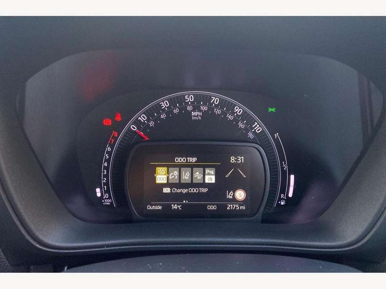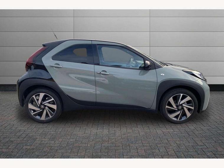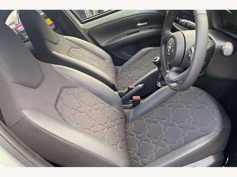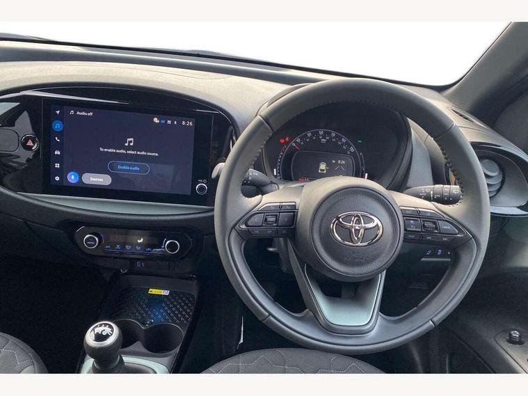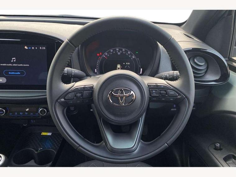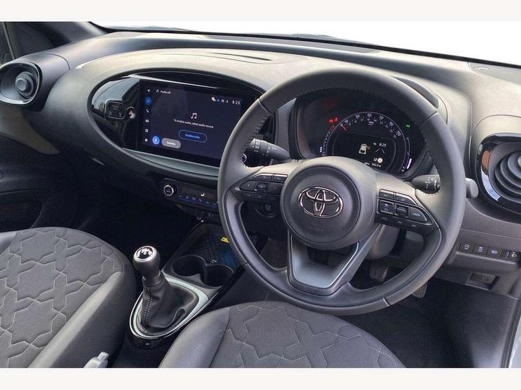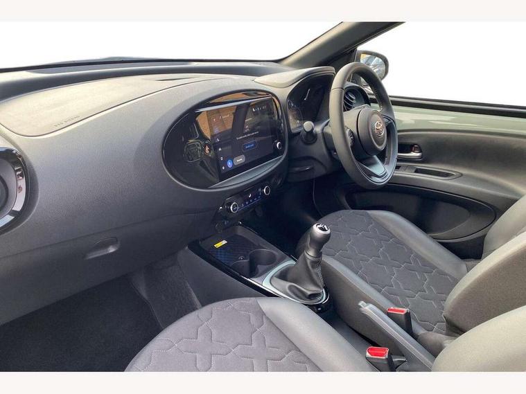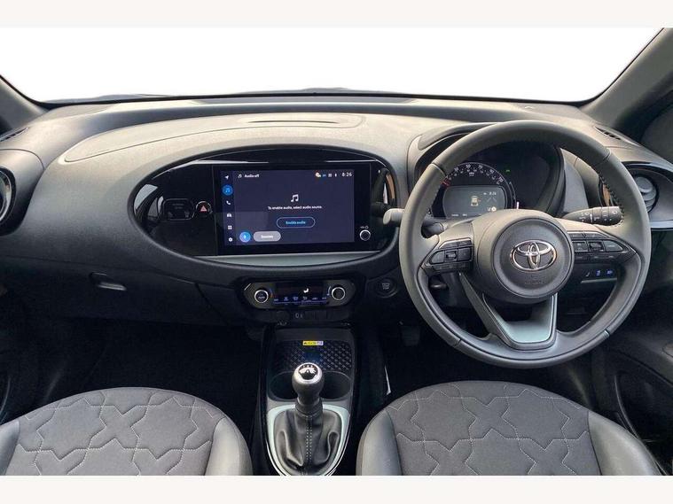 4.2" TFT colour screen, Adjustable speed limiter, Analogue speedometer, Bluetooth connectivity, Digital tachograph, Driver attention alert system, eCall emergency call system, Electric power steering, Front and rear parking sensors with auto brake, Intersection turn assist, Key reminder warning, Noise reduction kit, Pre collision system with emergency steering assist, Remote boot door release on key, Reversing camera with static guide lines, Smart entry and push button start, Smart phone integration with Apple car play/Android Auto, Speed limit display, Start and stop, Wireless charger, Vehicle Stability Control (VSC), 10.5" HD multimedia display touch screen with Toyota smart connect, 4 speakers, DAB digital audio broadcast, USB connector, Auto headlights, Auto wipers, Automatic headlights cut-off, Automatic high beam On/Off switch, Bicycle towing hook, Black contrast roof, Black fog light surrounds, Black side protection mouldings, Black wheel arch mouldings, Body colour door handles, Body coloured front bumper, Boot door scuff plate, Eclipse black rear bumper, Electric heated door mirrors, Follow me home headlights, Front and rear underruns in silver, Front fog lights, Front power windows, Gloss black door mirrors, Gloss black upper front grille, Headlight cut-off reminder, LED daytime running lights guide, LED front light guide, LED High mounted stop lamp, LED projector headlights, Manual day/night rear view mirror, Manual headlight levelling, Pagoda roof, Power adjustable door mirrors, Power back door, Privacy glass, Rain sensor, Rear combination lights LED bulb type, Rear side wing doors, Rear windscreen defogger, Rear windscreen wiper, Remote hazard lights system, Short antenna, Variable intermittent windscreen wipers, 12v power outlet - front, 2 seat bench in 2nd row, 3 spoke leather steering wheel, 50/50 split folding rear seat, Adhesive roof headlining, Adjustable speed limiter switch on steering wheel, Audio and telephone switches on steering wheel, Auto air conditioning, Black roof lining, Body colour satin anodised insert on steering wheel, Boot light, Centre room light, Chrome interior door handles, Chrome surround on air conditioning buttons, Clean air filter, Console box storage, Floor mats, Front and rear cup holders, Front head rest deco art, Front head restraints, Height adjustable driver seat, Intelligent adaptive cruise control switch on steering wheel, ISOFIX child restraint system on rear seats, Lane departure alert switch on steering wheel, Leather gearshift knob, Light blue ambient lighting in centre console, Manual tilt steering wheel, Manually reclining and sliding driver seat, Manually reclining and sliding front passenger seat, Multimedia switches on steering wheel, Partial synthetic leather upholstery, Pollen filter, Rear door pockets, Rear head restraints, Satin silver insert on gear shift knob, Single compartment glovebox with lights, Single front passenger seat, Soft tonneau cover, Sun visors with mirror on driver and passenger side, Voice recognition switch on steering wheel, Toyota safety sense pack - Aygo X, Anti lock braking system + Electronic brake force distribution, Child safety door lock, Emergency brake light signal (EBS), Hill start assist control (HAC), Passenger airbag on/off switch, Seat belt reminder for front and rear seats, Supplement restraints system (SRS) - 6 airbags, Traction control, Tyre pressure warning system, Immobiliser, Remote power door locks, Black wheel centre caps, Tyre repair kit,