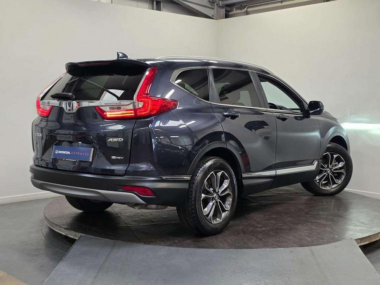 Adaptive cruise control, Agile handling assist, BLIS (Blind Spot Information System) with dual power heated blind spot mirrors, Bluetooth hands free telephone connection, E-call, Economy mode, Electric power steering, Emergency stop signalling system, Forward collision warning, Front parking sensors, Honda CONNECT with GARMIN Navigation + 7" touchscreen, DAB radio, Apple CarPlay, Android Auto, Aha app integration and internet browsing, Intelligent multi info display, Lane departure warning system, Lane keep assist system, Low speed following, Rear parking sensors, Rear view camera, Road departure mitigation, Speed limiter, Traffic sign recognition, Vehicle stability assist, 2 USB sockets in rear, 2x USB sockets in front, 9 speakers, DAB Digital radio, Dashboard centre speaker, Front tweeters, Steering wheel mounted controls, Subwoofer, Aspheric door mirrors, Auto dimming rear view mirror, Automatic headlights with dusk sensor, Body colour bumpers, Body colour door handles, Cornering light, Door mirrors tilt when reversing, Electric front windows/one touch facility, Electric rear windows + one touch facility, Electrically adjustable and heated door mirrors, Electrically retractable door mirrors, Front windscreen de-icer, High beam assist, LED daytime running lights, LED front fog lights, LED Headlights, LED rear lights, Rain sensor, Rear privacy glass, Rear side wing doors, Rear wiper, Roof rails, Shark fin roof aerial, Third brake light, Welcome home function, 3 seat bench in 2nd row, 60/40 split folding rear seat, Accessory sockets, Ambient interior lighting, AWD emblem rear, Cargo hooks, Courtesy lights, Driver's electric adjustable lumbar support, Driver/passenger front seatback pockets, Driver/passenger sunvisors with illuminated vanity mirrors, Dual zone automatic climate control, Electric lumbar adjustment on passenger's seat, Front centre armrest, Front map lights, Front passenger seat height adjust, Heated front seats, Height adjustable driver's seat, Hybrid emblem, Illuminated glovebox, Instrument panel with garnish wood film, Isofix child seat preparation, Leather steering wheel, Leather upholstery, Paddle shift controls, Rear air vents, Rear centre armrest, Rear headrests, Rear reading lights, Rear seat conversation mirror, Silver interior door handles, Single front passenger seat, Sunglasses holder with mirror, Tilt/telescopic adjustable steering wheel, Tonneau cover, Trunk light, 5 x 3 point seatbelts, ABS/EBD, Anti-whiplash front headrests, Brake assist function, Collision mitigation braking system, Deflation detection system, Driver airbag, Electronic parking brake with auto hold, Front and rear curtain airbags, Front and rear seat belts with emergency locking retractor (ELR), Front side airbags, Hill start assist, Manual child lock in rear doors, Passenger airbag deactivate switch, Honda super locks, Immobiliser, Security alarm, Smart entry + Smart start, Ultrasonic security sensor, Tyre repair kit,