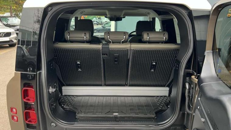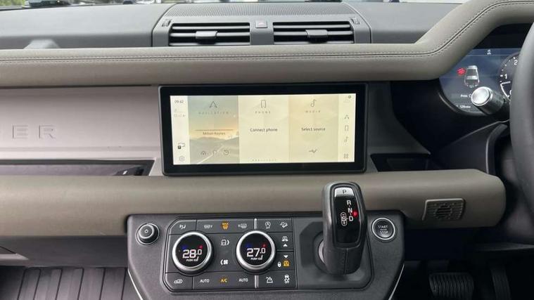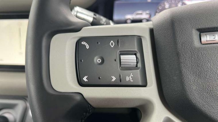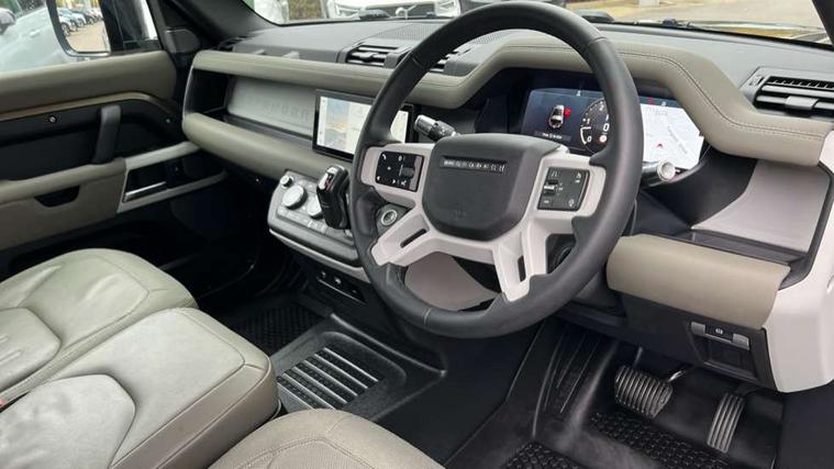 10" touch screen, 360 degree parking aid, 3D Surround Camera with 360 View, 180 Rear View, Front Traffic Detection, Forward Vehicle Guidance, Tow Hitch Assist and clear sight Ground View, Android Auto, Apple CarPlay, Assisted tailgate with soft close, Blind spot assist, Bluetooth system, Clear exit monitor, Click and go integrated base unit, Connected navigation pro, Cruise control + speed limiter, Driver condition monitor, Interactive driver display, Lane keep assist, Less CE Device Charging, PAS, Rear traffic monitor, Traffic sign recognition with adaptive speed limiter, Trip computer, Wade Sensing, Adaptive dynamics, Configurable Terrain Response, Electronic air suspension, Terrain Response, DAB Radio (Digital Audio Broadcasting), Meridian 400w sound audio system with 11 speakers and subwoofer, Pivi pro connected, Auto high beam assist, Automatic headlight levelling, Automatic headlights, ClearSight interior rear view mirror, Electric heated/power fold door mirrors with approach lights and auto dimming driver side, First Edition badge, Folding fabric roof, Front fog lights, Heated windscreen, LED tail lights, Metal tread plates with First Edition branding, Metallic paint, Premium LED headlights with signature DRL, Privacy glass, Puddle lights, Rain sensing windscreen wipers, Rear fog lights, Trailer stability assist, White contrast roof, 12 way heated electric memory front seats with 2 way manual headrests, 12V power socket in loadspace, 3 individual front seats with centre jump seat and folding front centre armrest, 40:20:40 fixed rear seats with centre armrest, Cabin lighting, Carpet mats, Electric reach + rake adjustable steering column, Grained Leather and Robust Woven Textile upholstery, Heated steering wheel, Leather gearshift, Leather wrapped steering wheel with PU DAB, Light oyster morzine headlining, Loadspace Hook, Multifunction steering wheel, Rear headrests, Rear ISOFIX, Sunvisors with illuminated vanity mirrors, Twin front cupholders with cover, Core exterior pack - Defender, Non-smoker package, Online pack with data plan - Defender, 5 x 3 point seatbelts, 6 x 3 point seatbelts, ABS, Cross car beam in Light Grey Powder Coat, Driver and passenger airbags, Emergency braking, ESP + traction control, Hill launch assist, Remote for (e-Call, Optimised assistance call, InControl app, Climate, beep and flash and door), TPMS (Tyre pressure monitoring system), Alarm, Immobiliser, Intrusion sensor, Keyless entry and go, Locking wheel nuts,