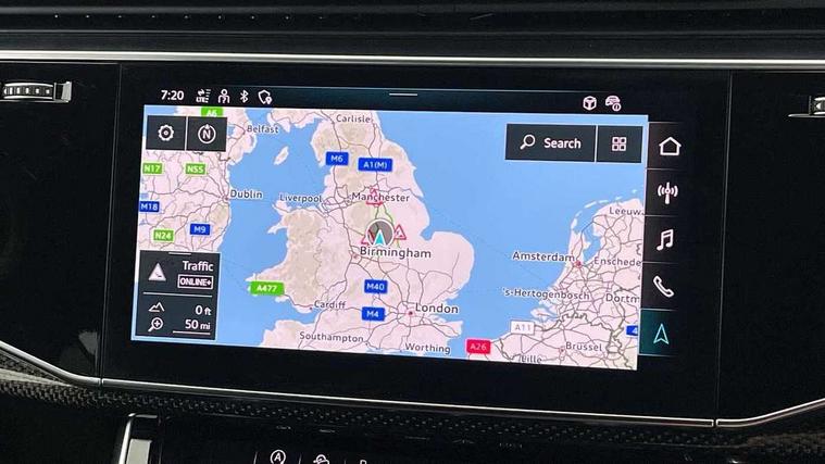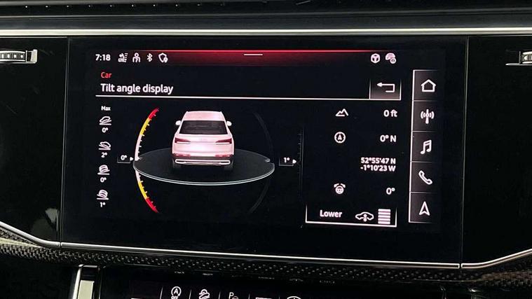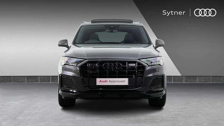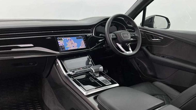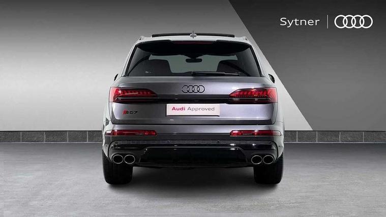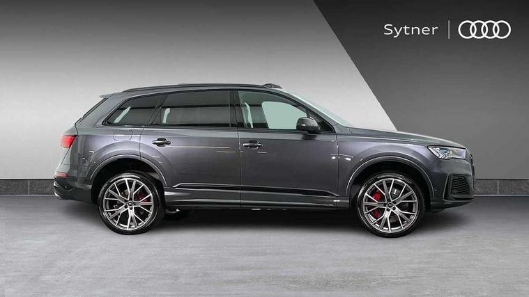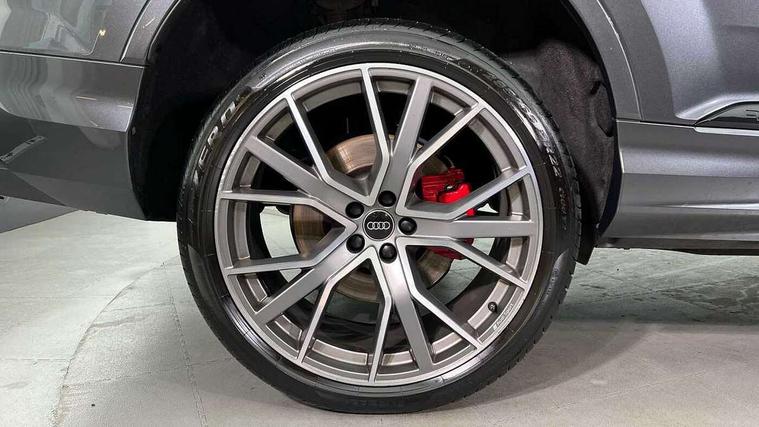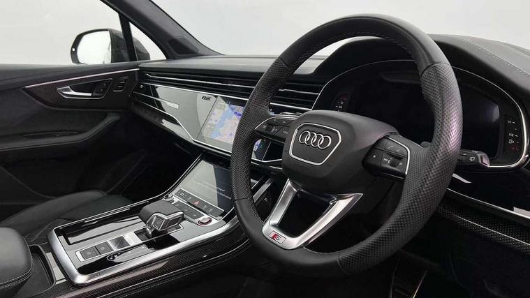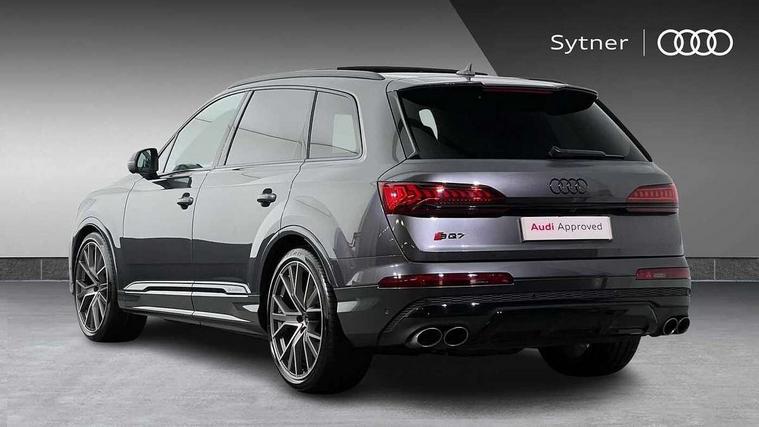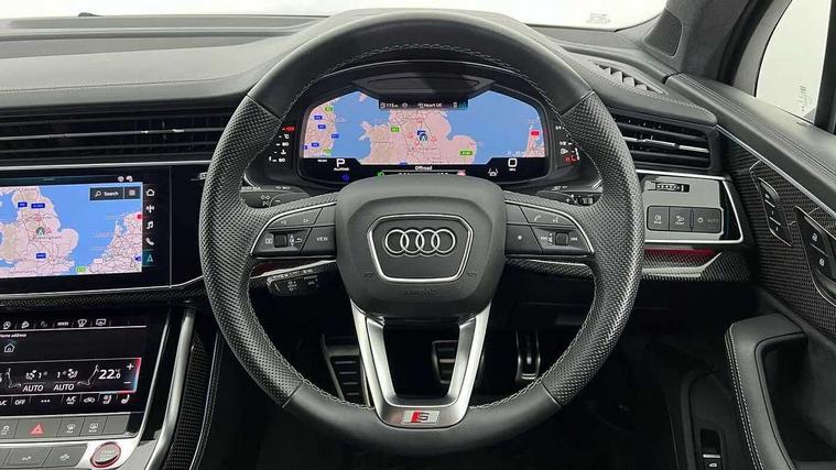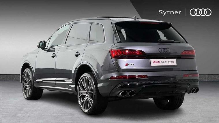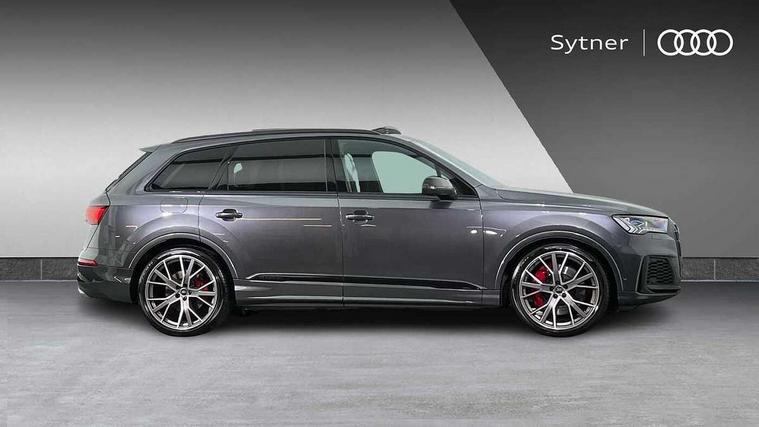 360 degree camera, Audi connect safety and service (e-call), Audi connect with Amazon Alexa Integration, Audi drive select (Auto, Comfort, Dynamic, Efficiency, Individual, Off-road and All road), Audi phone box light with wireless charging, Audi virtual cockpit plus, Bluetooth interface, Camera based traffic sign recognition, Head up Display, MMI navigation plus with MMI touch screens includes 10.1" and 8.6" screens with haptic feedback, Natural voice recognition, PAS, Power door closure, Power operated tailgate, Smartphone interface includes wireless Apple carplay/Android Auto, Start/stop system, 48V Mild hybrid technology, 85 litre fuel tank, Electromechanical active roll stabilisation, Quattro all wheel drive with self locking centre differential, Quattro with sport differential, S specific adaptive air sport suspension, Audi music interface - front 2 USB-C ports with charger and data functions, Bang + Olufsen premium sound system, DAB digital radio module, 3rd brake light, Adaptive windscreen wipers with integrated washer jets, Audi Beam uses LEDs to project Audi logo onto the ground as you exit your SQ7, Audi HD matrix LED headlights with Audi laser light + dynamic front and rear indicators, Auto dimming frameless rear view mirror, Black roof rails, Electrically adj heated/folding + automatically dimming exterior mirrors with memory + automatic kerb side function for passenger side exterior mirror, Gloss black finish for exterior Audi rings and SQ7 logos, Headlight washers, Heat insulating glass in windshield, Integrated LED indications in door mirrors, LED daytime running lights, LED rear tail lights, Privacy glass - dark tinted rear and rear side windows from B-pillar backwards, Rear side wing doors, Rear wiper, S specific rear bumper with 4 exhaust pipes, 2 seat bench in 3rd row, 3 seat bench in 2nd row, 3 spoke heated leather multi-function sport steering including paddle shift, 4 zone deluxe automatic climate control, 7 seat layout with ISOFIX points for the front passenger seat and rear passenger seat, Ambient lighting in surfaces and edges, Black dinamica headlining, Comfort front centre armrest, Contour lighting accentuates lines and joint contours, Double sun visors with illuminated vanity mirrors, Electric adjustable front seats/backrest bolsters, lumbar support, memory functionality, Electric steering wheel adjustment, Folding rear seats, Front head restraints, Front/rear floor mats, Heated front seats, Illuminated door sill trims with S logo, LED glare-free lights, Luggage compartment sill protection in stainless steel, Manual sunblind for the rear side windows and manual sunblind for the rear window, Rear head restraints, Seat ventilation and massage function in the front, Single front passenger seat, Stainless steel pedals, Valcona leather upholstery with front super sport seat S embossed logo, Anthracite black styling pack - Q7/SQ7, City assist pack - Q7, Extended leather pack - SQ7, Technology Pack Pro S - SQ7, Tour pack with Adaptive cruise assist - Q7, 3 point seatbelts on all rear seats, Audi pre sense front, Child locks on rear doors, Driver and front passenger, front side and curtain airbags, Electromechanical parking brake, Electronic Stabilisation Control (ESC) including ABS, ASR and EDL, Extended pedestrian protection measures, Hill hold assist, Seatbelt monitoring, Tyre pressure loss indicator, Warning triangle and first aid kit, Anti theft alarm, Anti-theft wheel bolts and wheel loosening detection, Remote central locking, 22" 5-V Spoke aluminium star design audi sport matt grey with gloss turned finish alloy wheels, Tool kit, Tyre repair kit,
