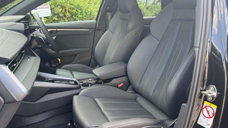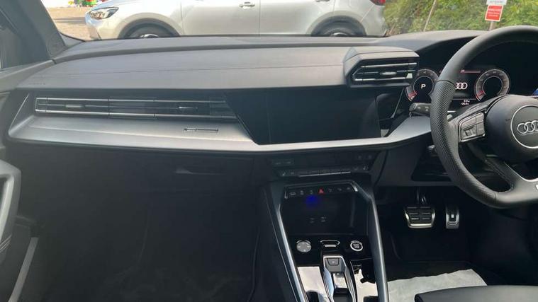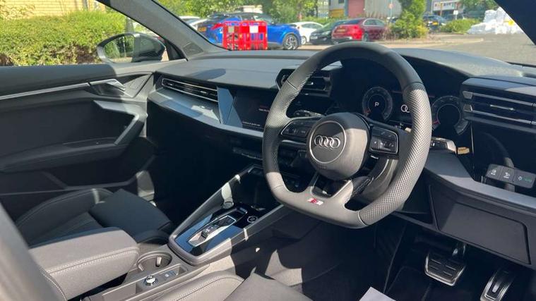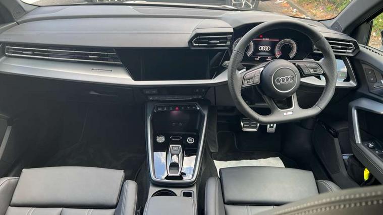 Adjustable speed limiter, Audi drive select, Audi smartphone interface with app store includes wireless Apple carplay, Android auto and Amazon alexa integration, Audi virtual cockpit plus - 12.3" full HD resolution dynamic digital instrument cluster, Automatic start/stop system with recuperation, Bluetooth interface, Camera based traffic sign recognition, Collision avoidance assistant, Cruise control, Distraction and Fatigue warning, e-Call (emergency call), Electromechanical power speed sensitive steering, Emergency assist, Lane departure warning system, MMI Navigation Plus with high resolution 10.1" colour touch screen display, Park Assist with parking system Plus, Service indicator, Trip computer, Voice control system with natural language interaction, Sports suspension, Audi Phonebox light with wireless charging, Audi sound system - 10 loudspeakers including centre loudspeaker and subwoofer, DAB Digital radio, USB ports with charging function in the rear, Acoustic glass windscreen, All weather light, Aluminium window trim, Auto dimming frameless rear view mirror, Automatic dynamic range control, Body colour exterior mirrors, Chrome exhaust tailpipes, Dipped beam, main beam, position light and turning light, Electrically adjustable/heated/folding/auto dimming door mirrors with integrated LED indications + kerb view function for passenger side, Exterior model badging, Front and rear side air inlets in grained matt black with dark liquid chrome frame, Front electric windows, Front radiator grill in high gloss dark chrome, Heat insulating glass windscreen, Illuminated door sills with aluminium inserts at the front with S logo, Intersection light, LED 3rd brake light, LED brake lights, LED daytime running x3, LED headlights with LED rear lights and dynamic rear indicators, LED rear number plate lights, LED reverse light, LED tail lights, Light and rain sensors, Manoeuvring light, Motorway light, Privacy glass - dark tinted rear window, rear door and side windows, Rear boot, Rear diffuser and grill in grained matt black with inlay in dark liquid chrome, Rear electric windows, Rear side wing doors, S line bumpers, Side S line emblems on front wings, Side sill trim in dark liquid chrome, Static Cornering lights, 12V socket and storage compartment in front centre console, 3 seat bench in 2nd row, 3 spoke flat bottomed leather multifunction sport steering wheel with gear shift paddles, 3-zone deluxe automatic air conditioning, 4 way electrically adjustable lumbar support for driver and front passenger, 40/20/40 split folding rear seat bench, Black cloth headlining, Black front and rear floor mats, Front and rear centre armrest in artificial leather with contrasting stitching on armrests and instrument panel, Front and rear headrests, Heated front seats, Height and reach adjustable steering wheel, Manual boot compartment lid, Manually adjustable front seats, Rear centre armrest with cupholder, S badging on the steering wheel, Seat side bolsters, Single front passenger seat, Stainless steel pedals and front footrest in black, Twin leather upholstery with front sports seats S embossed logo, Aluminium interior elements pack - A3, Multi-coloured LED interior lighting package with Multi-coloured contour lighting of instrument panel - A3, 3x3 point rear seat belts, Driver and front passenger airbag with passenger airbag deactivation, Electronic Stabilisation Control (ESC) including ABS, ASR and EDL, First aid kit with warning triangle and 2 safety vests, Front side airbags with head airbags and interaction airbag, Hill hold assist, Pre-sense front with pedestrian and cyclist detection, Seatbelt monitoring, Tyre pressure loss indicator, Anti theft alarm, Anti-theft wheel bolts, Electronically operated child locks, Immobiliser, Remote central locking with safelock, Black dashboard, Inlay in dark aluminium spectrum,