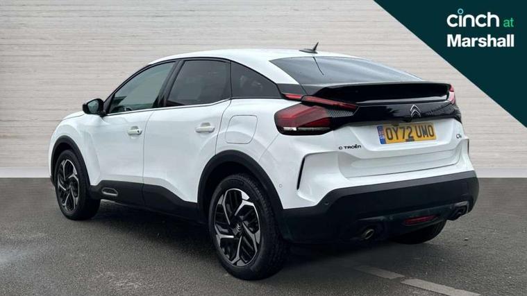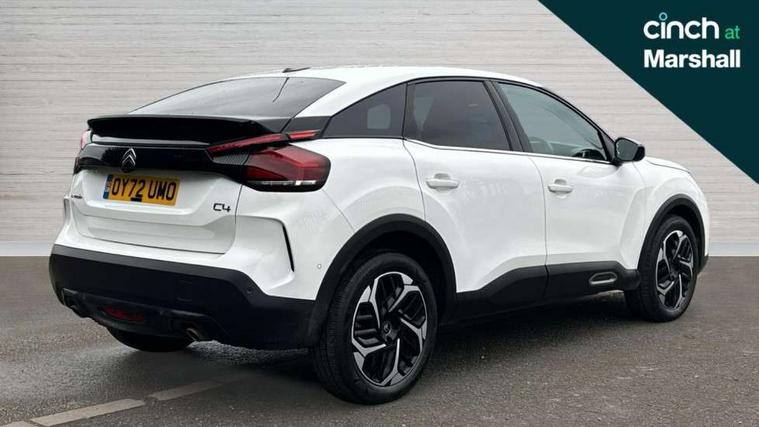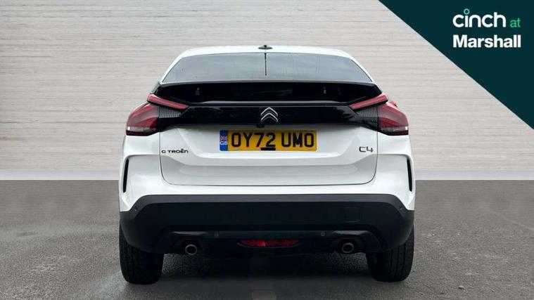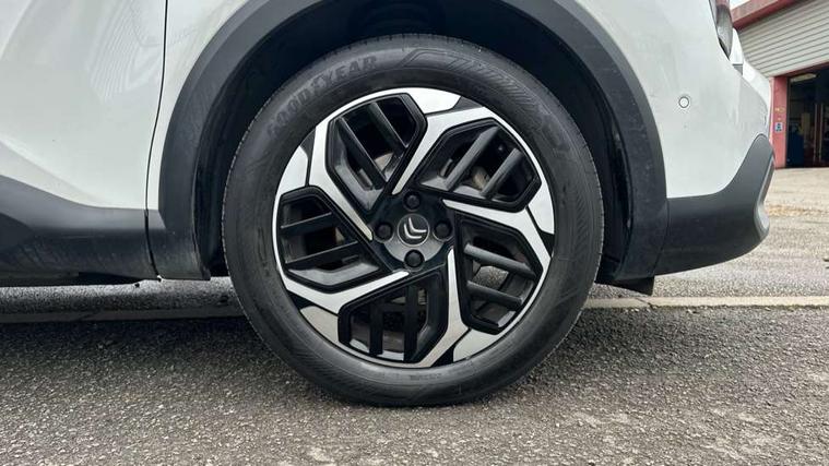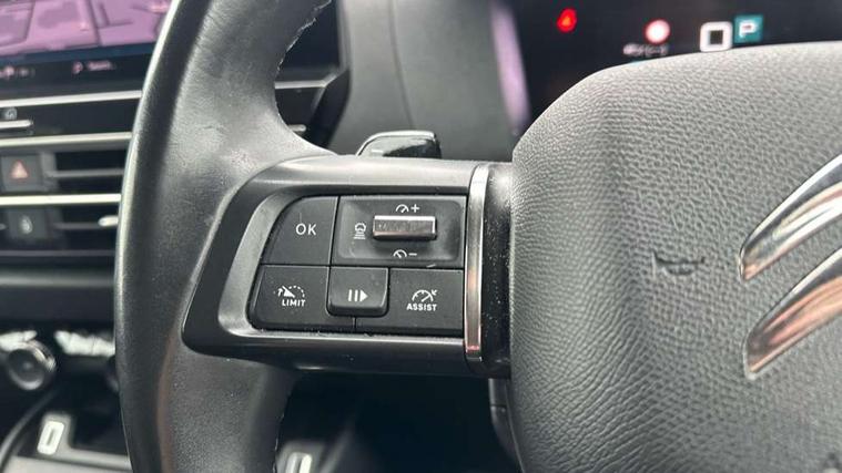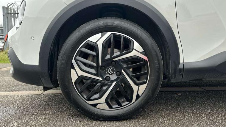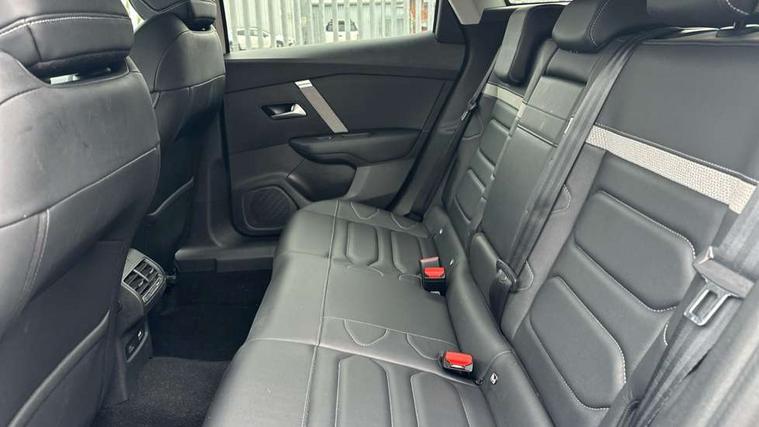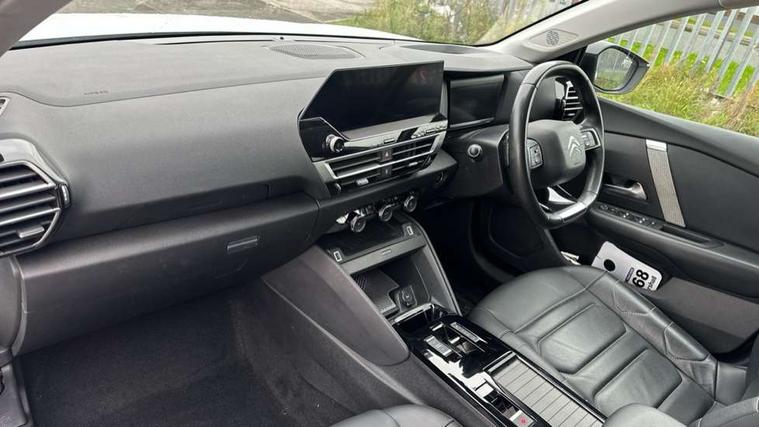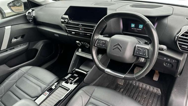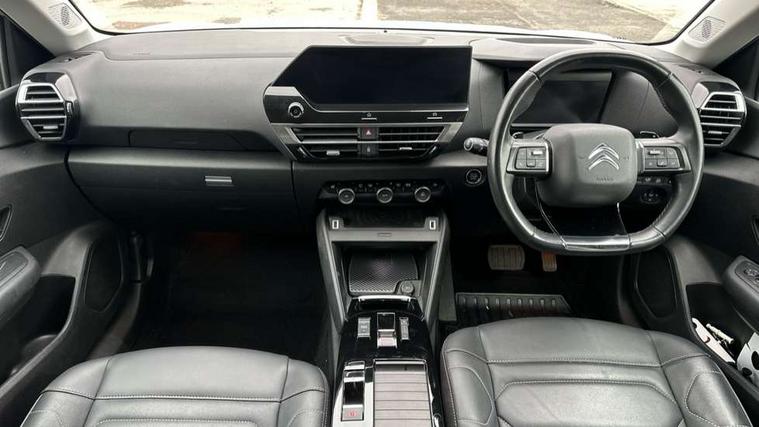 10" high resolution touchscreen user interface, controlling media, connectivity and vehicle settings, 5.5 inch backlit full TFT driver's instrument cluster with LED ambient lighting, Active blind spot detection, Apple car play and Android auto, Citroen connect box emergency and assistance system, Citroen connect nav with real time traffic and speedcam, Driver's head-up display, Electronic Power Steering (EPS), In-crash braking, Speed limiter, Tailgate, Voice commands, Wireless smartphone charging, Advanced comfort suspension - double hydraulic stops on front suspension and single on rear suspension, Auxiliary input socket, Bluetooth telephone and audio streaming, Citroen Hifi system with 1 speaker in dashboard centre, 4 woofers in doors, 2 tweeters in pillars and 1 subwoofer, DAB Digital radio, 3rd brake light, Body colour bumpers, Body colour door handles, Body colour painted external rear view mirrors, Body coloured door mirrors, Boot spoiler, Dark tinted rear windows and side windows with chrome detail, Electrically heated, folding and adjustable external rear view mirrors with courtesy lighting, Electrochrome interior rear-view mirror with automatic day-night switching, Front and rear electric windows, Gloss black rear skirt, Intelligent beam headlights, LED daytime running lights in V signature, LED front fog lamps with static cornering function, LED front headlamps, Rain sensing automatic front windscreen wipers, Rear side wing doors, Rear wiper, Roof aerial, Welcome and goodbye lighting, 12V power outlet, 1x USB Type-C socket & data connection, 1x USB Type-A socket at 1st row + 1x USB Type-A socket , 1x USB Type-C socket in 2nd row, 3 rear headrests, 3 seat bench in 2nd row, Boot light, Dashboard tray in front cabin, Deluxe leather steering wheel with two command blocks, Driver and passenger sunvisors with illuminated vanity mirrors, Dual zone automatic air conditioning, Electrically heated front seats, Fitted carpet mats, Front and rear LED interior lighting, Front head restraints, Height adjustable front passenger seat, Height and reach adjustable steering wheel, Map pockets in rear of front seats, Raised centre console with armrest and two cup holders, Rear central folding armrest with cupholders and ski hatch, Single front passenger seat, Split folding rear seats, Two position boot floor, High level acoustic insulation pack - C4/C4 X/e-C4 X, Hype black interior ambience with Siena leather and leather effect textile seats pack - C4 Shine plus/e-series, Safety plus pack with highway driver assist - C4/C4 X/e-C4 X, 3x3 point rear seatbelts, ABS, Driver and front passenger airbags, Electric parking brake, ESP, Front seatbelt pretensioners, Hill start assist, Manual child lock in second row, Manual deactivation of front passenger airbag, Post collision safety brake, Row 1 and 2 curtain airbags, Row 1 side thorax airbags, Seatbelt unfastened on the move warning, Tyre underinflation detection, Anti-theft alarm (volumetric protection), Immobiliser, Keyless entry and start, Remote locking with deadlocks, 18" Bi-tone diamond-cut aeroblade alloy wheels with anti-theft locking wheel nuts, Puncture repair kit with compressor,
