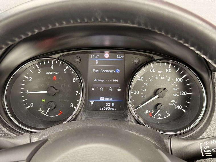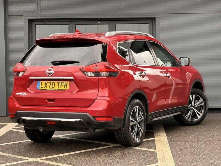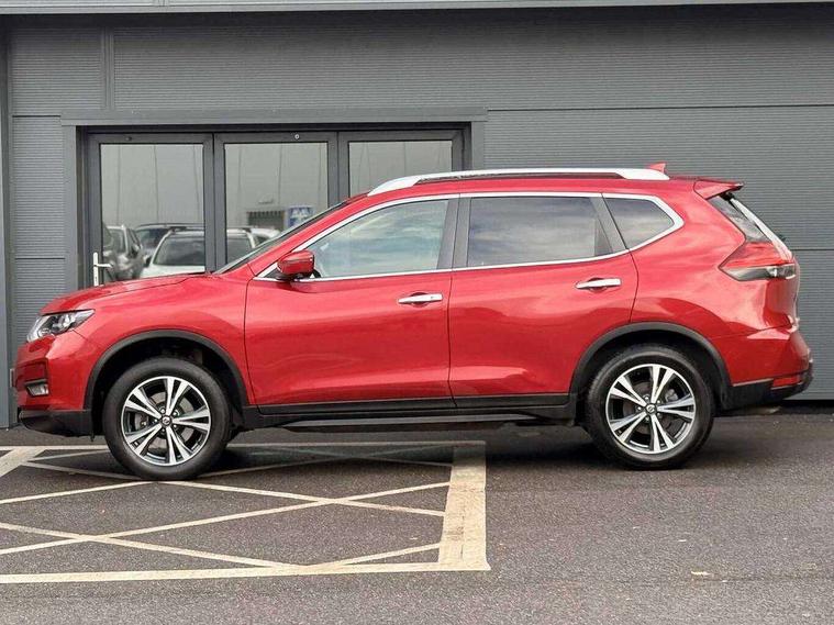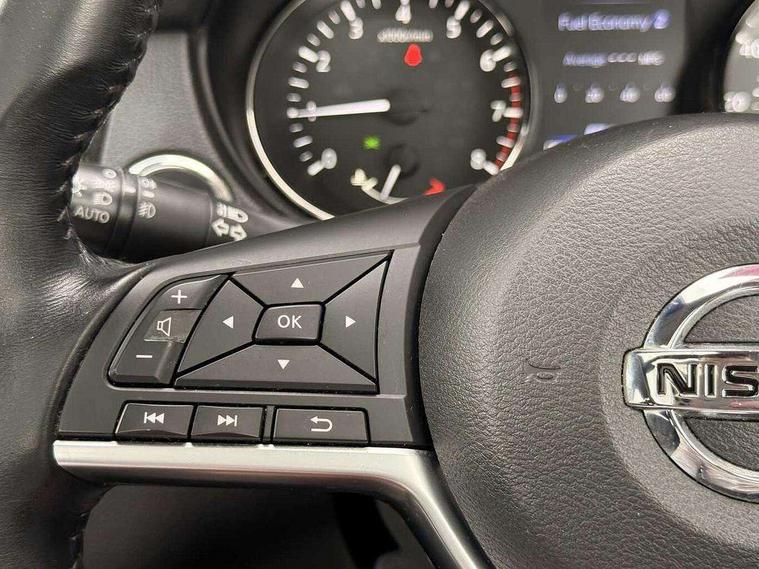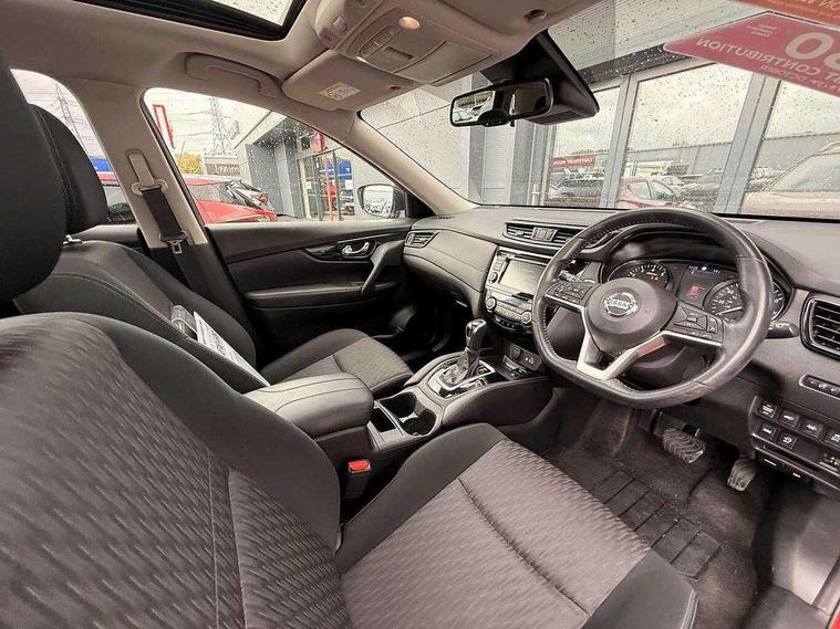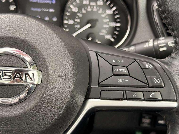 5" TFT driver information centre, Automatic tailgate opening, Bluetooth phone integration system, Cruise control + speed limiter, Front and rear parking sensors, Intelligent around view monitor, Lane departure warning system, Nissan connect evo 7" touchscreen navigation and entertainment system with Android auto, Apple car play, Tomtom maps and Live traffic, PAS, Push button start, Traffic sign recognition, Trip computer, Nissan chassis control (intelligent ride control, intelligent trace control, intelligent engine brake), 6 speakers, DAB Digital radio, Radio/CD, Rear USB port, Smartphone apps, Steering wheel mounted audio controls, USB/aux input socket, Anti dazzle rear view mirror, Automatic headlights, Automatic rain sensing wipers, Black honeycomb front grille, Body colour door mirrors, Chrome door handles, Chrome window surround, Electric folding door mirrors, Electric heated door mirrors, Front and rear electric windows, Front fog lights, Halogen headlights, LED daytime running lights, Panoramic sunroof with one touch shade, Rear privacy glass, Satin silver roof rails, Shark fin roof aerial, 3 rear headrests, 60/40 split rear bench seat, Centre console storage box/armrest, Cloth upholstery, Configurable luggage board system, Driver's manual adjustable lumbar support, Dual zone climate control, Front and rear door pockets with bottle holders, Front cupholders, Front/rear armrests, Height adjustable front headrests, Individual rear reading lights, Isofix child seat attachment, Leather D shaped steering wheel, Leather steering wheel and gear knob, Pollen filter, Tilt/telescopic adjustable steering wheel, 3 point seatbelts on all seats, 6 airbags - Driver, front passenger, curtain and side airbags, ABS, Child locks on rear doors, EBD + Brake Assist, Electric parking brake, ESP + traction control, Intelligent emergency braking with pedestrian recognition, Seatbelt warning, Tyre pressure monitoring system, Immobiliser, Intelligent Key, Remote central locking, Thatcham Cat.1 alarm, Full size spare wheel,