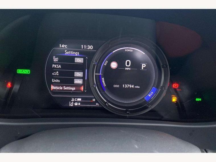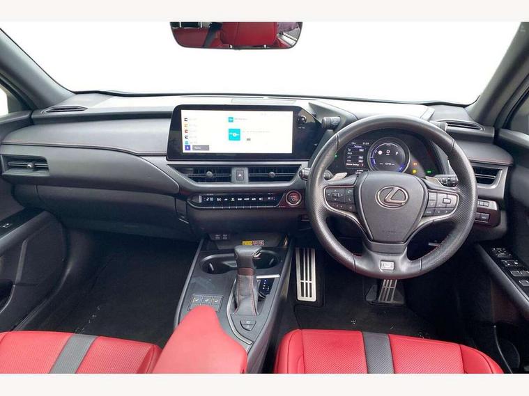 4 driving modes EV/Eco/Normal/Sport, 7" Lexus media display, 8" LFA inspired TFT meters with movable meter ring, Analogue clock with GPS function, Apple car play/Android Auto, Compatible mobile phone bluetooth with audio streaming, E-call, Electric power steering (EPS) with speed sensitive features, Front and rear parking sensor with intelligent clearance sonar, Lane change flasher function, Lexus link connected services, Lexus navigation system, Lexus safety systems + includes dynamic radar cruise control, pre collision system day and night, lane tracing assist, road sign assist, Push button start, Remote touch interface, Reversing camera with back guide lines, Trip computer, F Sport suspension tuning and rear performance dampers, Vehicle Dynamics Integrated Management (VDIM), Vehicle Stability Control (VSC), 2 front USB and 2 rear USB charging points, 6 speakers, AM/FM and DAB radio, AUX socket with VTR compatibility, CD player, Acoustic windscreen, Aero stabilising arch mouldings, Aero stabilising rear lights, Aero ventilated wheels, Aluminium roof rails, Auto dimming interior rear view mirror, Bi-LED (low and high beam) headlights with Auto High Beam (AHB), Black roof drip mouldings, Body adhesive, laser screw welding and laser brazed roof structure, Body coloured bumpers, Colour coded wheel arches, Electric adjustable/heated door mirrors, F SPORT exterior styling consists of black Mesh front grille, enhanced side rockers, metallic coated front bumper and F SPORT badging, Front and rear one touch power windows, with anti-jam protection, Headlight cleaners, LED cornering headlights, LED daytime running lights, LED front and rear fog lights, LED tail lights, LED third brake light, Privacy glass, rear doors and tailgate, Rain sensor windscreen wipers, Rear side wing doors, Rear wiper, Shark fin roof aerial, Single hidden exhaust pipe, Towing preparation, Variable front intermittent wipers, 12V accessory port centre console and luggage compartment, 2 cup holders in the front and rear centre console, 2 way electrical lumbar adjustment for driver, 2 x folding shopping bag hooks in boot, 2 x sun visors with vanity mirror and lamp, 3 seat bench in 2nd row, 4 x tie down hooks in the boot, 5 headrests, 60/40 split folding rear seat, 8 way driver/passenger electrically adjustable front seats, Active sound control, Card holder installed in driver and passengers sun visors, Centre armrest with storage, Driver and passenger door pocket, Dual zone electronic climate control + Nano-E humidity sensor, F Sport aluminium sports pedals, F SPORT dimpled leather gear lever, F SPORT front seat headrest adjustable forwards and backwards, F Sport interior styling, F Sport leather steering wheel with paddle shifts, Fabric/Tahara leather upholstery, Glovebox, Heated steering wheel, Illuminated entry system, LED interior illumination, Map pockets in the rear of passenger's front seat, Rear air vents with 2 USB chargers, Rear armrest with 2 cupholders, Single front passenger seat, Storage tray under audio panel, Textile carpet mats, Tilt/reach adjustable steering column, Under deck storage, Under desk side storage, 2 x Isofix child rear seat restraints, 3x3 point rear seatbelts, Anti-lock braking system (ABS), BAS (Brake Assist System), Driver and front passenger 2 stage airbag, Driver and front passenger knee airbag, Driver/front passenger side airbags, EBD - Electronic brakeforce distribution, ECB (Electronically Controlled Brake System), Electric child locks, Electric parking brake, Front adjustable seatbelt anchor points, Front and rear curtain shield airbags, Front outer seatbelt+pre-tensioners, force limiter+tension reduction: 3-point with active safety link to PCS, Hill start assist control (HAC), Passenger airbag cut-off device, Rear outer seatbelt+pre-tensioners, force limiter+tension reduction: 3-point with active safety link to PCS, Centre belt w/o pre tensioner+force limiter, Secondary Collision Brake (SCB), TRC (Traction Control), Tyre pressure warning, 2 x remote key fobs, Anti theft system : Alarm instruction sensor, glass breakage sensor and engine immobiliser, Locking wheel nuts, Remote central door locking, Speed sensitive auto door locking, Two motion door lock with double lock, VIN Window etching, 18" F Sport alloy wheels with run flat tyres,