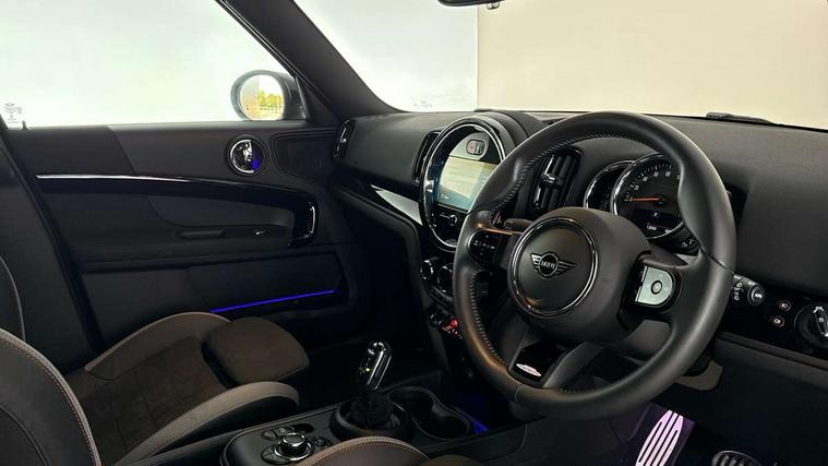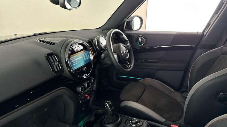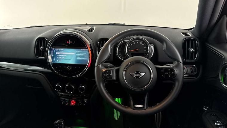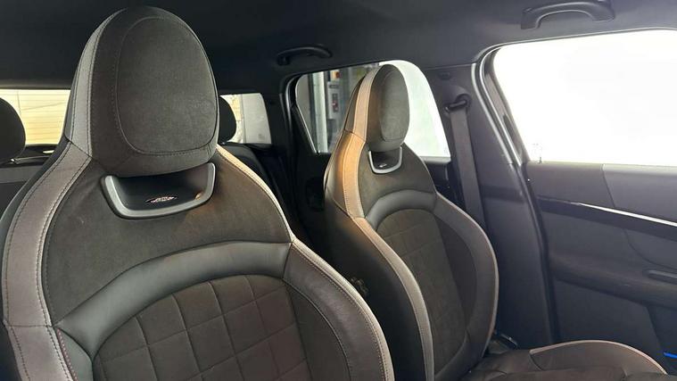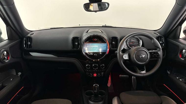 Active Guard incl speed limiting and lane departure functions with auto steering, and front collision warning with brake intervention, Automatic start/stop function with brake energy recuperation, Compatible mobile phone bluetooth with audio streaming, Cruise control with brake assist, Electro-mechanical speed dependant steering assistance, Instrument cluster, MINI Driving Modes - centre toggle switch to control driving setting (sport, mid and green), Mini E-call, On board computer, Rear parking distance control, 51 Litre fuel tank, Double Vanos system, Fully variable valve control, High precision injection, Performance Control, Steptronic transmission with double clutch, FM tuner and DAB digital radio, 3rd brake light, Body colour fuel filler cap, Day time driving lights, Door sill strips, Dynamic brake lights, Electric windows, Heated rear window, Heated windscreen washer jets, John Cooper Works - aerodynamic kit (front and rear apron, spoiler), front and rear sport bumpers and part-painted side sills with door sill finishers, John Cooper Works Logo, LED fog lights, LED Headlights, Model logo, Model logo on Tailgate, Rain sensor with auto headlights, Rear fog lights, Rear side wing doors, Rear window wiper, Side scuttle panel with integrated indicator, Split rear doors, Sun/heat protection glass, White indicator lenses, 12V socket in centre console, 3 seat bench in 2nd row, 360L luggage compartment capacity, 4 lashing eyes in luggage compartment, 40:20:40 split folding rear seats, Anthracite headlining with grab handles and clothes hooks, Chrome interior highlights, Colour line - Carbon black, Cupholders, English handbook, Floor mats, Front headrests, Glove compartment, Height and length steering column adjustment, Interior lighting with 12 basic colours selectable via toggle switch in roof, Isofix rear child seat preparation, LED reading lights, vanity mirror lights, front foot well light and spotlight on front seats, Manual air conditioning, Mini John Cooper Works leather gearshift lever and handbrake gaiters, Multifunction steering wheel, Nappa leather steering wheel with MINI Yours logo, Rear headrests, Single front passenger seat, Stainless steel pedals and foot rest, Storage compartments in doors, Sunvisors with vanity mirrors, Tool kit, Excitement pack - Countryman, Navigation pack - Countryman, Piano black exterior pack - Countryman, 2 tone horn, 3 point seatbelts on all seats, 6 Airbags - front, side, head and seat belt tensioners, Anti-lock braking system (ABS), DSC - Dynamic Stability Control, Electronic handbrake, Front and rear disc brakes, Hill start assist, Manual rear child locks, Tyre pressure monitoring system, Alarm system with tilt sensor, monitoring doors, bonnet interior and tailgate, Auto drive away locking, Deadlocking function, Electronic vehicle immobiliser, Locking wheel bolts, Start/stop toggle with keyless go, Piano black JCW interior trim,