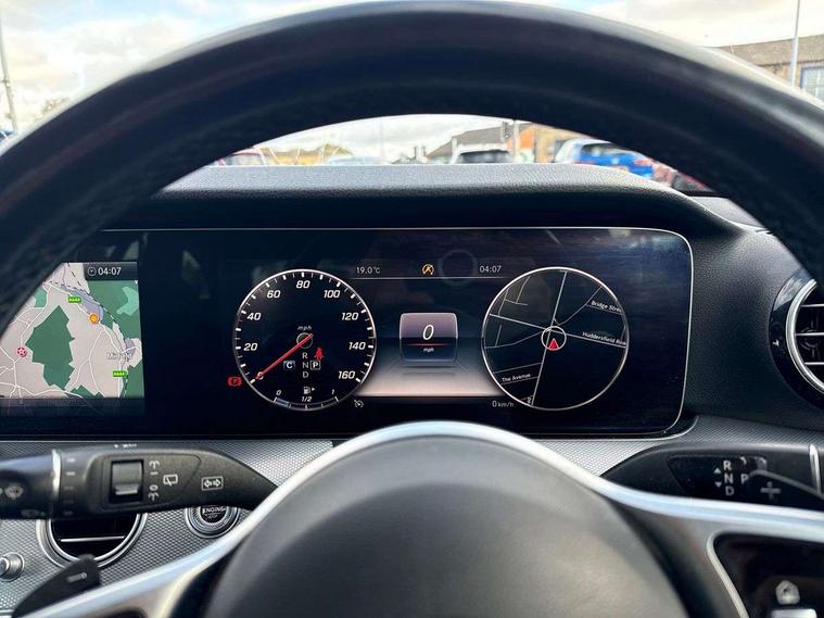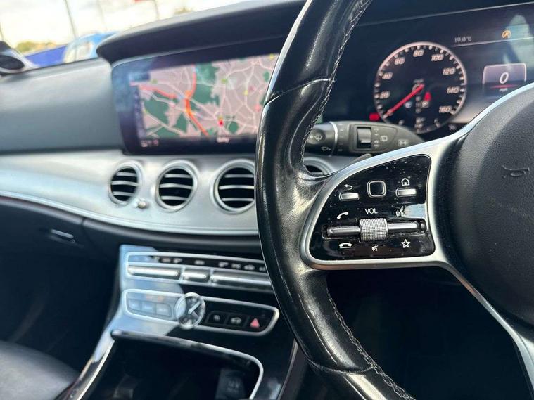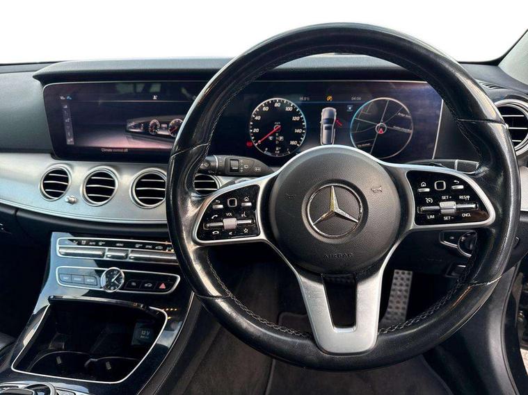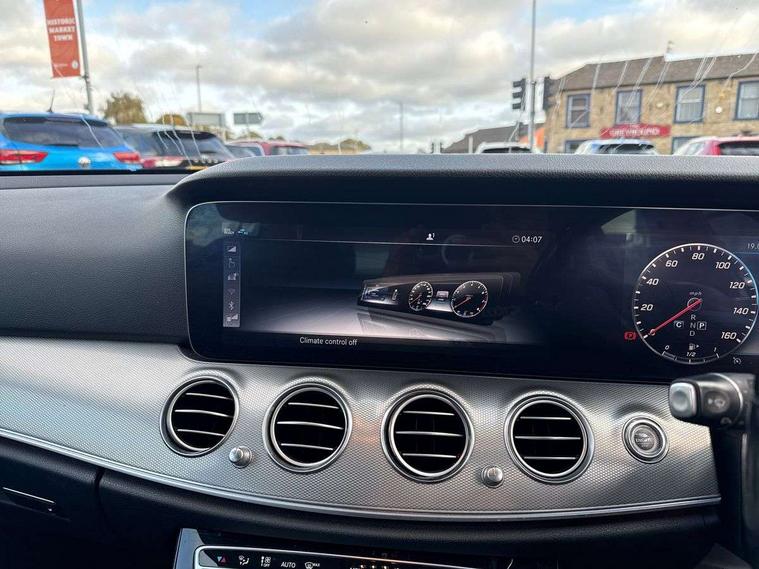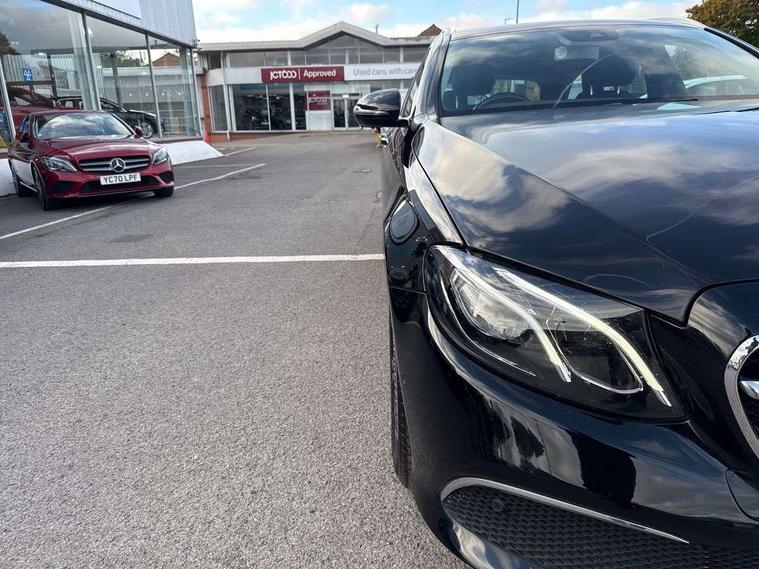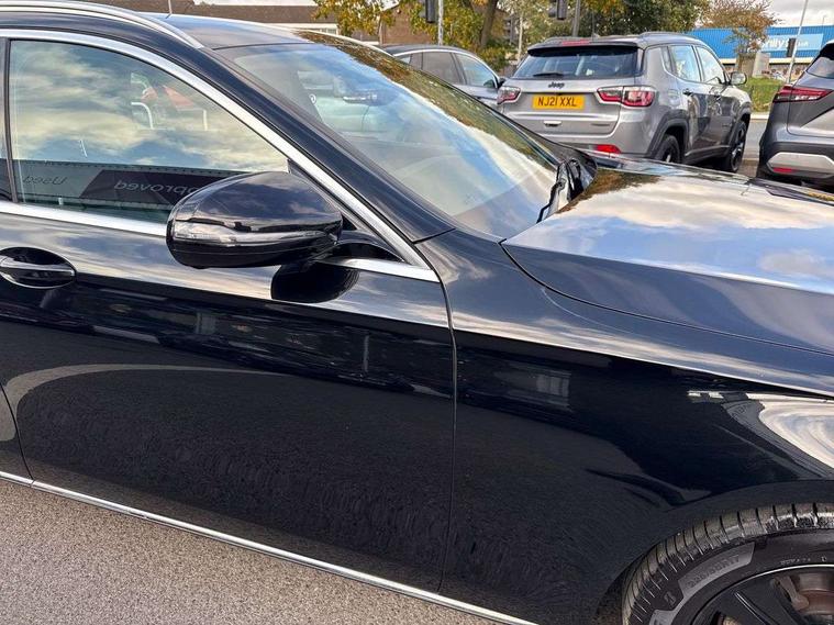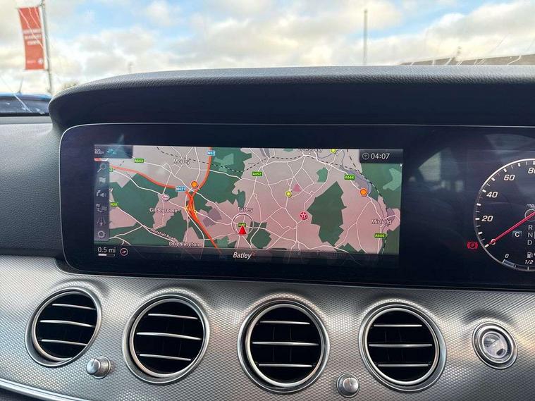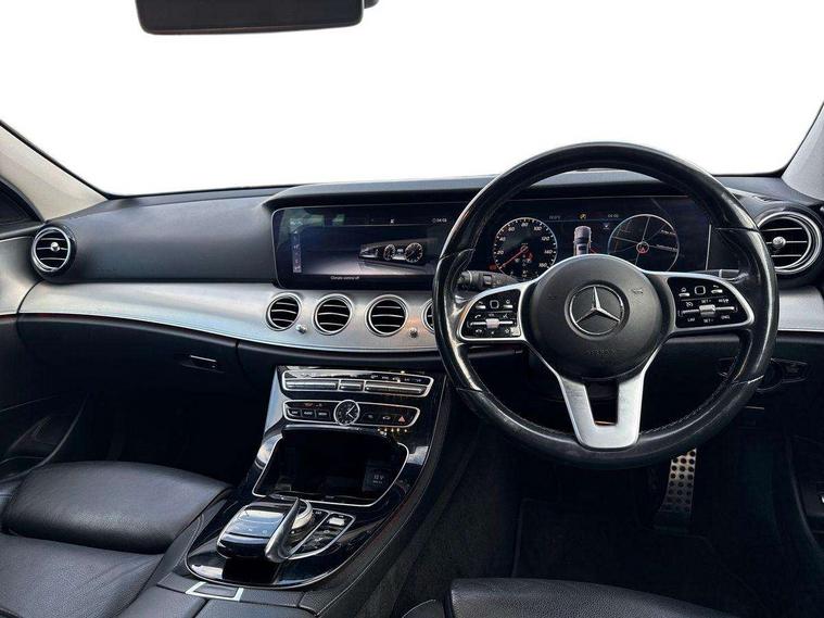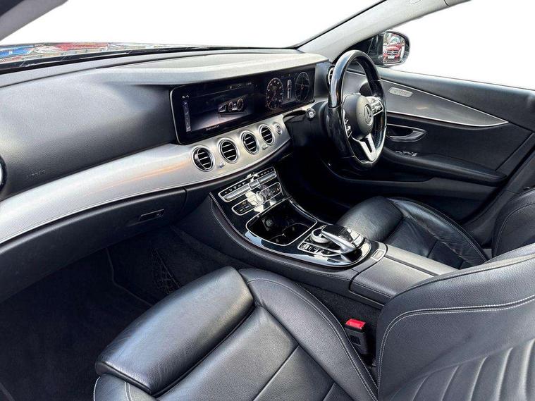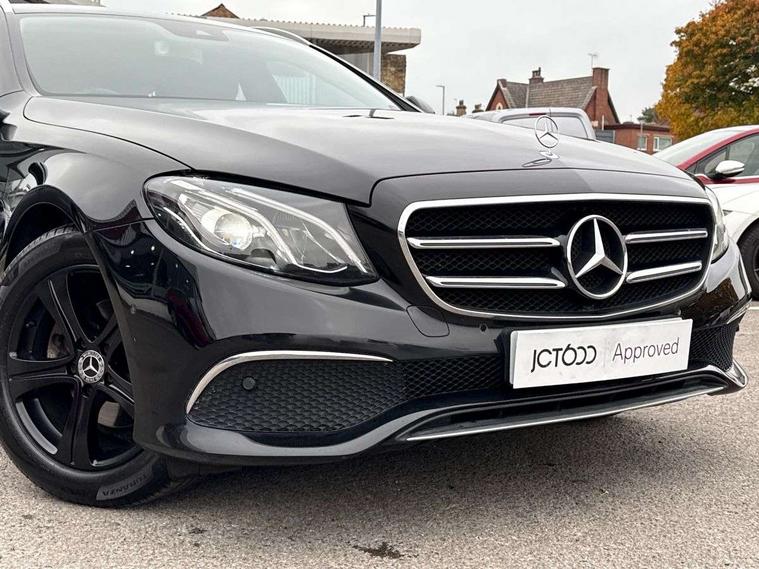 8.4" high resolution display, Active parking assist and reversing camera, Analogue clock, Attention assist, Boot release from drivers seat, Brake wear warning light, DYNAMIC SELECT with a choice of driving modes (ECO, Comfort, Sport, Sport+ and Individual), Easy-pack tailgate - Powered opening/closing automatically, Instrument cluster - two tube design round dials and 8.4" TFT multifunction display, Mercedes connect me, Multi function trip computer, Outside temperature display, Park assist pilot with front and rear park assist, Remote boot release, Service indicator (ASSYST), Speed sensitive power steering, Stop/start system, 2 USB ports in centre console, Aerial integrated in rear window, Audio 20 with USB, control wheel and Media Interface with Bluetooth interface and hands-free function, DAB Digital radio, Steering wheel mounted audio controls, Adaptive brake lights, Body colour bumpers, Body colour door handles, Body colour door mirrors, Chrome roof rails, Electric windows with one touch opening/closing and obstruction sensors, Electrically adjustable and heated door mirrors, LED Headlights, LED High Performance headlamps including integral LED daytime running lamps, LED rear lights, Polished aluminium upper window surround, Polished aluminium waistline, Radiator grille with integral star and 2 louvres in matt iridium silver with chrome trim, Rain sensor windscreen wipers, Rear wiper, Visible twin exhaust tailpipe in bumper, 3 spoke nappa leather steering wheel, 40:20:40 split folding rear seat, Ambient lighting, Auto Mercedes-Benz child seat recognition sensor, Chrome door pins, Electric seat back adjustment, Folding shopping box, Four way partially front electric seat adjustment, Front and rear door pockets, Front centre armrest with storage compartment, Front door sills with Mercedes benz lettering, Glasses compartment in overhead control panel, Head restraints for driver and front passenger (four-way adjustability)and in rear (two-way), Heated front seats, Interior rear light/integral reading lights, Isofix rear child seat fastenings, Leather upholstery, Lockable/illuminated air conditioned glovebox, Multi function steering wheel, Sports pedals with stainless steel surfaces and rubber studs, Steering wheel multifunction with gearshift paddles, Steering wheel touch control buttons for audio and onboard settings, Storage compartment with 12V socket in centre console, Sunvisors with illuminated vanity mirrors, Interior lighting pack - E Class, Mirror pack - E Class, Seat comfort pack - E Class, Stowage pack - E Class Estate, 3x3 point rear seatbelts, Active bonnet, Active brake assist, Adaptive brake system with HOLD function and brake drying in the wet, Anti-lock braking system (ABS), Black seat belts, Childproof rear door locks, Driver and passenger side/thorax airbags, Driver/front passenger airbag, Drivers knee airbag, Electronic parking brake, Electronic Stability Programme, Hill hold assist, Hill start assist, Pre-Safe anticipatory safety system, Seat occupancy sensor, Seatbelt warning, Tyre pressure monitoring system, Warning triangle and first aid kit, Window airbags, Alarm system/interior protection/immobiliser, Central locking with interior switch, automatic locking and crash sensor with emergency opening function, Chrome surround electric key, Keyless Start, Tyre fit with tyre inflation compressor,