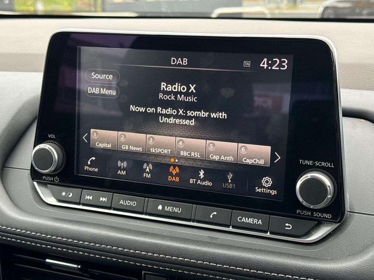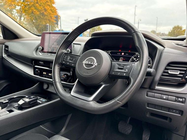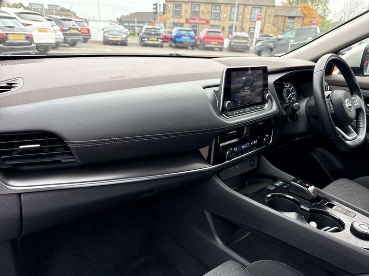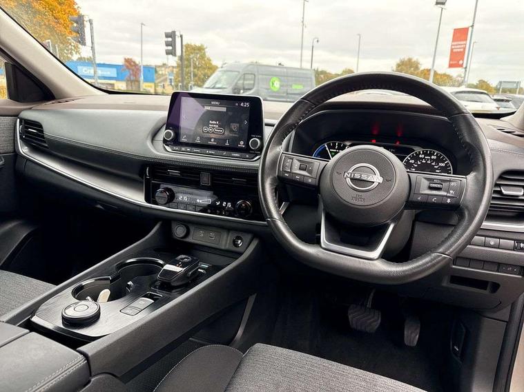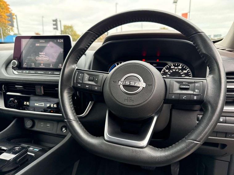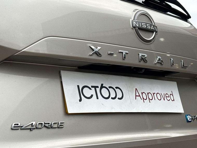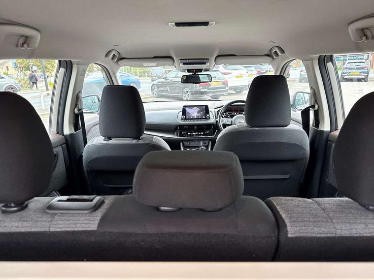 7" High definition full colour TFT screen combimeter, Android auto/Apple CarPlay (Wired), Blind spot warning, Drive modes (sport, normal, eco, snow, off-road), e-Pedal step, Electric speed sensitive power steering, Emergency and breakdown call, Front and rear parking sensors, Idle stop/start system, Intelligent Cruise control (ICC), Intelligent driver alert system, Intelligent forward collision warning, Intelligent lane departure warning, Intelligent lane intervention, Intelligent lane keep assist, Maximum speed limiter, Moving object detection, Nissan connect 8" touchscreen infotainment system, Push button starter, Rear cross traffic alert, Rear view camera, Traffic sign recognition with legal speed adjustment, Trip computer, 6 speakers, AM/FM audio system with DAB, Bluetooth audio streaming, Front USB connections (Type-A and Type-C), 3rd brake light, Auto dimming rear view mirror, Auto rear wiper when reversing, Body colour mirror caps, Body coloured door handles, Bodyside mouldings, Chrome side window finisher, e-4ORCE badging, e-POWER badging, Electric auto folding door mirrors, Electrically adjustable and heated door mirrors, Follow me home headlights, High beam assist, Intelligent auto headlights, LED daytime running lights, LED Headlights, LED rear lights, One touch front and rear electric windows with remote opening and closing, Partially body coloured bumpers, Rain sensing wipers, Rear reversing light (bulb lighting), Rear roof spoiler, Rear side wing doors, Rear styling plate, Shark fin antenna, Splash free wipers, Three blink turn signal, 12v power socket in dashboard and luggage, 3 bench rear seats in 2nd row, 3 rear headrests, 60/40 split folding rear seat bench, Butteryfly console, Chrome interior door handles, Cloth monoform upholstery, Driver and front passenger sunvisors with illuminated vanity mirrors, Driver seat back pocket, Dual zone automatic climate control with pollen filter, Front centre console and armrest, Front cupholders, Front door with bottle holders, Height adjustable driver's seat, Height adjustable front headrests, Height adjustable passenger seat, Leather shift knob, Leather steering wheel, Luggage space lighting, Multifunction steering wheel, Passenger seat back pocket, Rear armrest with 2 cupholders, Rear door bottle holders, Single front passenger seat, Tilt/telescopic adjustable steering wheel, Two rear isofix child seat anchorage points with top tether, 3x3 point rear seatbelt pretensioners + load limiters, ABS with EBD and brake assist, Active brake limited slip, Auto hold function, Child locks on rear doors, Curtain and front side, far side airbags, Driver and passenger airbags, Driver, passenger and 2nd row rear seat belt reminder, Electronic parking brake, Front seatbelt pretensioners + load limiters, Height adjustable front seatbelts, Hill start assist, Intelligent blind spot intervention, Intelligent front emergency braking with pedestrian, cyclist recognition and junction assist, Intelligent rear automatic braking, Tyre pressure monitoring system, Vehicle dynamic control, Engine immobiliser, Intelligent Key, Remote central door locking with deadlocking, Thatcham Cat.1 alarm, 18" Diamond cut alloy wheels, Tyre puncture repair kit,