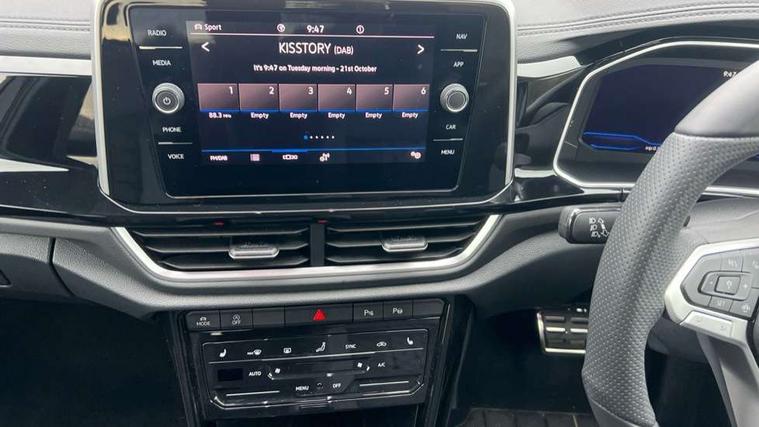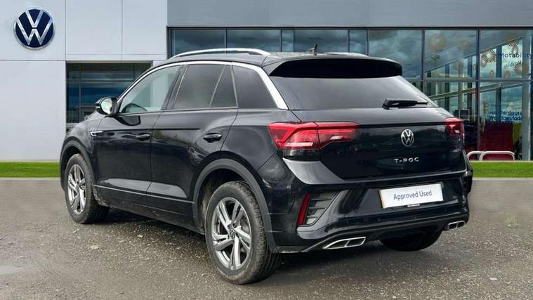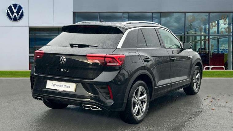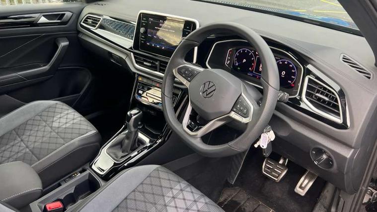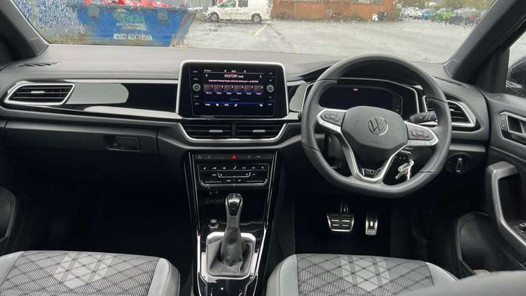 10.25" Digital cockpit pro, Advanced driver attention and drowsiness monitor, Emergency call service, Lane keeping system Lane Assist, Mobile phone interface, Modified key software - reduce switch off time for key status change to Long no motion, Online services, Park assist including front and rear parking sensors, Service interval indicator, Tailgate/trunk lid release from outside, Think blue trainer driver tips and journey analysis, Warning sound and light for front seatbelts unfastened, Wireless app connect, Battery regeneration during braking, Start/stop function with battery regeneration, DAB Digital radio, Diversity antenna for FM reception, Front and rear 6 speakers, Music playback - MP3, WMA and AAC files, Premium USB cable in choice of either Apple or Android smartphone compatibility, SD card slot, Simultaneous pairing of 2 compatible mobile devices, Title and cover art display, We Connect and We Connect Plus functionality, Auto dimming interior rear view mirror, Automatic hazard lights activation under emergency braking, Automatic headlight control with LED separate daytime running lights with coming/leaving home function, Body coloured exterior mirror housings and door handles, Electrically adjustable and heated door mirrors, Extended roof spoiler, Exterior mirrors aspherical on driver side, convex on front passenger side, External USB type C socket and charging sockets, Front windscreen wiper with intermittent wipe and 4 position delay, Heated rear window, LED 3rd brake light, LED rear combination lamps, LED rear number plate lights, Power windows with comfort operation and circuit breaker, Privacy glass for rear side windows and rear window, R-Line design body coloured bumpers, Rain sensor, Rear exhaust tailpipe, Rear fog light on one side and reversing lights on both sides, Rear side wing doors, Rear wash/wipe with intermittent wipe setting, Remote electrically foldable door mirrors, puddle lights and reverse activated passenger's door mirror, 12V power socket in centre console, 3 rear head restraints, 3 seat bench in 2nd row, 4 load lashing points in luggage compartment, Air care climatronic air conditoning system with active combination filter and 2-zone temperature control, Black roof lining, Chrome plated decorative trims, Chrome plated radiator grille inserts, air vent surrounds and light switch surrounds, Door and side trim panel with leatherette insert, Front + rear carpet mats, Front centre armrest, Front cupholders x 2, Front footwell illumination, Front reading light, Front scuff plates with R Line logo, Front seat back storage pockets, Glove compartment door with light, Instrument lighting, white adjustable panel illumination, Interior ambient lighting and surround lighting, Interior light delay, Isofix child seat preparation, Leather gearshift handle, Load-through provision with cup holder when folded down ('Unsplit rear seat bench, split folding backrest, with centre armrest), Luggage compartment lighting, Single front passenger seat, Stainless steel pedals, Storage compartment in left and right luggage area, Storage compartment in rear doors, Storage compartments in driver and front passenger doors, Sunvisors with illuminated vanity mirrors, Variable boot floor, height adjustable and removable, Driver assistance pack without proactive passenger protection - T-Roc, 3 point height adj front seatbelts + pretensioners, 3 point seatbelts in outer rear with ECE label, ABS, Child locks on rear doors, City emergency braking and pedestrian monitoring, Driver and front passenger airbag with front passenger airbag deactivation, Driver and front passenger safety-optimised head restraints, Drivers seatbelt reminder, Electronic parking brake, Electronic Stability Control (ESC) inc EDL (Electronic Differential Lock) and ASR (Traction Control), Front and rear passengers curtain airbag system including front side airbags, Hill start assist, Predictive pedestrian protection, Rear disc brakes, Two tone horn, Tyre pressure loss indicator, Volkswagen roadside assistance, Piano black decorative inserts in dashboard and front door trim panels, Trims for alloy wheels,