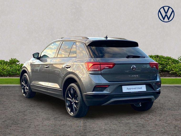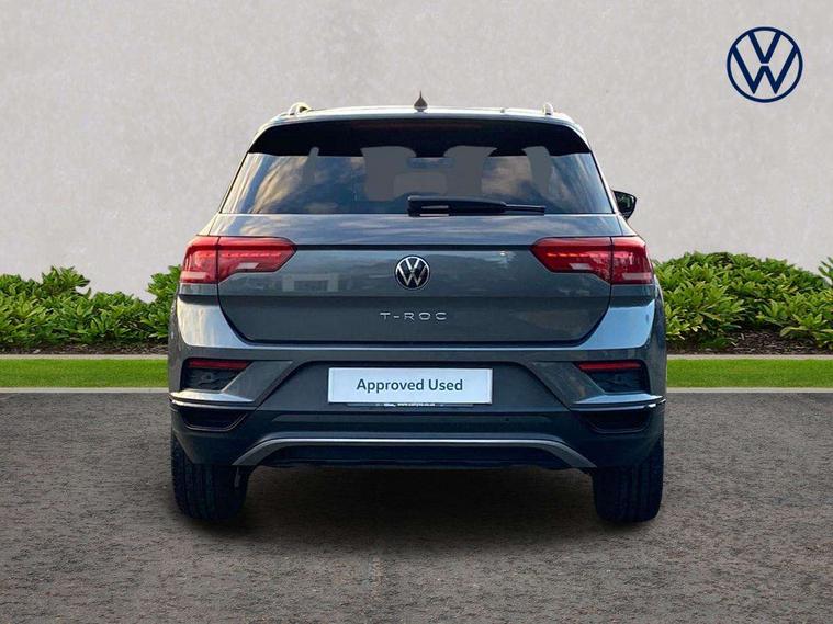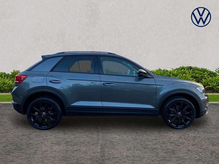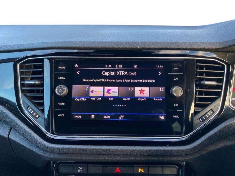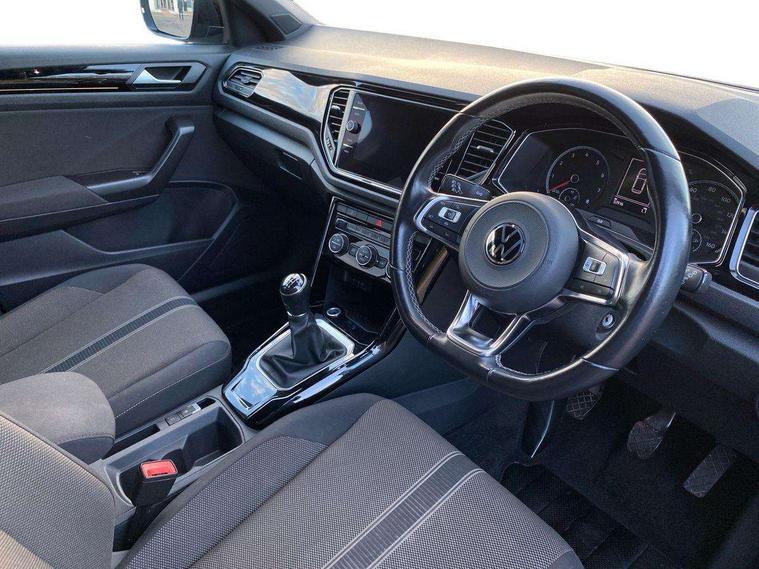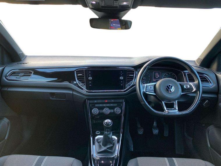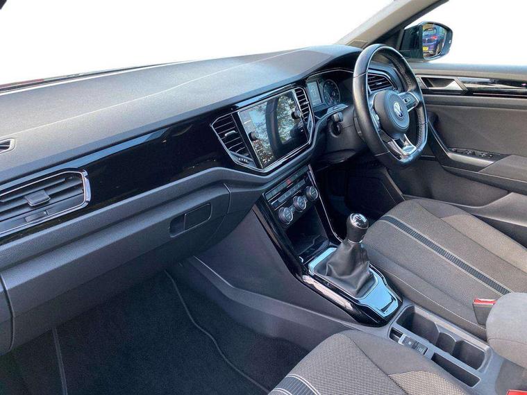 'Lights On' Reminder warning buzzer, Adaptive cruise control, Bluetooth telephone and audio connection for compatible devices, Car information display, Driver tips and journey analysis, Emergency call service, Lane assist with warning text instrument cluster, Modified key software - reduce switch off time for key status change to Long no motion, Multifunction camera, Multifunction computer with visual gear change recommendation for fuel consumption, Service interval indicator, Think blue trainer driver tips and journey analysis, Warning sound and light for doors and tailgate open, Warning sound and light for front seatbelts unfastened, Wireless app connect for apple carPlay, Battery regeneration during braking, Start/stop function with battery regeneration, DAB Digital radio, Diversity antenna for FM reception, Multi device interface (MDI) with USB connection, Music playback - MP3, WMA and AAC files, Premium USB cable in choice of either Apple or Android smartphone compatibility, SD card slot, Simultaneous pairing of 2 compatible mobile devices, Single CD player, glovebox mounted, SMS functionality - read, compose and send SMS messages using touch-screen display, Storage compartment with longitudinal and height adjustable in armrest and two rear air vents, Title and cover art display, USB-C Interface and USB charging socket, Auto dimming interior rear view mirror, Automatic coming/leaving home lighting function and daytime running lights, Automatic hazard lights activation under emergency braking, Black grained lower door protectors, Black grained wheel arches, Black roof rails, Body colour door handles, Body colour sports bumpers with silver metallic underbody fascia, Body coloured bumpers and radiator grille with chrome trim and front fog lamps with chrome bezel, Chrome trim on upper and lower radiator grille, Dusk sensor, Electrically foldable, adjustable and heated door mirrors with puddle lights and reverse activated kerb-view adjustment on passenger's door mirror, Exhaust tailpipes in black, External USB type C socket and charging sockets, Front and rear electric windows, Front windscreen wiper with intermittent wipe and 4 position delay, Fully galvanised body, Heated rear window, High level 3rd brake light, LED headlamps with automatic range adjustment and unique signature LED separate daytime running lights, LED rear number plate lights, LED tail lamp rear comination lamps, Privacy glass, Rain sensor, Rear tinted glass from B-pillar backwards approx 65% tinted, Rear wash/wipe with intermittent wipe setting, Trim strips on grille and vehicle side, Volkswagen roundel, 12V socket in centre console storage area, 3 rear head restraints, 4 load lashing points in luggage compartment, Black roof lining, Climate control - 2 zone electronic air conditioning with automatic air recirculation and allergy filter, Door and side trim panel, Drawer under drivers seat, Front centre armrest, Front cupholders x 2, Front seat back storage pockets, Glovebox, Height adjustable front seats, Height/reach adjust steering wheel, Instrument lighting, white adjustable panel illumination, Interior light in footwell, Isofix easy fit child seat preparation for 2 outer rear seats, LED interior light with switch off delay/dimmer and 2 front/rear LED reading lights, Load through provision with single cup holder when folded down, Luggage compartment cover, removable, Luggage compartment lighting, Split folding rear seat backrests with centre armrest, Storage compartment in left and right luggage area, Storage compartment in rear doors, Storage compartments in driver and front passenger doors, Sunvisors with illuminated vanity mirrors, Three spoke multi-function leather trimmed steering wheel and gearknob, White ambient lighting, Black decal on C-pillar pack - T-Roc, 3 rear three point seatbelts, ABS, Curtain airbags, Driver and front passenger safety-optimised head restraints, Drivers and front passengers airbags with passengers deactivation switch, Drivers seatbelt reminder, Electronic parking brake with auto hold, Electronic stability control (ESC) includes ASR, EDL, EDTC and trailer stabilisation function, Front assist with city emergency braking and pedestrian monitoring, Front seat side impact airbags, Predictive pedestrian protection, Rigid safety cell with front and rear crumple zones, Single tone horn, Three point height adjust front seatbelts + pretensioners, Tyre pressure loss indicator, Ventilated front and rear disc brakes, Volkswagen roadside assistance, Alarm with remote central locking and interior protection, Electronic engine immobiliser, Remote central locking with SAFELOCK, radio remote control with 2 remote control folding keys, Black decorative trims, Piano black decorative inserts in dash, centre console and door panel, 18" Arlo black diamond turned surface alloy wheels with low rolling resistance tyres and anti theft wheel bolts,