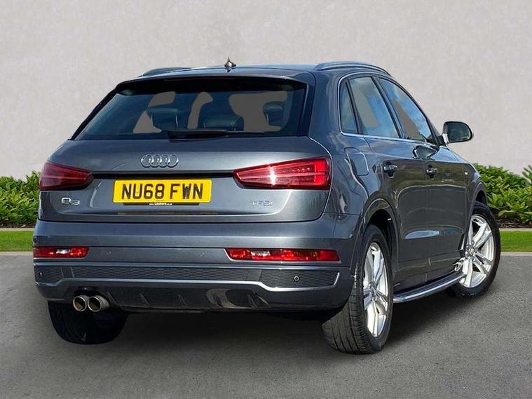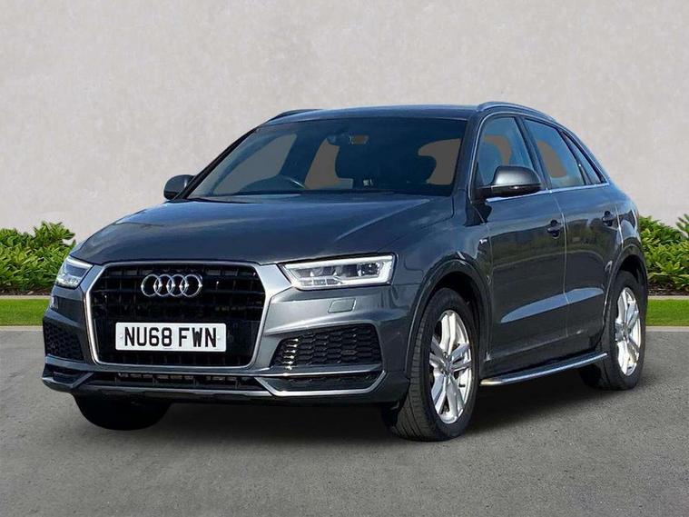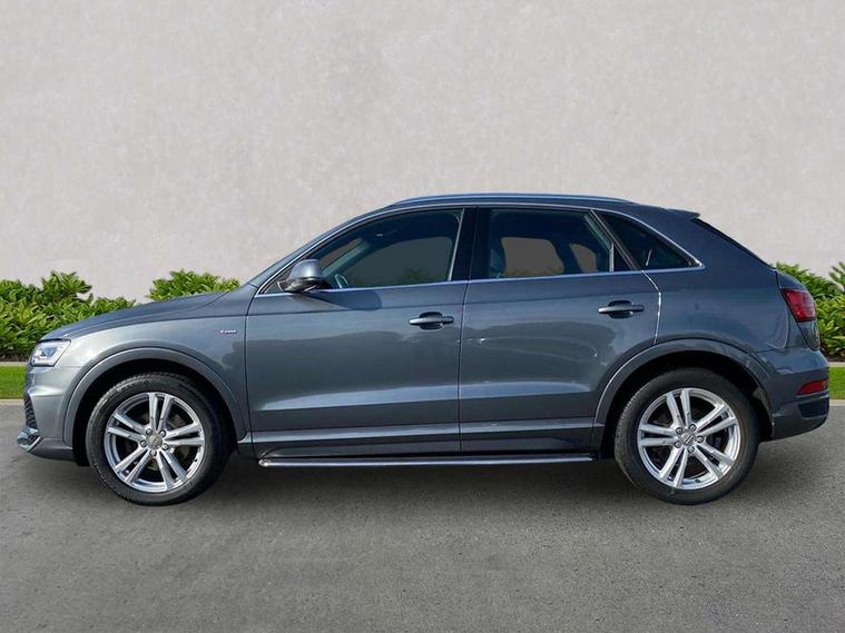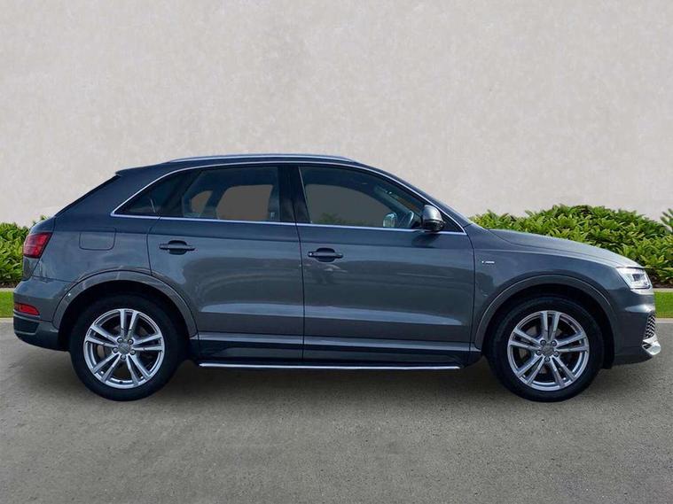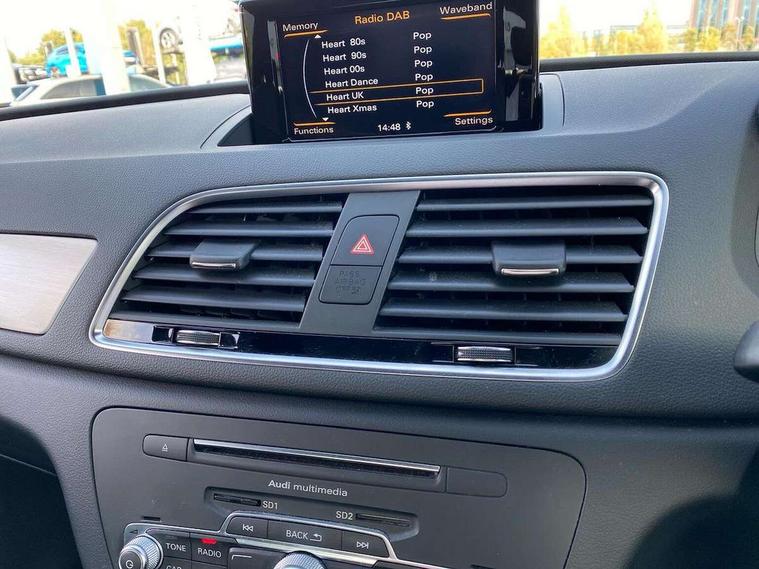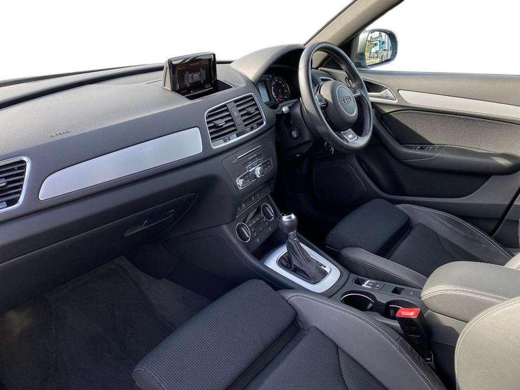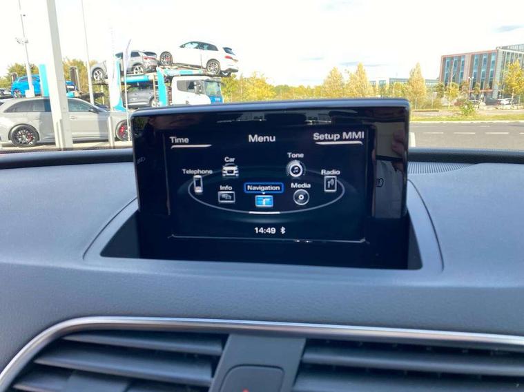 6.5" colour display screen, Audi drive select, Cruise control, Electro-mechanical PAS, Low washer fluid indicator, MMI - Multi Media Interface control system, On board computer, Remote electric boot opening/closing, Service interval indicator, Voice control system, Dynamic suspension, Audi music interface, DAB digital radio module, Acoustic windscreen, Aluminium window surround, Auto dimming rear view mirror, Body colour door mirrors, Body coloured bumpers, Chrome exhaust tailpipe, Coming home function, Door mirror integrated indicators, Front and rear electric windows, Front fog lights, Front lip spoiler, Heated windscreen washer jets, LED daytime running lights, LED headlights with headlight washers, LED rear lights, Light and rain sensor for auto activation of lights and windscreen wipers, Loading sill protector in stainless steel, Rear diffuser with platinum insert, Rear wiper, S Line body styling, Sunband for windscreen, 12V socket in rear centre console, 3 spoke multi-function Q design steering wheel with paddle shift, Aluminium door sill trims, Black cloth headlining, Door sill trim strips, Dual zone climate control, Electric front lumbar adjustment, Front and rear headrests, Front and rear velour floor mats, Front centre armrest with storage compartment and angle adjustment, Front sports seats, Height/reach adjust steering wheel, ISOFIX on front passenger and rear outer seats, Jack and tool kit, Perforated leather gearknob, Retractable luggage cover, Split fold rear seat, Storage compartment and 12V socket, Under floor storage in luggage area, 3x3 point rear seatbelts, ABS+Electronic Brake force Distribution, Curtain airbags, Driver and passenger airbags, Driver and passenger side airbags, EDL + ASR, Electrically operated child locks on rear doors, Electromechanical parking brake, ESP, First aid kit, Front passenger airbag deactivation, Head airbags, Seatbelt warning light, Tyre pressure monitoring system, Warning triangle, Locking wheel bolts, Remote central locking, Thatcham category 1 alarm + immobiliser, Matt brushed aluminium fascia and door trim inlays,