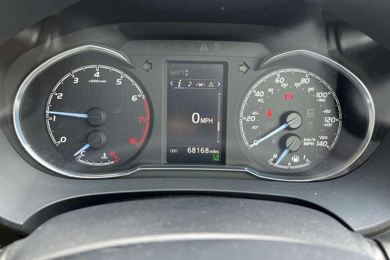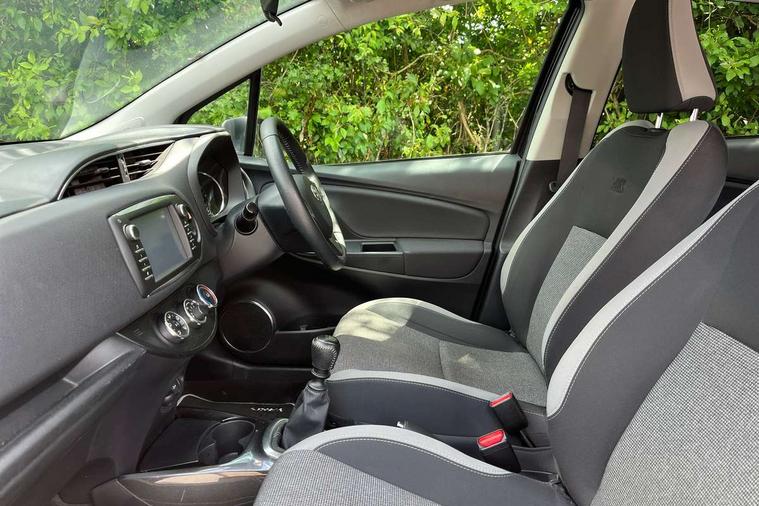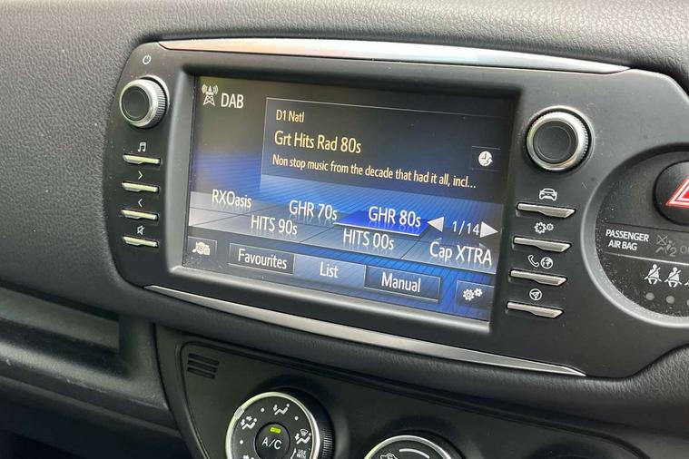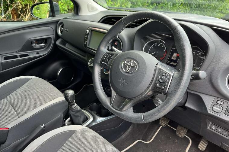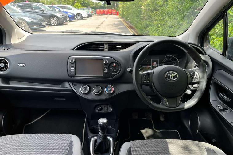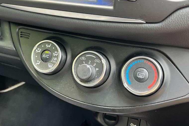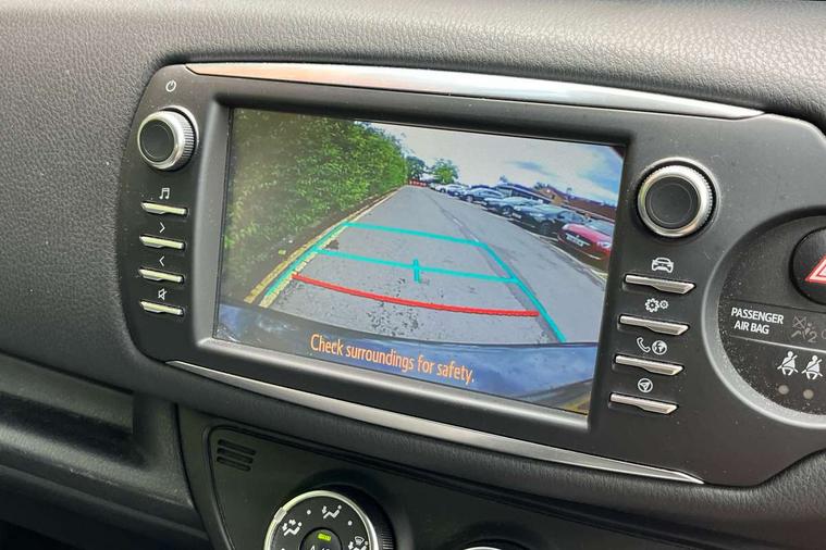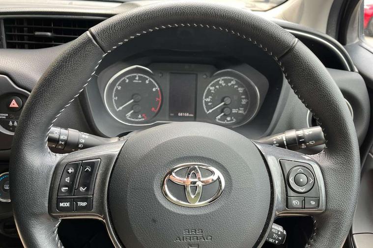 4.2" coloured LED TFT multi information display, Analogue speedometer, Analogue tachometer, Auto speed limiter, Bluetooth connectivity, Cruise control, External temperature gauge, Fuel indicator with low level warning, Key reminder warning, Lights on warning, Multi information display switches on steering wheel, Power Steering, Reversing camera, Trip computer, 6 speakers, Auxiliary input socket, Steering wheel mounted audio/telephone switches, Toyota Touch 2 with DAB, USB connection, Auto up and down function on drivers window, Automatic wipers, Bi-tone grey roof, Black lower front grille, Body colour bumpers, Body colour door handles, C pillar decal, Daytime running lights, Electric adjustable heated door mirrors, Electric front windows, Follow me home headlights, Front fog lights, Grey contrasting colour door mirrors, Grey door moulding, Grey door side sills, Grey front grille and fogs, Headlight cut-off reminder, LED High mounted stop lamp, Manual dimming rear view mirror, Privacy glass, Projector headlights, Rain sensitive windscreen wipers, Rear combination lights bulb type, Rear window defogger, Rear wiper, Turning signal integrated indicators in door mirrors, Y20 Badging, 12v power outlet - front, 3 adjustable rear headrests, 3 spoke leather steering wheel, 60/40 split folding rear seat, Active headrests, Boot light, Data Communication Module (DCM) connected services, Driver and front passenger personal light, Driver and front passenger Whiplash Injury Lessening seats, Fabric upholstery, Front and rear cup holders, Front map reading lights, Front seats with lumbar support, Glovebox, Height adjustable driver's seat, Height adjustable front head restraints, Illuminated entry system, Isofix seat fixing, Leather gearshift, Manual air conditioning, Map pockets on the backs of the front seats, Pollen filter, Removable rear parcel shelf, Sliding front seats, Soft touch inner door garnish, Tilt/telescopic steering column, Y20 badge interior and in seat trim, 3 point seatbelts on all rear seats, ABS+EBD+Brake assist, Collision mitigation braking system, Emergency brake light system (EBS), Front passenger airbag on/off switch, Front seatbelt reminder, Height adjustable front seatbelts with pre-tensioners and load limiters, Hill start assist control (HAC), Rear child proof door locks, Rear seat belt reminder, Road sign information display, Seatbelt warning lamp and buzzer, Supplemental restraint system (SRS) airbags - 7 airbags including driver, front passenger, curtain, side and knee airbags, Toyota safety sense including Road sign assist, Pre collision system, auto high beam and lane departure alert), Tyre pressure warning system, Vehicle stability control VSC + traction control, Engine immobiliser, Power and remote door locking, Interior satin accents, Soft touch instrument panel, 16" 10 spoke grey machined alloy wheels, Space saver spare wheel,