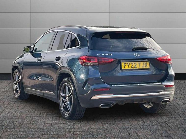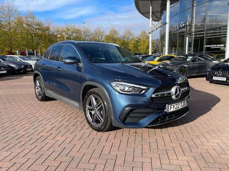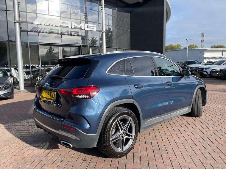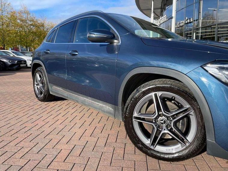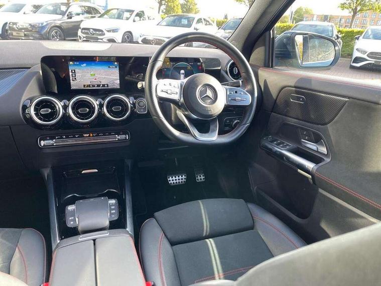 180 degree reversing camera with parking guidelines, 7 inch digital instrument cluster display, 7" touchscreen media display, Active lane keeping assist, Attention assist, Cruise control + speed limiter, Direct steering, DYNAMIC SELECT with a choice of driving modes (ECO, Comfort, Sport and Individual), ECO start/stop function, Fluid level warning indicator for fuel, oil, coolant and washer fluid, Hard-disk navigation, Hey Mercedes Voice activation, Lamp failure indicator, Mercedes me connect including emergency call system, accident recovery, breakdown and maintenance management, Mercedes me remote services, Multi function trip computer, Outside temperature gauge, Owners manual and service booklet in English, Pre-installation of private car share, Radio aerial integrated into front and rear windshields, Service indicator (ASSYST), Speed limit assist, Status display for rear seat belts in instrument cluster, Lowered comfort suspension, Rear axle multi-link, 2 USB ports (type C) in rear stowage compartment and one in front of center console, Bluetooth connectivity including audio streaming, DAB Digital radio, MBUX multimedia system, Media interface, Mercedes-Benz sound system - 100W, Adaptive brake lights, Aerial for GPS, Aluminium roof rails, AMG front and rear apron, AMG specific/dual flow exhaust pipes in chrome (non-functional), Automatic headlamp activation, Beltline strips and weather strip in chrome, Black grained claddings with chrome parts, Body colour bumpers, Body colour door handles, Body colour door mirrors, Car wash function, Dark privacy glass from B-pillar backwards, Electric front windows, Electric rear windows, Electrically adjustable and heated door mirrors with integrated LED indicators, Front door sills with Mercedes-Benz lettering, Heated glass rear windscreen + timer control, Heated windscreen wash system, Interior mirror with black reading lamps and frameless, LED high performance headlamps with integrated LED daytime running lights, LED tail lights in two piece design, LED third brake light, Matt titanium grey front and rear apron trim, Rain sensor windscreen wipers, Rear fog lights, Rear side wing doors, Rear wiper, Roof spoiler, Single lamella raditor grille with chrome dotted diamond grille and inlay, 12V power socket in centre console, 3 seat bench in 2nd row, 3 spoke multifunction sports steering wheel in nappa leather with flattened bottom and perforated grip area, 40:20:40 split folding rear seat backrests, Adjustable head restraints, Air conditioning - Two zone thermotronic luxury automatic climate control with display, Ambient lighting in front headrests, AMG floor mats with AMG lettering in front, Artico man-made leather/Microfibre Dinamica upholstery with red contrast stitching, Auto Mercedes-Benz child seat recognition sensor, Black roof lining, Brushed door pulls in silver chrome, Courtesy light in boot, Front centre armrest with stowage, Galvanished gear shift paddles on steering wheel, Heated front seats, Illuminated glovebox, Leather trimmed gearknob, Luggage net on driver/front passenger seat backrest, Manually height and reach adjustable steering column, Multi-gesture touchpad control on center console, Single front passenger seat, Sports pedals in brushed stainless steel with black rubber studs, Sports seats, Stowage compartment in centre console, Stowage compartment with retractable cover, Sunvisors with illuminated vanity mirrors, Twin front cup holders, Two outer rear seat isofix and top tether child seat fixing points, AMG body styling pack - GLA, Comfort seat pack - GLA Class, Interior lighting with light and sight pack - GLA, Load compartment pack - GLA, 3 rear 3 point seatbelts, ABS with Brake Assist, Active bonnet pedestrain safety measure which detects an impact and raises bonnet by 65mm, Active brake assist includes forward collision warning system with autonomous braking, Adaptive brake assist with hold function and hill start assist, Bonnet with power domes, Brake pad wear warning indicator, Childproof locks manually operated for rear doors and electrically operated for rear power windows, Crash responsive emergency lighting, Driver and passenger head and side airbags, Drivers knee airbag, Dual stage driver/passenger airbags, Electronic parking brake, ESP curve dynamic assist, ESP with ASR, Front and rear seatbelt reminder, Front brake callipers with Mercedes Benz logo lettering on front, Front brake discs internally ventilated and perforated, Front passenger seat occupancy sensor, Tyre pressure monitoring system, Warning triangle and first aid kit, Window airbags, Alarm system with immobiliser and interior protection -Thatcham category 1, Keyless Go starting function, Remote central locking and crash sensor with emergency opening function, Urban guard vehicle protection, Vehicle key with decorative surround in chrome, Carbon structure trim, Chrome air vent surrounds, 19" AMG 5 twin spoke light alloy wheels aerodynamically optimised painted in tantalite grey with a high sheen finish, Summer tyres, Tirefit tyre sealant kit,