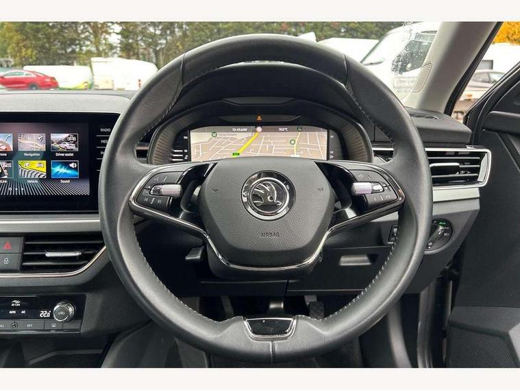 Amundsen satellite navigation with 9.2" glass colour touchscreen with virtual cockpit, web radio, Android Auto, Bluetooth system, Colour multifunction trip computer, eCall emergency system, PAS, Rain and light assist with auto dimming rear view mirror, Rear view camera, Speed limiter, Tailgate, Traffic sign recognition, Virtual cockpit, Voice control system, Wireless SmartLink for Apple Car Play, 2 USB - C ports, 8 loudspeakers, DAB Digital radio, 3rd brake light, Automatic headlamp activation with Coming home and Leaving home feature, Body colour door mirrors and handles, Chrome grille surround, Dimming rear view mirror with black frame, Electric folding door mirrors, Electrically adjustable and heated door mirrors, Front and rear electric windows, Front fog lights with cornering function, LED rear tail lights with dynamic indicators, Privacy glass, Rear side wing doors, Rear wiper, Tinted windows, 12V Accessory socket in centre console, 3 seat bench in 2nd row, Chrome inner door handles, Chrome on gear and handbrake lever, Chrome strip on the dash and door panel, Dual zone climate control, Front head restraints, Glasses storage in roof liner, Instrument cluster with chrome painted decor ring, ISOFIX for rear passenger seat, Leather gearknob and handbrake lever, Manual lumbar support for front seats, Net in centre console, Reading lights for driver and front passenger, Single front passenger seat, Sun visor with make up mirror for front passenger, Textile floor mats, Third rear headrest, Umbrella, 3x3 point rear seatbelts, Curtain airbags, Emergency call and proactive services, Front head and side airbags, Hill hold control, Manual rear child locks, One tone horn, Passenger airbag switch off function, Seat belt reminder for all seats, Alarm, Anti-theft wheel bolts, Keyless entry with start/stop button, Remote central locking with 2 remote folding keys, SAFE function for remote central locking, Latice grey decorative insert with copper hot stamping, Temporary space saver wheel,