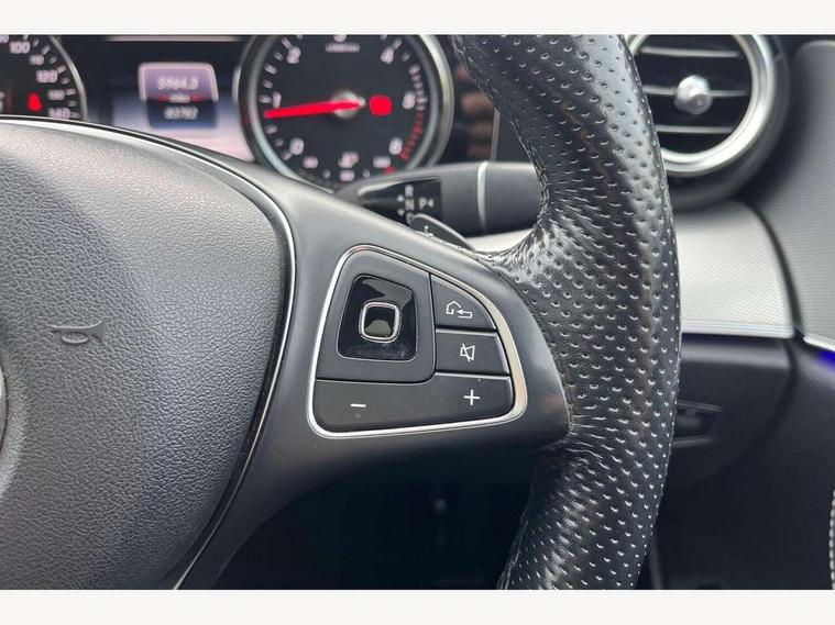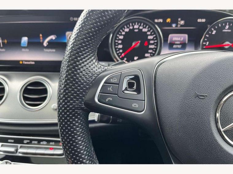 Active park assist with parktronic system, Analogue clock, Attention assist, Bluetooth interface for hands free telephone, Boot release from drivers seat, Brake wear warning light, DYNAMIC SELECT with a choice of driving modes (ECO, Comfort, Sport, Sport+ and Individual), Easy-pack tailgate - Powered opening/closing automatically, Mercedes connect me, Multi function trip computer, Park assist pilot with front and rear park assist, Remote boot release, Service indicator (ASSYST), Speed sensitive power steering, Diesel particulate filter, DAB Digital radio, Media interface, Steering wheel mounted audio controls, USB/aux input socket, Adaptive brake lights, Aerial integrated in rear window, Body colour bumpers, Body colour door handles, Body colour door mirrors, Chrome roof rails, Electrically adjustable and heated door mirrors, LED Headlights, Polished aluminium upper window surround, Polished aluminium waistline, Radiator grille with integral star and 2 louvres in matt iridium silver with chrome trim, Rain sensor windscreen wipers, 3 spoke nappa leather steering wheel, 40:20:40 split folding rear bench seat, Ambient lighting, Auto Mercedes-Benz child seat recognition sensor, Folding shopping box, Front and rear door pockets, Front centre armrest with storage compartment, Front door sills with Mercedes Benz lettering, Heated front seats, Height/reach adjust steering wheel, Interior rear light/integral reading lights, Isofix rear child seat fastenings, Leather upholstery, Lockable/illuminated air conditioned glovebox, Multi function steering wheel, Storage compartment with 12V socket in centre console, Sunvisors with illuminated vanity mirrors, Interior lighting pack - E Class, Keyless Go comfort pack - E Class, Memory pack - E Class, Mirror pack - E Class, 3x3 point rear seatbelts, Active bonnet, Active brake assist, Childproof rear door locks, Driver and passenger side/thorax airbags, Driver/front passenger airbag, Drivers knee airbag, Electronic parking brake, Hill hold assist, Hill start assist, Pre-Safe anticipatory safety system, Seat occupancy sensor, Seatbelt warning, Tyre pressure monitoring system, Warning triangle and first aid kit, Window airbags, Alarm system/interior protection/immobiliser, Chrome surround in electric key, Open pore black ash wood centre console,