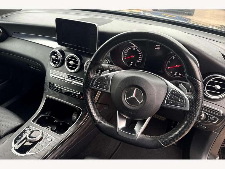 7" colour screen, Active park assist with parktronic system, Attention assist, Bluetooth interface for hands free telephone, Collision prevention assist plus, Crosswind Assist, DYNAMIC SELECT with a choice of driving modes (ECO, Comfort, Sport, Sport+ and Individual), Garmin Map Pilot navigation system with SD card, touchpad and voice control, Instrument cluster with 5.5-inch TFT multi-function display, Multi function trip computer, Outside temperature gauge, Power opening/closing tailgate, Remote boot release, Service indicator (ASSYST), Speed sensitive steering, Diesel particulate filter, 5 speakers, DAB Digital radio, Frontbass loudspeakers, Mercedes Audio 20 radio/single CD + telephone keypad, USB connection, Adaptive brake lights, Aerodynamic rear spoiler, AMG bodystyling, Automatic headlights, Body coloured bumpers, Chrome exterior trim, Electric windows one touch open/close, Electrically adjustable and heated door mirrors, Exhaust tailpipe finisher, Heated windscreen washers, LED daytime running lights, LED rear lamps, Privacy glass (to rear of B post), Rain sensor windscreen wipers, Range adjustable headlights, Rear wiper, Tinted glass all round, 2 cupholders in front centre console, 2 way rear head restraints, 3 spoke flat bottom AMG steering wheel in nappa leather, 4 way adjustable front head restraints, 4 way electric lumbar support for driver and front passenger, 40:20:40 split folding rear seats, AMG floor mats, AMG sports seats, Auto Mercedes-Benz child seat recognition sensor, Automatic climate control, Black roof lining, Dividing net - rear, Electric front seat height adjustment, Front armrest with storage box, Front door sills with Mercedes Benz lettering, Gearshift paddles, Heated front seats, Height/reach adjustable steering column, Illuminated glovebox, Multifunction steering wheel, Rear top tether child seat ISOFIX attachment, Sports pedals with stainless steel surfaces and rubber studs, Sunvisors with illuminated vanity mirrors, Easy-pack load compartment cover, Interior lighting pack - GLC, Mirror pack - GLC, Storage pack - GLC, 3 rear 3 point seatbelts, ABS with Brake Assist, Active bonnet, Adaptive brake system, Brake calipers with Mercedes-Benz lettering + perforated brake discs, Child proof door locks, Drivers knee airbag, Dual stage driver/passenger airbags, Electronic parking brake, ESP with ASR, Front and rear seatbelt reminder, Front passenger seat occupancy sensor, Front side airbags, Hill hold function, Tyre pressure monitoring system, Warning triangle and first aid kit, Window airbags, Alarm system/interior protection/immobiliser, Automatic door locking, Keyless Start, Remote central locking, All season tyres, Tyre inflation kit,