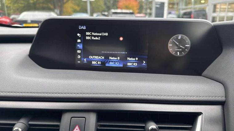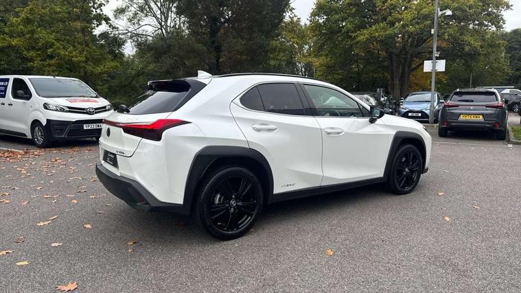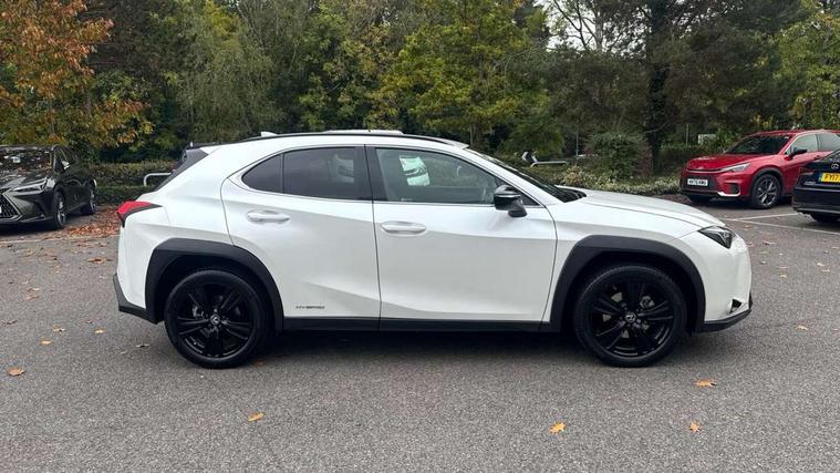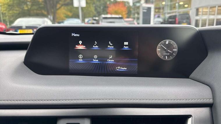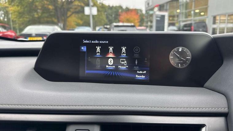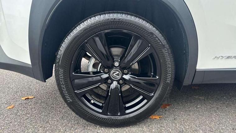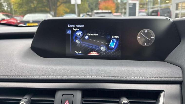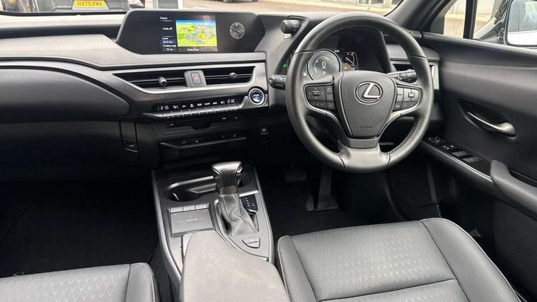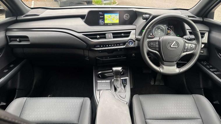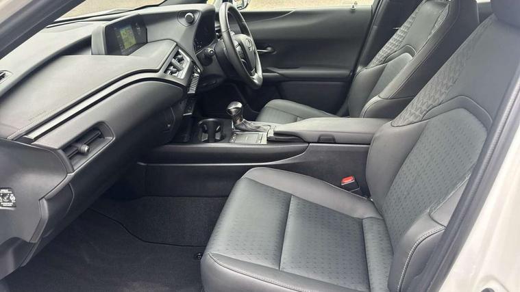 4 driving modes EV/Eco/Normal/Sport, 7" Lexus media display, 7" TFT instrument cluster, Analogue clock with GPS function, Apple car play/Android Auto, Compatible mobile phone bluetooth with audio streaming, E-call, Electric power steering (EPS) with speed sensitive features, Lane change flasher function, Lexus link connected services, Lexus navigation system, Lexus safety systems + includes dynamic radar cruise control, pre collision system day and night, lane tracing assist, road sign assist, Push button start, Remote touch interface, Reversing camera with back guide lines, Trip computer, Vehicle Dynamics Integrated Management (VDIM), Vehicle Stability Control (VSC), 2 front USB and 2 rear USB charging points, 6 speakers, AM/FM and DAB radio, AUX socket with VTR compatibility, CD player, Acoustic windscreen, Aero stabilising arch mouldings, Aero stabilising rear lights, Aero ventilated wheels, Aluminium roof rails, Bi-LED (low and high beam) headlights with Auto High Beam (AHB), Body adhesive, laser screw welding and laser brazed roof structure, Electric adjustable/heated door mirrors, Front and rear one touch power windows, with anti-jam protection, Headlight cleaners, LED daytime running lights, LED front and rear fog lights, LED tail lights, Light green UV glass, Rain sensor windscreen wipers, Rear wiper, Shark fin roof aerial, Single hidden exhaust pipe, Towing preparation, 12V accessory port centre console and luggage compartment, 2 cup holders in the front and rear centre console, 2 x folding shopping bag hooks in boot, 2 x sun visors with vanity mirror and lamp, 4 x tie down hooks in the boot, 5 headrests, 6 way driver and passenger manually adjustable front seats, 60/40 split folding rear seat, Card holder installed in driver and passengers sun visors, Centre armrest with storage, Driver and passenger door pocket, Dual zone electronic climate control + Nano-E humidity sensor, Glovebox, Leather gear lever, Leather steering wheel, LED interior illumination, Map pockets in the rear of passenger's front seat, Premium fabric upholstery, Rear air vents with 2 USB chargers, Rear armrest with 2 cupholders, Storage tray under audio panel, Textile carpet mats, Tilt/reach adjustable steering column, Under deck storage, Under desk side storage, 2 x Isofix child rear seat restraints, 3x3 point rear seatbelts, Anti-lock braking system (ABS), BAS (Brake Assist System), Driver and front passenger 2 stage airbag, Driver and front passenger knee airbag, Driver/front passenger side airbags, EBD - Electronic brakeforce distribution, ECB (Electronically Controlled Brake System), Electric parking brake, Front adjustable seatbelt anchor points, Front and rear curtain shield airbags, Front outer seatbelt+pre-tensioners, force limiter+tension reduction: 3-point with active safety link to PCS, Hill start assist control (HAC), Passenger airbag cut-off device, Rear outer seatbelt+pre-tensioners, force limiter+tension reduction: 3-point with active safety link to PCS, Centre belt w/o pre tensioner+force limiter, Secondary Collision Brake (SCB), TRC (Traction Control), Tyre pressure warning, 2 x remote key fobs, Anti theft system : Alarm instruction sensor, glass breakage sensor and engine immobiliser, Locking wheel nuts, Remote central door locking, Speed sensitive auto door locking, Two motion door lock with double lock, VIN Window etching, 17" alloy wheels, Tyre repair kit,