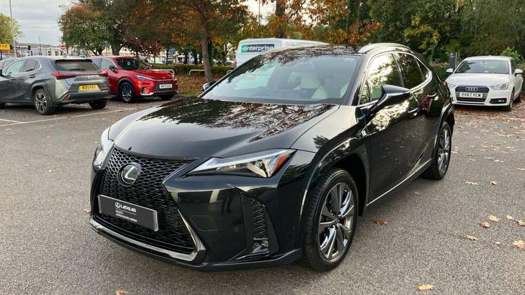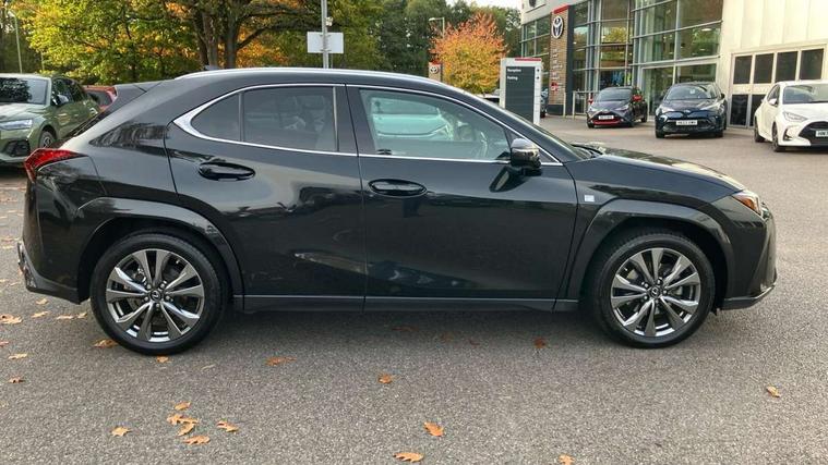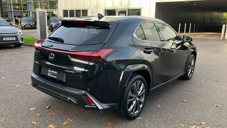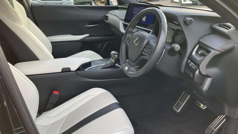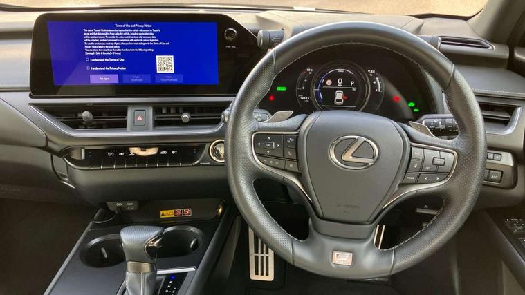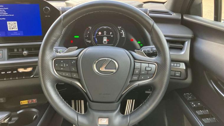 4 driving modes EV/Eco/Normal/Sport, 7" Lexus media display, 8" LFA inspired TFT meters with movable meter ring, Analogue clock with GPS function, Apple car play/Android Auto, Compatible mobile phone bluetooth with audio streaming, E-call, Electric power steering (EPS) with speed sensitive features, Front and rear parking sensor with intelligent clearance sonar, Lane change flasher function, Lexus link connected services, Lexus navigation system, Lexus safety systems + includes dynamic radar cruise control, pre collision system day and night, lane tracing assist, road sign assist, Push button start, Remote touch interface, Reversing camera with back guide lines, Trip computer, F Sport suspension tuning and rear performance dampers, Vehicle Dynamics Integrated Management (VDIM), Vehicle Stability Control (VSC), 2 front USB and 2 rear USB charging points, 6 speakers, AM/FM and DAB radio, AUX socket with VTR compatibility, CD player, Acoustic windscreen, Aero stabilising arch mouldings, Aero stabilising rear lights, Aero ventilated wheels, Aluminium roof rails, Auto dimming interior rear view mirror, Bi-LED (low and high beam) headlights with Auto High Beam (AHB), Black roof drip mouldings, Body adhesive, laser screw welding and laser brazed roof structure, Body coloured bumpers, Colour coded wheel arches, Electric adjustable/heated door mirrors, F SPORT exterior styling consists of black Mesh front grille, enhanced side rockers, metallic coated front bumper and F SPORT badging, Front and rear one touch power windows, with anti-jam protection, Headlight cleaners, LED cornering headlights, LED daytime running lights, LED front and rear fog lights, LED tail lights, LED third brake light, Privacy glass, rear doors and tailgate, Rain sensor windscreen wipers, Rear side wing doors, Rear wiper, Shark fin roof aerial, Single hidden exhaust pipe, Towing preparation, Variable front intermittent wipers, 12V accessory port centre console and luggage compartment, 2 cup holders in the front and rear centre console, 2 way electrical lumbar adjustment for driver, 2 x folding shopping bag hooks in boot, 2 x sun visors with vanity mirror and lamp, 3 seat bench in 2nd row, 4 x tie down hooks in the boot, 5 headrests, 60/40 split folding rear seat, 8 way driver/passenger electrically adjustable front seats, Active sound control, Card holder installed in driver and passengers sun visors, Centre armrest with storage, Driver and passenger door pocket, Dual zone electronic climate control + Nano-E humidity sensor, F Sport aluminium sports pedals, F SPORT dimpled leather gear lever, F SPORT front seat headrest adjustable forwards and backwards, F Sport interior styling, F Sport leather steering wheel with paddle shifts, Fabric/Tahara leather upholstery, Glovebox, Heated steering wheel, Illuminated entry system, LED interior illumination, Map pockets in the rear of passenger's front seat, Rear air vents with 2 USB chargers, Rear armrest with 2 cupholders, Single front passenger seat, Storage tray under audio panel, Textile carpet mats, Tilt/reach adjustable steering column, Under deck storage, Under desk side storage, 2 x Isofix child rear seat restraints, 3x3 point rear seatbelts, Anti-lock braking system (ABS), BAS (Brake Assist System), Driver and front passenger 2 stage airbag, Driver and front passenger knee airbag, Driver/front passenger side airbags, EBD - Electronic brakeforce distribution, ECB (Electronically Controlled Brake System), Electric child locks, Electric parking brake, Front adjustable seatbelt anchor points, Front and rear curtain shield airbags, Front outer seatbelt+pre-tensioners, force limiter+tension reduction: 3-point with active safety link to PCS, Hill start assist control (HAC), Passenger airbag cut-off device, Rear outer seatbelt+pre-tensioners, force limiter+tension reduction: 3-point with active safety link to PCS, Centre belt w/o pre tensioner+force limiter, Secondary Collision Brake (SCB), TRC (Traction Control), Tyre pressure warning, 2 x remote key fobs, Anti theft system : Alarm instruction sensor, glass breakage sensor and engine immobiliser, Locking wheel nuts, Remote central door locking, Speed sensitive auto door locking, Two motion door lock with double lock, VIN Window etching, 18" F Sport alloy wheels with run flat tyres,