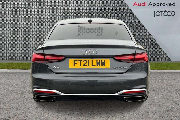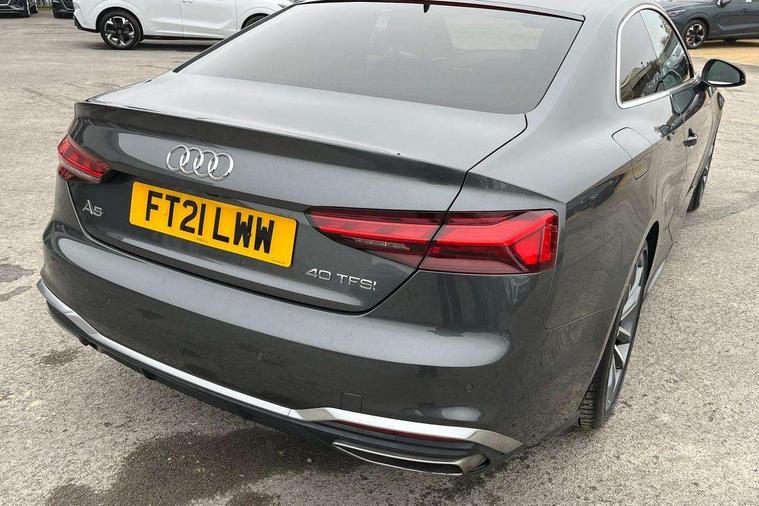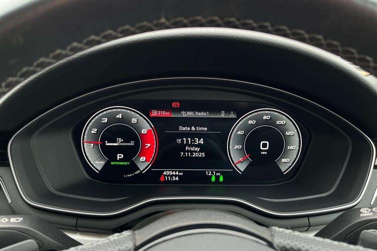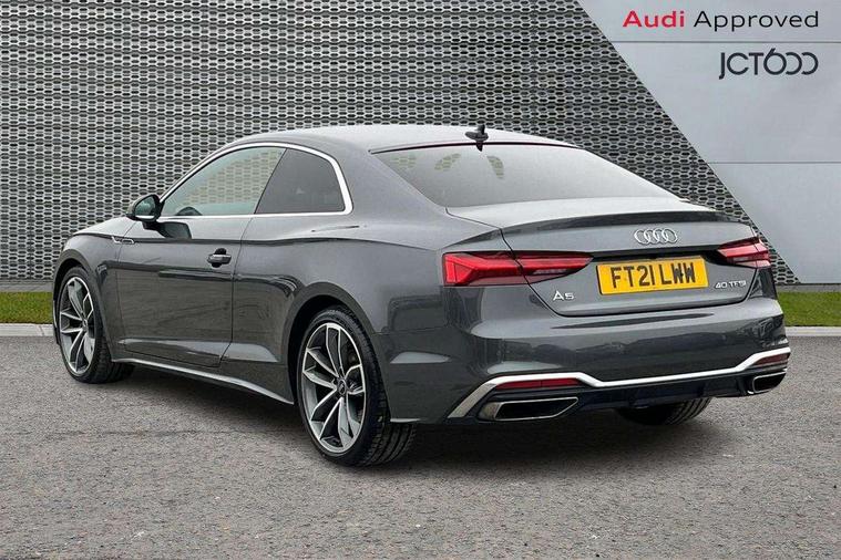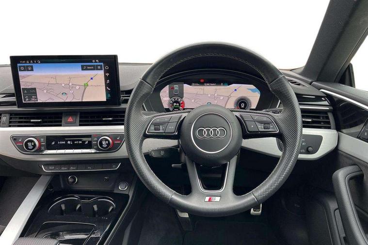 Audi connect safety and service (e-call), Audi connect with Amazon Alexa Integration, Audi drive select (Auto, Comfort, Dynamic, Efficiency and Individual), Audi parking system plus with front and rear sensors, Audi phone box with wireless charging, Audi smartphone interface, Audi virtual cockpit - 12.3" full colour digital instrument cluster, vehicle/engine speed, Radio/media information+Driver assistance systems, Automatic start-stop system with coasting functionality and efficiency programme, Bluetooth interface, Electric boot lid release, Electro-mechanical power steering, Email, calendar and text messages displayed via MMI, MMI nav+ with MMI touch - 10.1" high resolution MMI display, touch sensitive, 3D map, route/country info, dynamic route guide, personal route assist, Rear view camera, Service interval indicator, Voice control system, Sports suspension lowered by 23mm, 8 passive loudspeakers, CD player, DAB digital radio reception, Two additional USB ports for rear passenger in rear centre console, Two SDXC card slots, Audi matrix LED headlights with LED rear lights + dynamic front and rear indicators, Auto dimming rear view mirror, Body colour bumpers, Body colour door handles, Body colour front spoiler lip, Body colour side sill trim, Body coloured door mirrors, Electric adjustable heated door mirrors, Electric folding door mirrors, Electric front windows, Front fog lights, Honeycomb structure radiator grille in grained matt black, LED daytime running lights, Matt aluminium silver tailpipe trim, Privacy glass, Rain and light sensors, S line badges on front wings, S line front and rear bumpers with side skirts, S Line rear diffuser in matt titanium black with trim strip in matt aluminium silver, Side air inlets in grained matt black with matt aluminium silver inlay, Windscreen with acoustic glazing, 4 way electric lumbar support for driver and front passenger, 40/20/40 split folding 2 seater rear seat bench with rear centre armrest, Adjustable steering column, Black cloth headlining, Black perforated leather gearknob, Contrast stitching on seats, steering wheel and gear lever gaiter, Deluxe 3 zone electronic climate control, Front centre armrest, Front head restraints, Front/rear floor mats, Heated front seats, Illuminated door sill trim with S logo, ISOFIX child seat mounting and top tether, Luggage compartment mat, Manual seat adjustment, Rear headrests, Stainless steel pedals, Sunvisors with vanity mirrors, LED interior light pack - A5/RS5, 2 x 3-point rear seatbelts, 6 airbags - Driver, front passenger, curtain and side airbags, Electromechanical parking brake, Electronic Stabilisation Control (ESC) including ABS, ASR and EDL, Front passenger airbag deactivation, Height adjustable front seatbelts, Hill hold assist, Multi collision brake assist, Pop-up bonnet for pedestrian protection, Pre sense city, Seatbelt monitoring, Tyre pressure warning, Variable restraint system, Warning triangle and first aid kit, Anti theft alarm system, Anti theft wheel bolts, Immobiliser, Keyless Go, Remote central locking, Matt brushed aluminium inlays, Tool kit, Tyre repair kit,