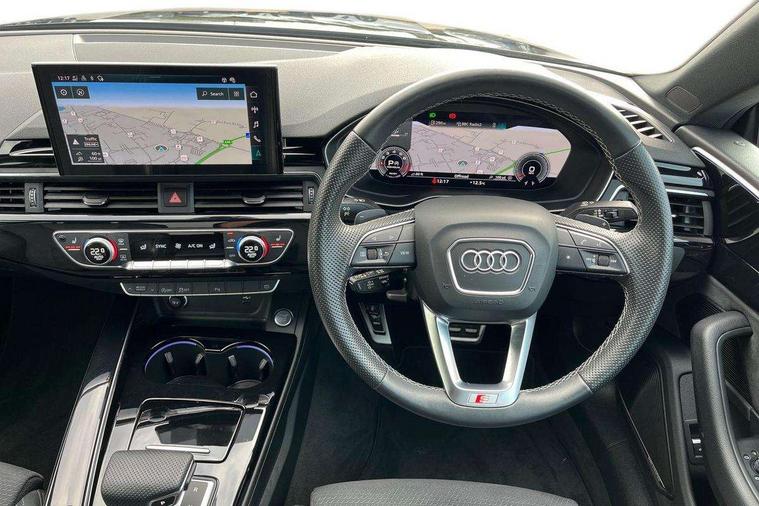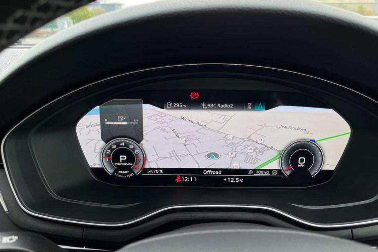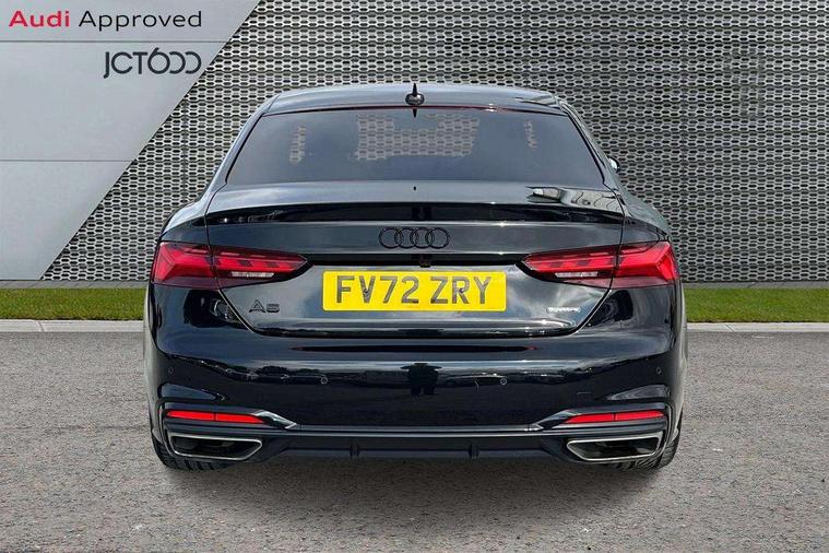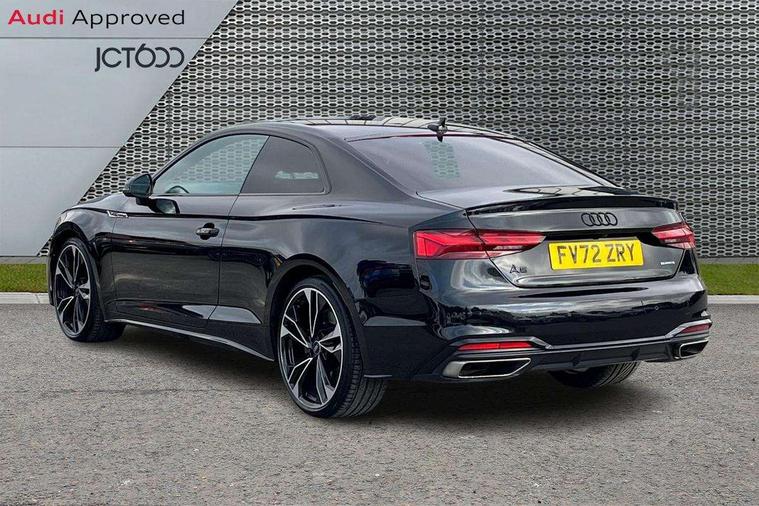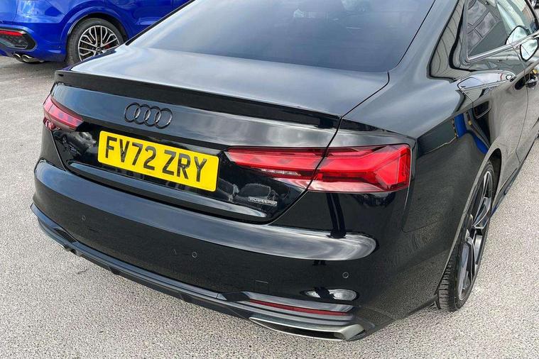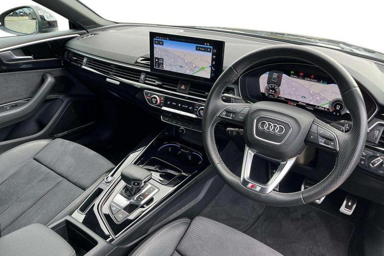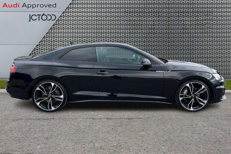 Audi connect safety and service (e-call), Audi connect with Amazon Alexa Integration, Audi drive select (Auto, Comfort, Dynamic, Efficiency and Individual), Audi parking system plus with front and rear sensors, Audi smartphone interface, Audi virtual cockpit - 12.3" full colour digital instrument cluster, vehicle/engine speed, Radio/media information+Driver assistance systems, Automatic start-stop system with coasting functionality and efficiency programme, Bluetooth interface, Electric boot lid release, Electro-mechanical power steering, Email, calendar and text messages displayed via MMI, MMI nav+ with MMI touch - 10.1" high resolution MMI display, touch sensitive, 3D map, route/country info, dynamic route guide, personal route assist, Rear view camera, Service interval indicator, Voice control system, Sports suspension lowered by 23mm, 8 passive loudspeakers, CD player, DAB digital radio reception, Two additional USB ports for rear passenger in rear centre console, Two SDXC card slots, Audi Beam uses LEDs to project the Audi logo, Audi matrix LED headlights with LED rear lights + dynamic front and rear indicators, Auto dimming door mirrors, Auto dimming rear view mirror, Black door mirror housings, Body colour door handles, Body colour front spoiler lip, Body colour side sill trim, Electric adjustable heated door mirrors, Electric folding door mirrors, Electric front windows, Exhaust tailpipe trims in grey, Front and rear bumpers with side skirts, Front fog lights, Honeycomb structure radiator grille in grained matt black, Kerb-view function for passenger side, LED daytime running lights, LED side indicator lights integrated into door mirrors, LED third brake light, Privacy glass, Rain and light sensors, Rear boot, Rear diffuser in matt titanium black with trim strip in matt aluminium silver, Rear side wing doors, S model rear spoiler in black, Side air inlets in grained matt black with matt aluminium silver inlay, Variable front intermittent wipers, Windscreen with acoustic glazing, 2 seat bench in 2nd row, 4 way electric lumbar support for driver and front passenger, 40/20/40 split folding 2 seater rear seat bench with rear centre armrest, Adjustable steering column, Black cloth headlining, Black perforated leather gearknob, Contrast stitching on seats, steering wheel and gear lever gaiter, Deluxe 3 zone electronic climate control, Front centre armrest, Front head restraints, Front/rear floor mats, Heated front seats, Illuminated door sill trim with S logo, ISOFIX child seat mounting and top tether, Luggage compartment mat, Manual seat adjustment, Rear headrests, Single front passenger seat, Stainless steel pedals, Sunvisors with vanity mirrors, Black styling pack - A5 Coupe/Sportback, LED interior light pack - A5/RS5, 2 x 3-point rear seatbelts, 6 airbags - Driver, front passenger, curtain and side airbags, Electromechanical parking brake, Electronic Stabilisation Control (ESC) including ABS, ASR and EDL, Front passenger airbag deactivation, Height adjustable front seatbelts, Hill hold assist, Multi collision brake assist, Pop-up bonnet for pedestrian protection, Pre sense city, Seatbelt monitoring, Tyre pressure warning, Variable restraint system, Warning triangle and first aid kit, Anti theft alarm system, Anti theft wheel bolts, Immobiliser, Keyless Go, Remote central locking, Piano black finish inlay, 20" 5 twin spoke polygon design alloy wheels in gloss anthracite black and gloss turned finish, Tool kit, Tyre repair kit,