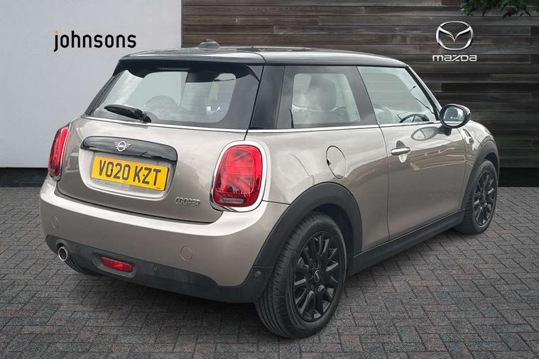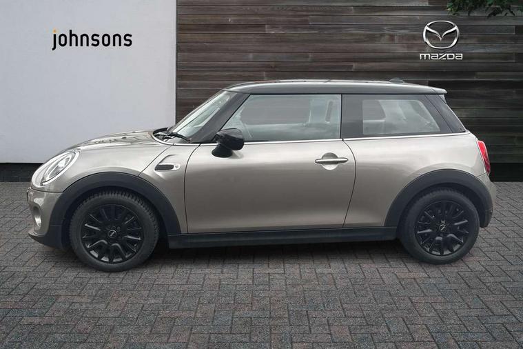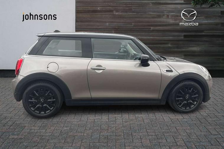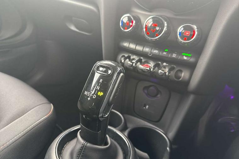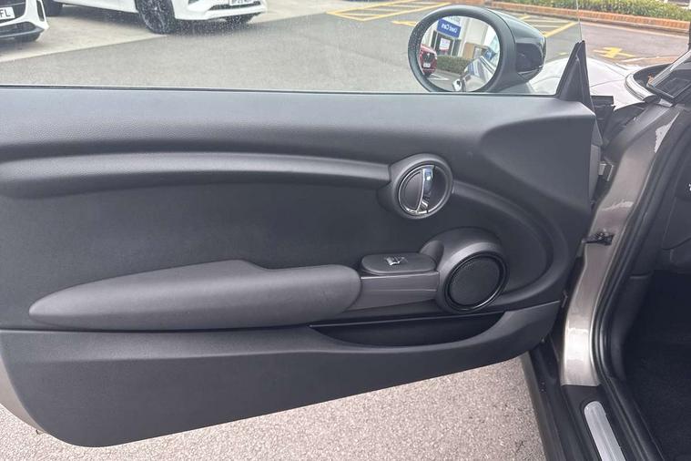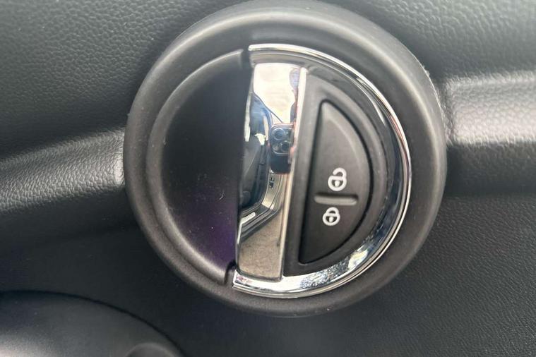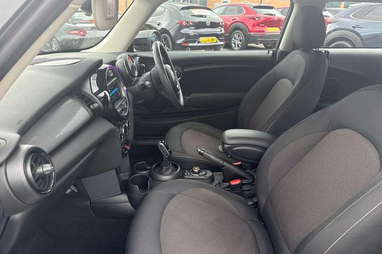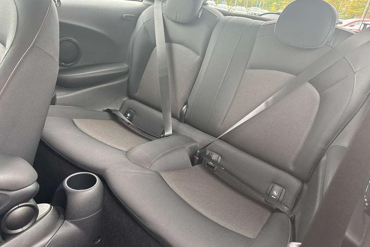 Automatic start/stop function with brake energy recuperation, Compatible mobile phone bluetooth with audio streaming, Electro-mechanical speed dependant steering assistance, Instrument cluster, Mini E-call, MINI TeleServices, On board computer, Service interval indicator, Double Vanos system, Fully variable valve control, Gear change indicator display, High precision injection, Steptronic transmission with double clutch, 6.5" touchscreen with LED ring, FM tuner and DAB digital radio, Automatic headlight activation switch, Body colour fuel filler cap, Chrome border high gloss black slats radiator grille, Dynamic brake lights, Electric front+rear windows, Heated rear window, Heated windscreen washer jets, LED headlight with closed ring and daytime driving lights, Left exhaust tailpipe with chrome finisher, Metal door sill strips with MINI imprint, Model logo Cooper on right of tailgate, Rain sensor window wipers, Rear fog lights, Rear LED lights with union jack design, Rear window wiper, Side scuttle panel with integrated indicator, Sun/heat protection glass, White indicator lenses, 12V Accessory socket in centre console, 4 lashing eyes in luggage compartment, 60/40 split folding rear seat, Carbon Black colour line, knee roll and door armrests, Chrome interior highlights, Colour line - Carbon black, Cupholders, Front and rear head restraints, Front and rear isofix with front passenger airbag deactivation, Glove compartment, Height and length steering column adjustment, Interior lighting with 12 basic colours selectable via toggle switch in roof, Leather gearshift lever and handbrake gaiters, LED reading lights, vanity mirror lights, front foot well light and spotlight on front seats, Manual air conditioning, Mechanical seat adjustment, driver seat height adjust, forward/back and front seats backrest, Mini logo projection on floor from drivers exterior mirror, Multifunction steering wheel, Satellite grey headlining, Storage compartments in doors, Sunvisors with vanity mirrors, 3 point seatbelts on all four seats, 6 Airbags - front, side, head and seat belt tensioners, Anti-lock braking system (ABS), DSC - Dynamic Stability Control, Front and rear disc brakes, Hill start assist, Single tone fanfare horn, Tyre pressure monitoring system, Alarm system with tilt sensor, monitoring doors, bonnet interior and tailgate, Electronic vehicle immobiliser, Start/stop toggle with keyless go, Tool kit, Tyre repair kit,